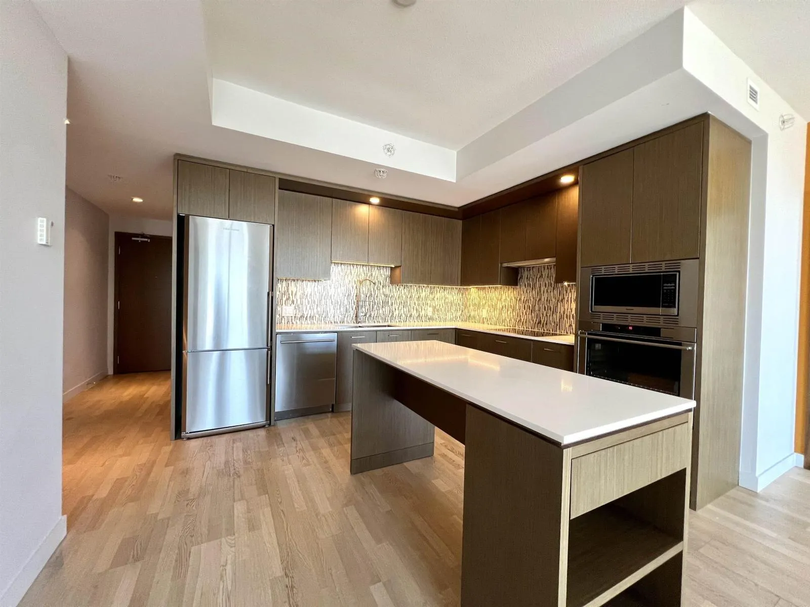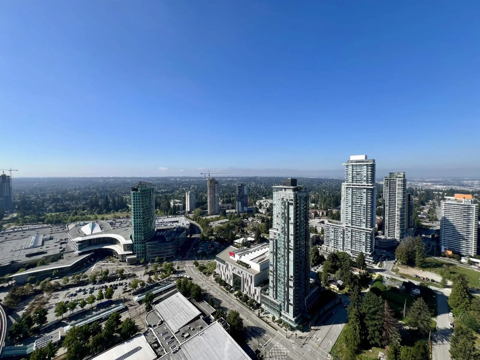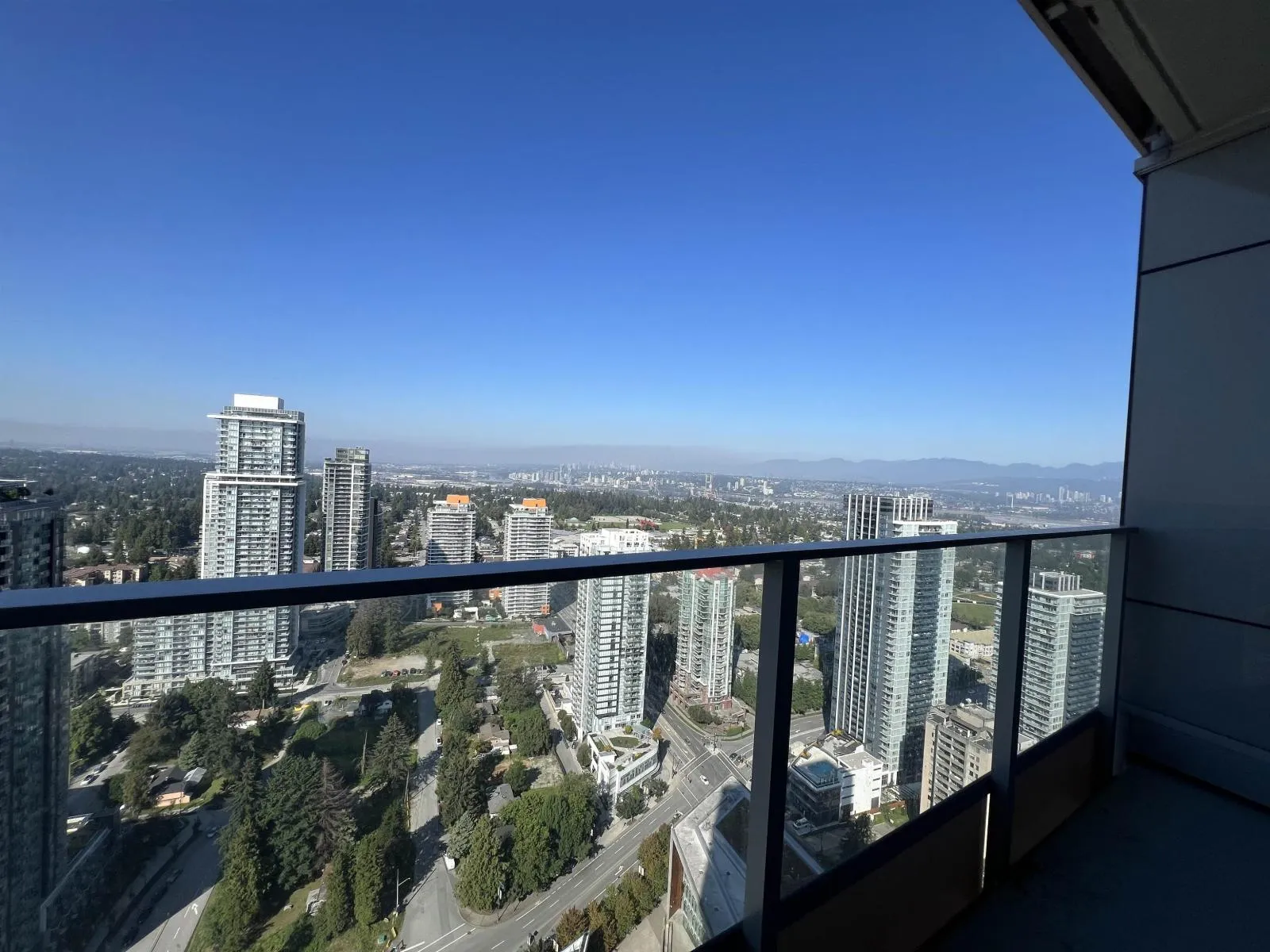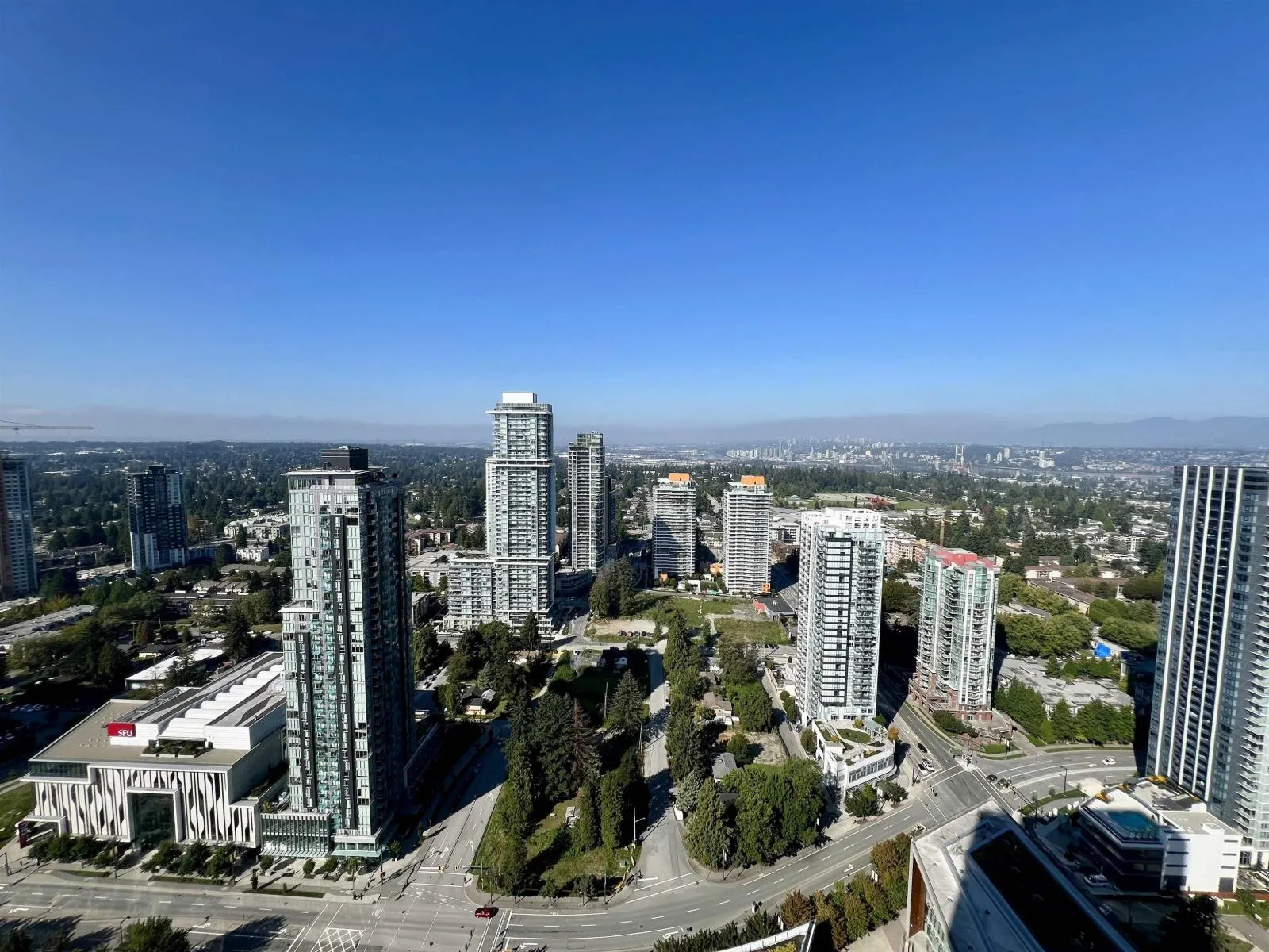 A beautiful 2-bedroom, 2-bathroom west-facing condo on the 41st floor of 3 Civic Plaza offers 1,050 sq. ft. of modern living with hardwood floors, radiant heating, air conditioning, in-suite washer/dryer, and an open kitchen with quartz countertops and stainless steel appliances. Enjoy stunning city views from the balcony, plus 1 parking stall, 1 storage locker, and optional second parking at extra cost. The building features 24-hour security, café, and restaurant, all steps from Surrey Central SkyTrain, SFU, library, recreation centre, shopping, and dining. Minimum 1-year lease; small pets maybe, no smoking. (id:27476)