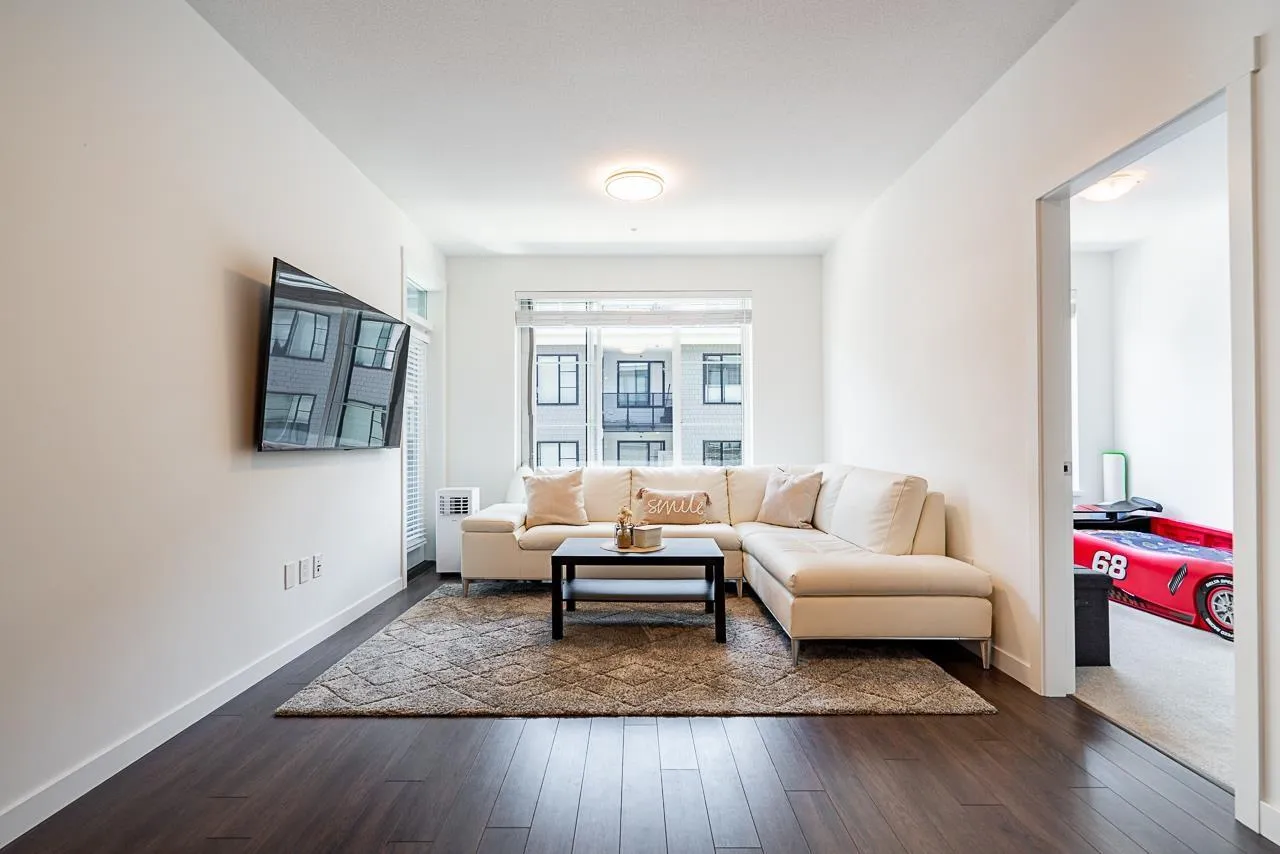 Welcome to Fleetwood Village by Dawson + Sawyer! This spacious 3-bedroom, 2-bath home is located on the 4th floor of a sought-after, family-friendly community in the heart of Fleetwood. Featuring an open-concept layout with high ceilings, large windows, and a modern kitchen with stainless steel appliances, quartz countertops, and shaker-style cabinetry. The unit includes in-suite laundry, one parking stall, and one storage locker. Enjoy access to 36,000+ sq. ft. of amenities including a full gym, yoga studio, party room, dog wash, BBQ area, and a daycare. Conveniently located steps from Fleetwood Village Shopping, Fresh Street Market, parks, schools, and the upcoming SkyTrain Fleetwood Station. Still covered under the 2/5/10 New Home Warranty. A perfect blend of comfort and connectivity-don't miss out on this fantastic opportunity to own in a thriving community! (id:27476)