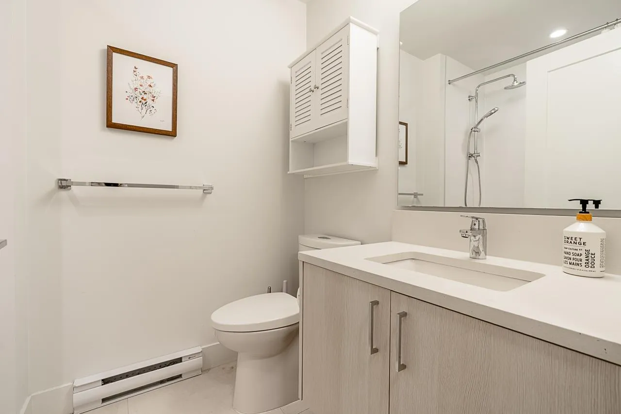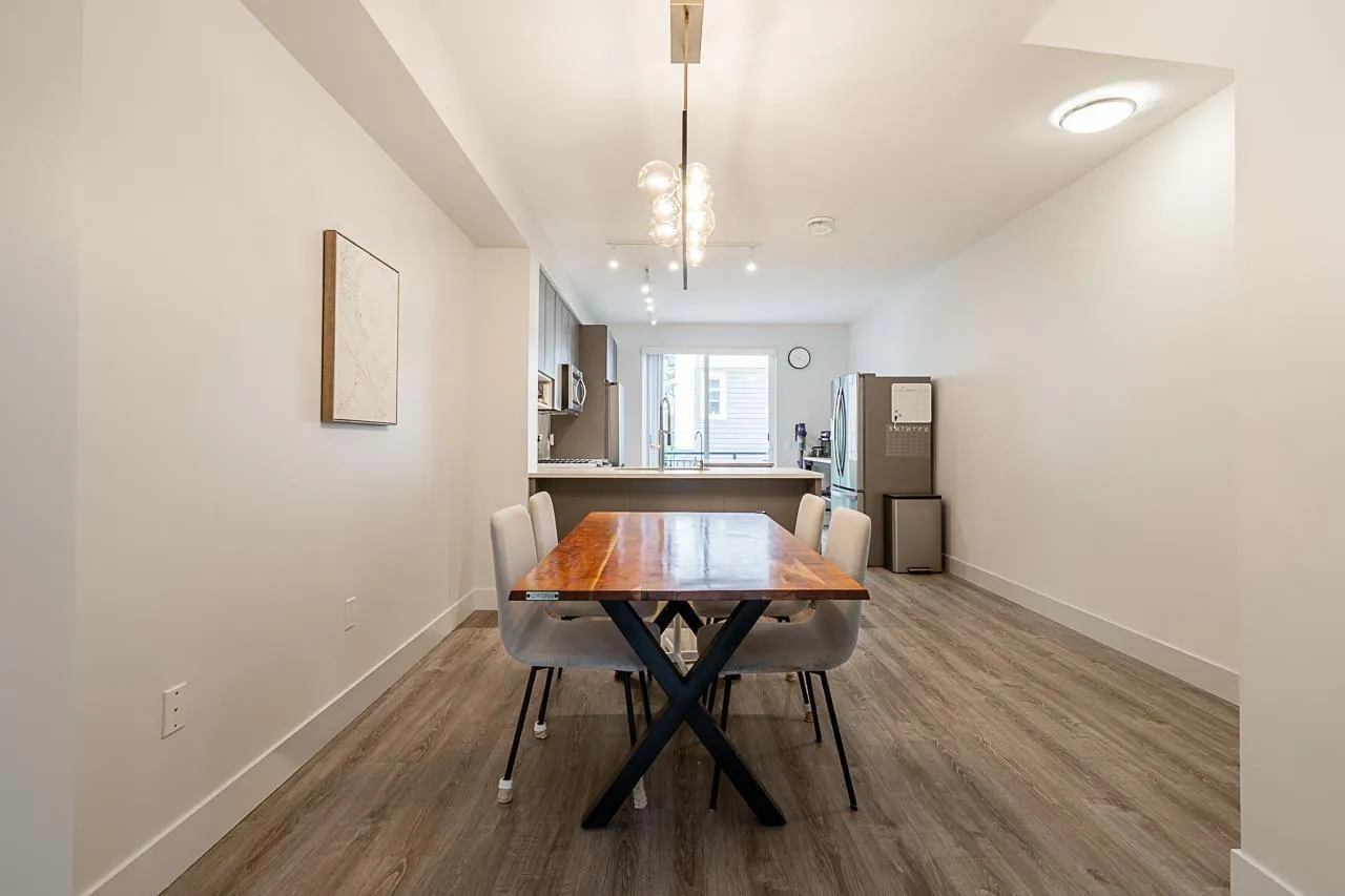 Beautiful townhome by quality builder QUALICO "Canopy at the tynehead park". Nestled within single family homes with link to the park with trail access points including a new multi-use path running through the center of the community. This two bedroom plus den townhome features high-end Whirlpool S/S appliances, gas range and gas hook up on balcony, white quartz counters, soft close cabinets, den and extra powder room on lower level and much more. Quick access to Highway 1, Guildford Town Centre, and short walking distance to both levels of schools. (id:27476)