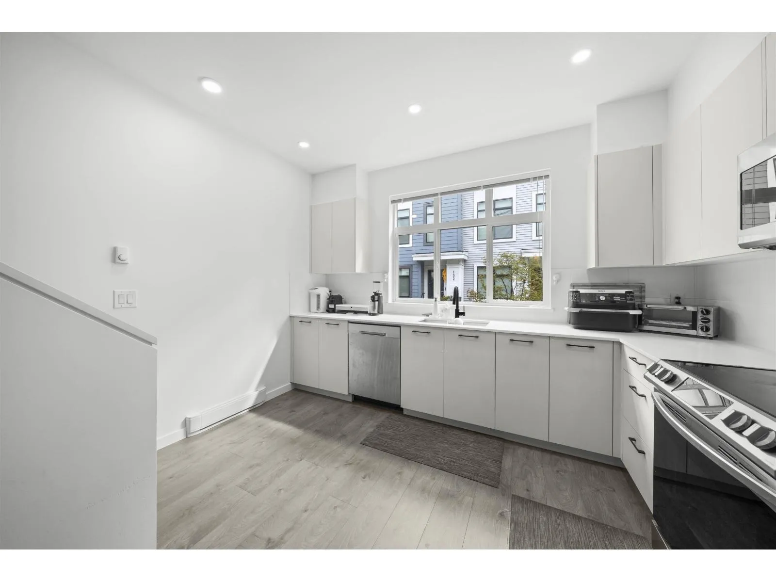 Welcome to Wood & Water by Anthem, a vibrant family-oriented community in Surrey's sought-after Fleetwood neighbourhood. This bright 2-bedroom + den, 3 bathroom townhouse offers over 1,300 sqft of stylish living with an open-concept layout, modern kitchen with stainless steel appliances, and a large living/dining area. The versatile den can serve as a guest room or office. The downstairs washroom has a shower, TWO parking spots (large garage + driveway). Enjoy access to the Treehouse clubhouse featuring amenities like a gym, party room, theatre and kids playroom. Close to parks, Guildford Golf Course, shopping, dining, top-rated schools and transit. This move-in ready home offers the perfect balance of nature and city life. OPEN HOUSE OCT 12 (SUN) 1 - 3pm (id:27476)