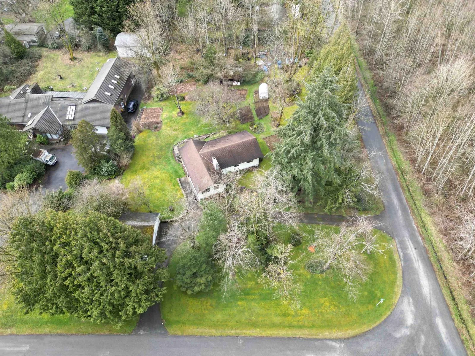 Same Owners for 50 Years! This spacious 4-bedroom, 2-bathroom home sits on a sprawling over one acre corner lot of land in a growing development area. With 3,118 sqft of living space, it offers a large living room perfect for gatherings. Enjoy serene gardens, a dedicated garden shed, and ample storage throughout. The massive shop in the basement provides endless possibilities, whether for a workshop or storage. Additionally, a detached 2-car garage ensures plenty of space for vehicles and equipment. A fantastic opportunity to own a home with room to grow in a highly sought-after location. 2600 sqft of garden with apple, pear, hazelnut, filbert, and cherry trees, raspberries, strawberries, goji berries and red and white currents and rhubarb patch. (id:27476)