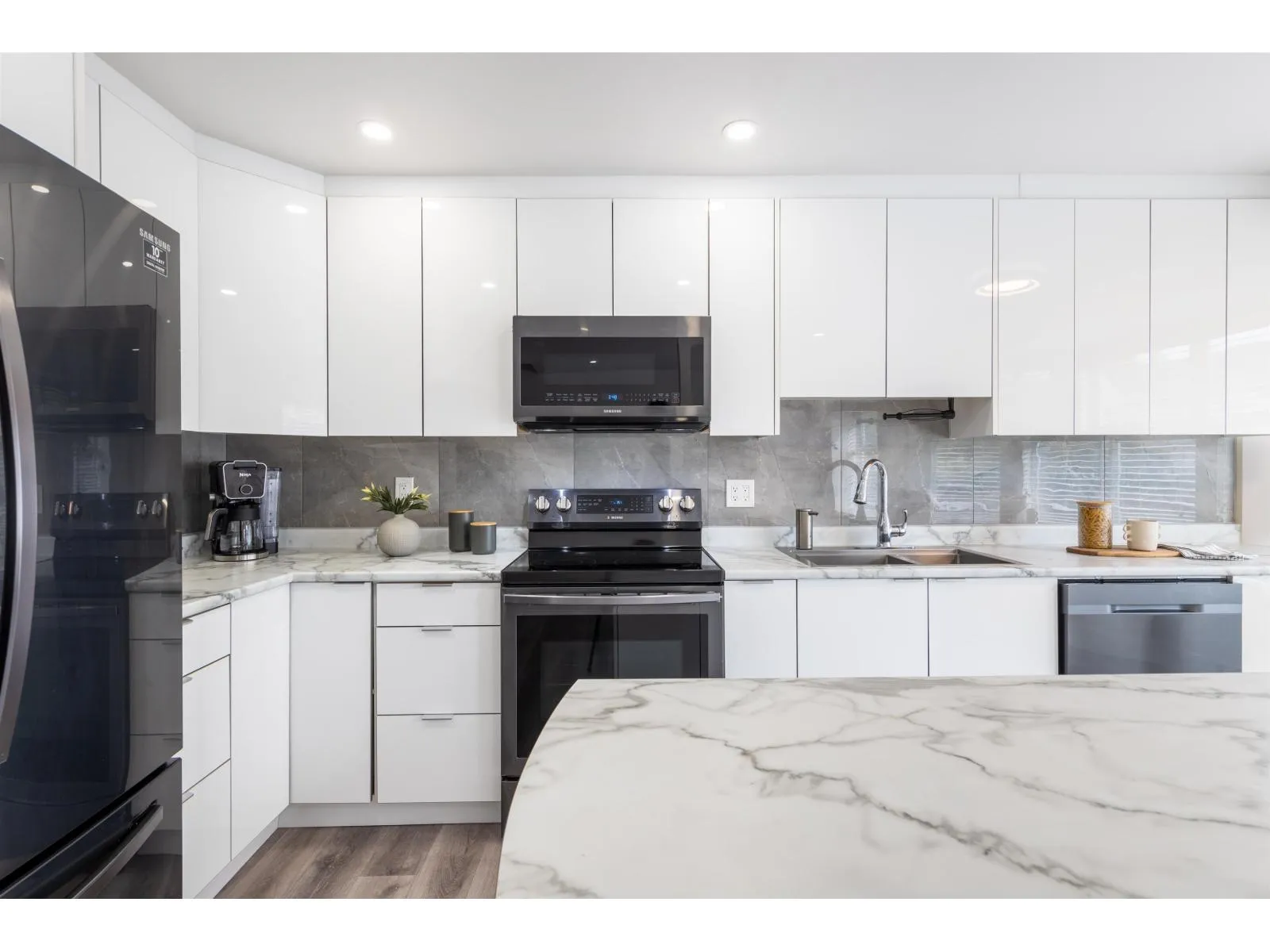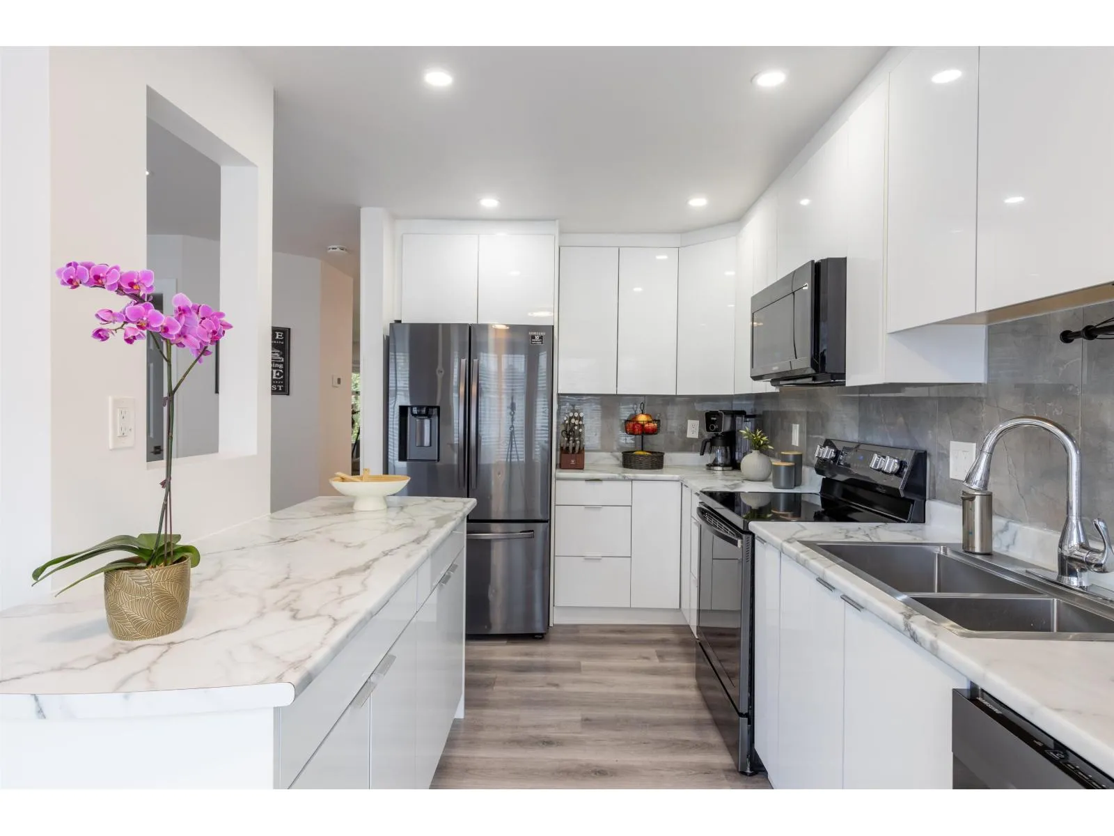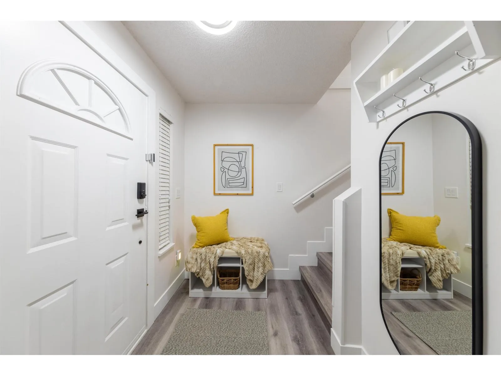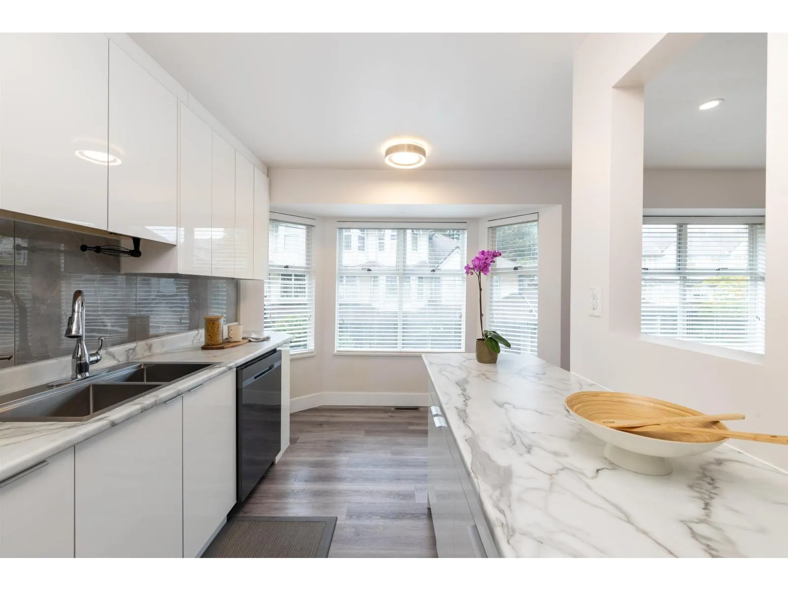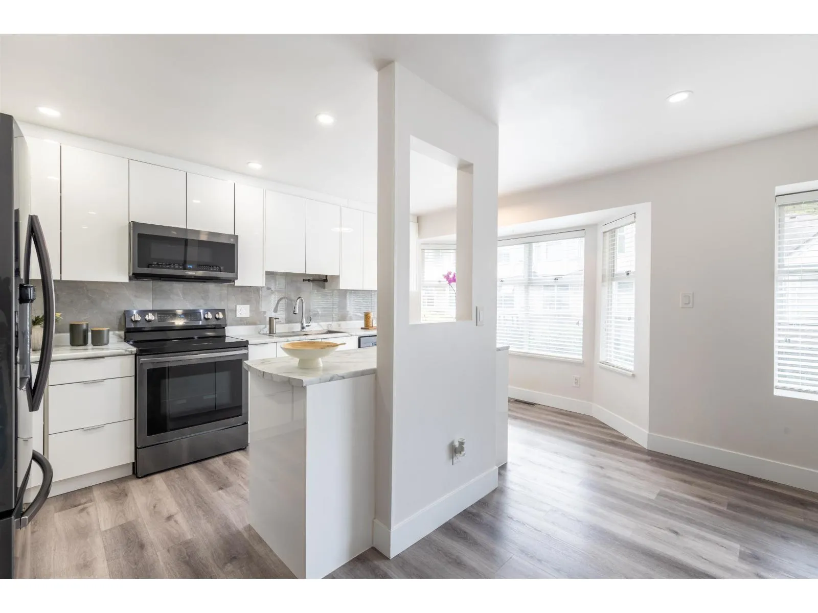 Discover a rare opportunity in Hadley Green, a gated and private community set along a tranquil greenbelt. The entry level opens to a fenced backyard and a generous flex/rec room-ideal as a home office, gym, or 4th bedroom. The main floor is bright and airy, featuring a gas fireplace and a sunny sundeck oriented to the trees for exceptional privacy. A fully renovated kitchen, updated bedrooms, and new light fixtures elevate the home throughout. Upstairs, the primary retreat offers dual sinks, a soaker tub, and a separate shower. Extensive upgrades include $100,000+ in renovations: laminate flooring throughout and ~4-year-new appliances, furnace, and boiler. Ample in-home storage. Walk to Kennedy Trail Elementary; minutes to shopping, restaurants, theatres, and transit, with quick access to major routes. A refined blend of space, privacy, and convenience-Move-in Ready. OH CANCELED THIS WEEKEND (id:27476)