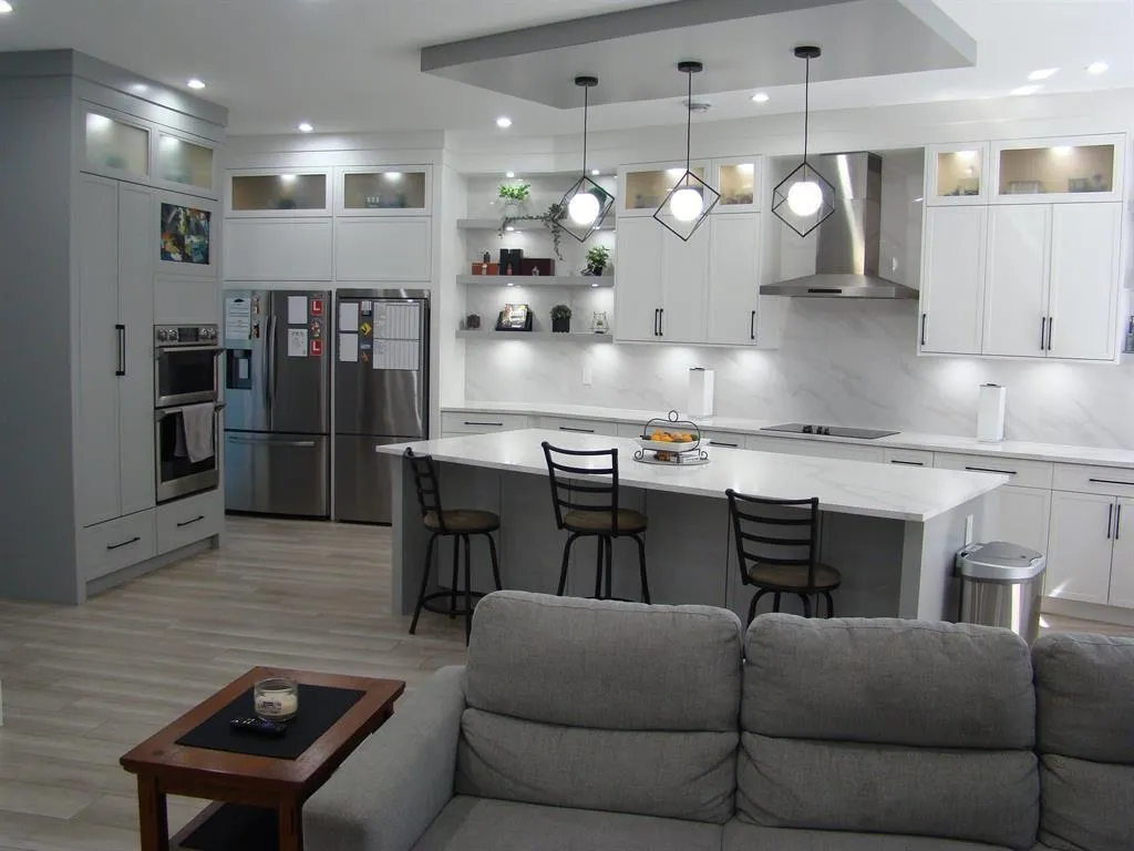 Welcome to this beautifully finished home in Fraser Heights. Over 5,000 sq ft home on over 6,100 sq ft cul-de-sac lot. Main floor has Living, Dining room and foyer with 12' ceiling. Great room opening into expansive Kitchen, spice kitchen and back patio. Main floor also has bedroom & full bath. Upstairs have 4 huge bedrooms with ensuite. Master Bedroom closet is perfect for any fashionista. Features include engineered hardwood floors, quartz countertops, ample storage space, HRV, central vacuum, radiant heat and air conditioning, offering unparalleled quality and comfort . Basement features Media room, wet bar with half bath. It has one legal two bdrm suite and 1 bedroom unauthorized suite. Close to all major routes: Hwy1/17/15! Buy this home with confidence. Call for more info. (id:27476)