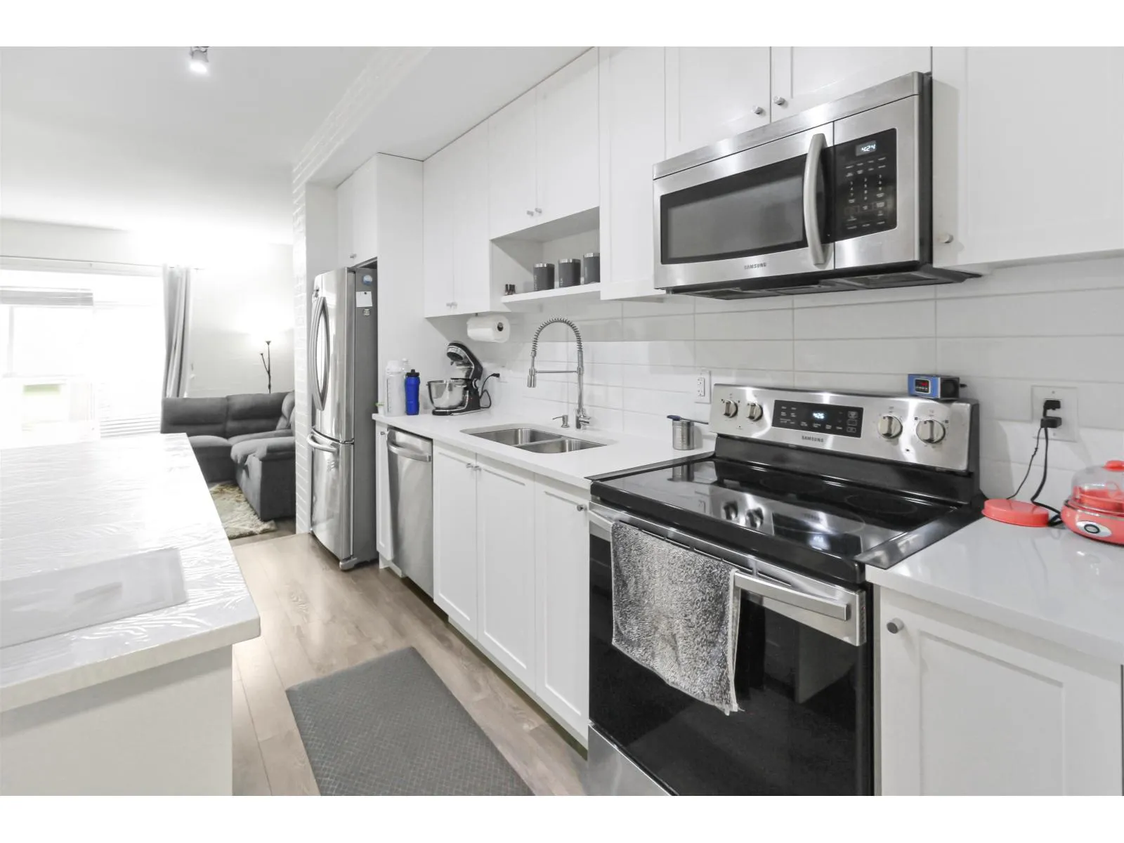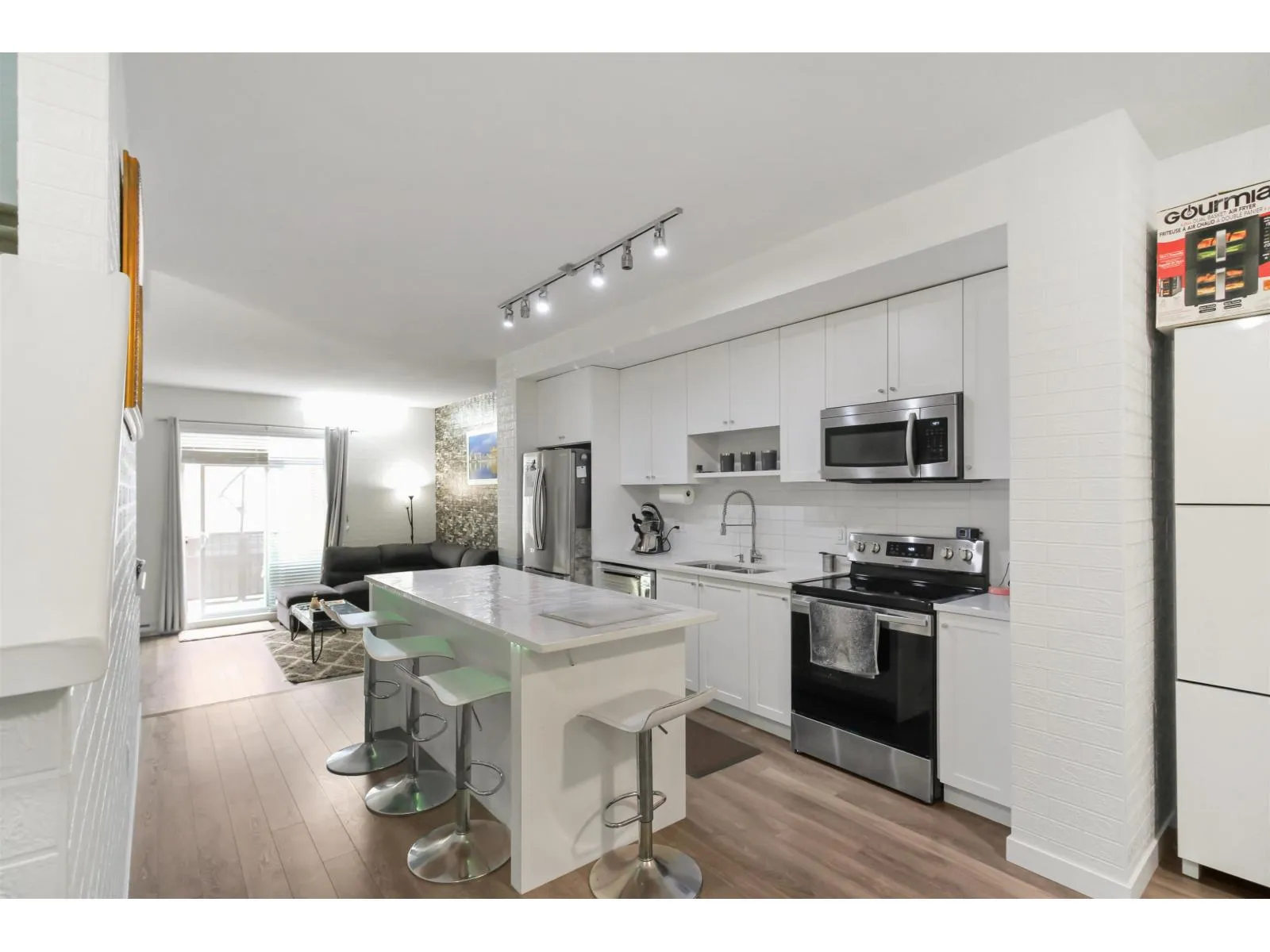 Welcome to this beautiful family oriented community situated in the Bear Creek area. Very close to all the amenities including shopping, parks, and restaurants. This 4 Bed 4 bath townhome plan features a fenced and gated front yard with bedroom and full bathroom on the ground level. Main floor has an open concept floor plan with family/living room, Kitchen, dining and powder room. Top floor features three very decent size rooms including one master bedroom and two full washrooms. Full size double car garage parking with EV charger pre-wire. Pets and Rental are allowed. (id:27476)