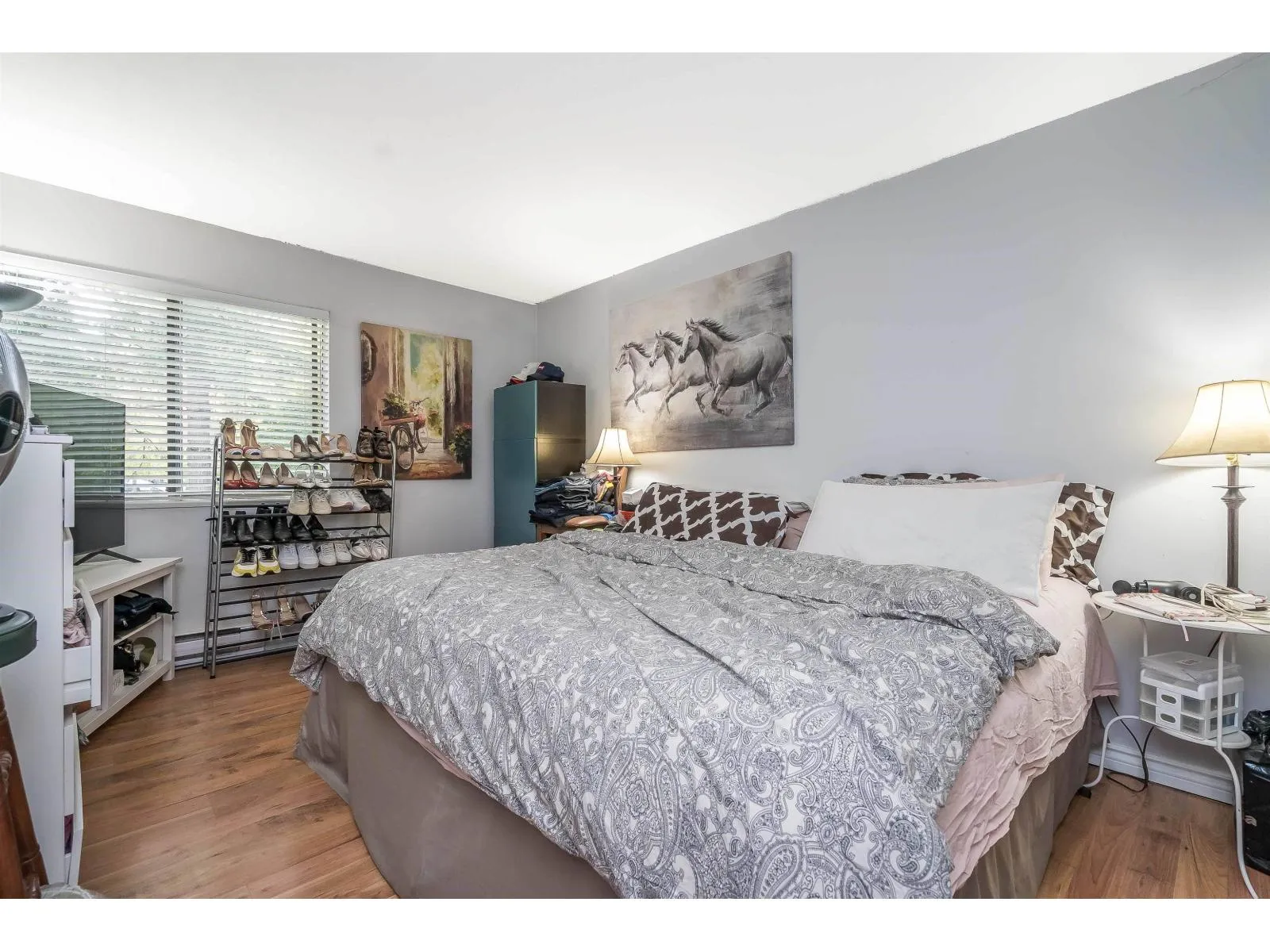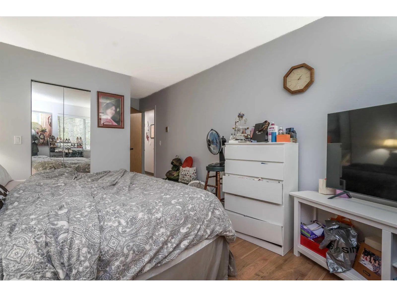 Prime Location Corner Unit in Parkwood! This bright 2-bed, 1-bath ground floor condo offers 1,006 sq ft of comfortable living space. Freshly updated with stainless steel appliances and modern flooring throughout. The spacious master bedroom features a convenient walk-in closet, while the cheater ensuite adds functionality. Enjoy your morning coffee on the private balcony. Excellent Whalley location - just 1 block to public transit and schools, walking distance to Surrey Central Mall, King George SkyTrain, Holland Park, and elementary school. Well-managed 72-unit building with recent renovations. One parking stall and locker included. Pet-friendly building. Perfect for first-time buyers or investors. Move-in ready! (id:27476)