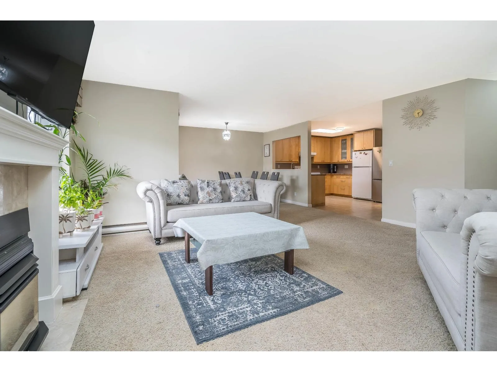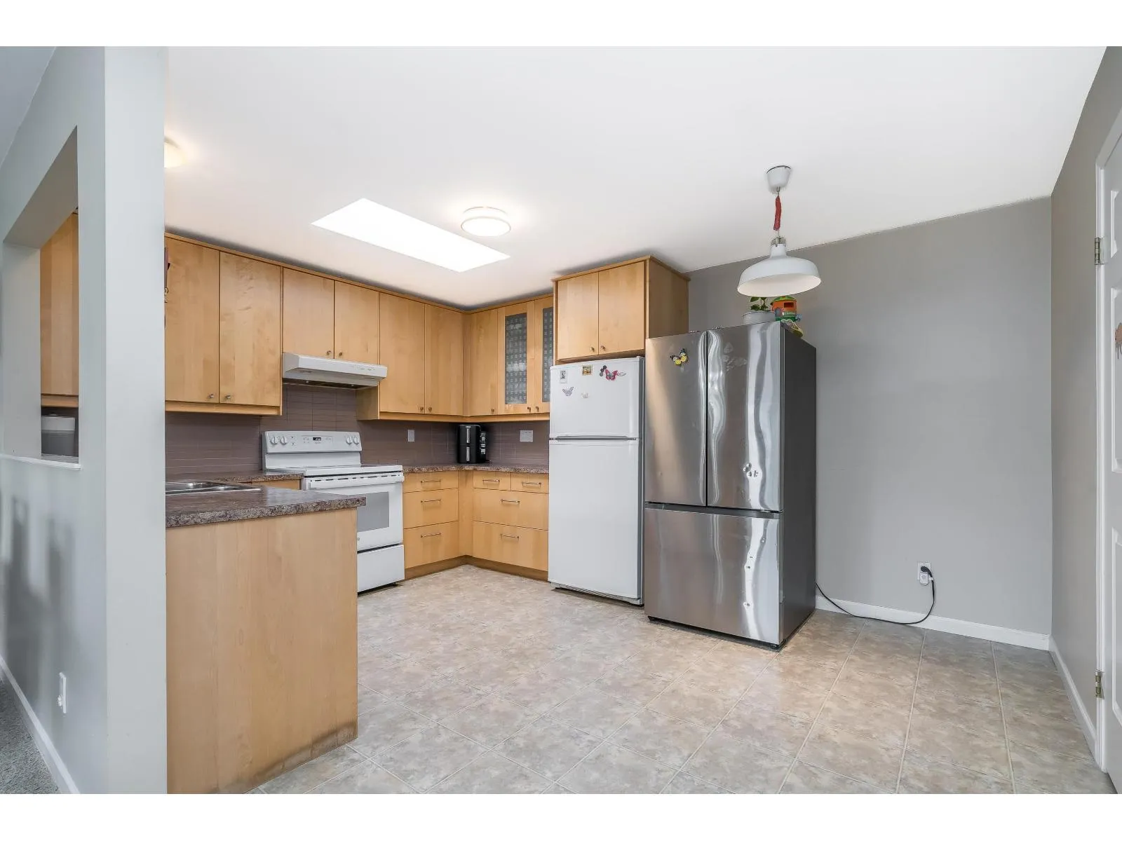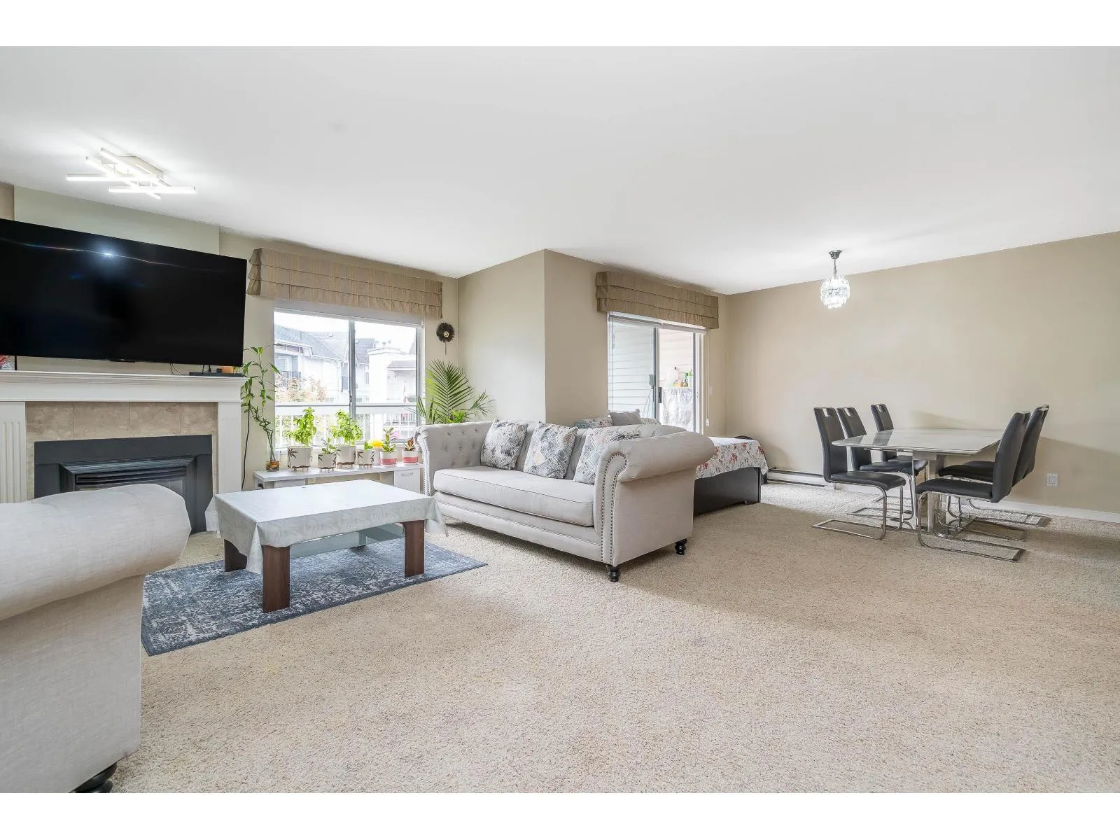 Welcome to Huntington Gate Unit 315! This stunning top-floor 1,217 sq. ft. home offers a spacious open-concept layout you'll love. The massive living and dining area features a gas fireplace (gas included in strata fees), creating the perfect spot to relax or entertain.The updated kitchen includes a large eating area, pantry, and skylight. A generous primary bedroom with full ensuite and a full-sized second bedroom. Large covered deck, perfect for barbecuing or simply enjoying the outdoors. This well-maintained building is centrally located, just minutes from shopping, schools, transit, and with easy access to the Alex Fraser and Pattullo Bridge. Includes 2 secured underground parking stalls, and the building allows 2 pets with restrictions. Book your showing today! (id:27476)