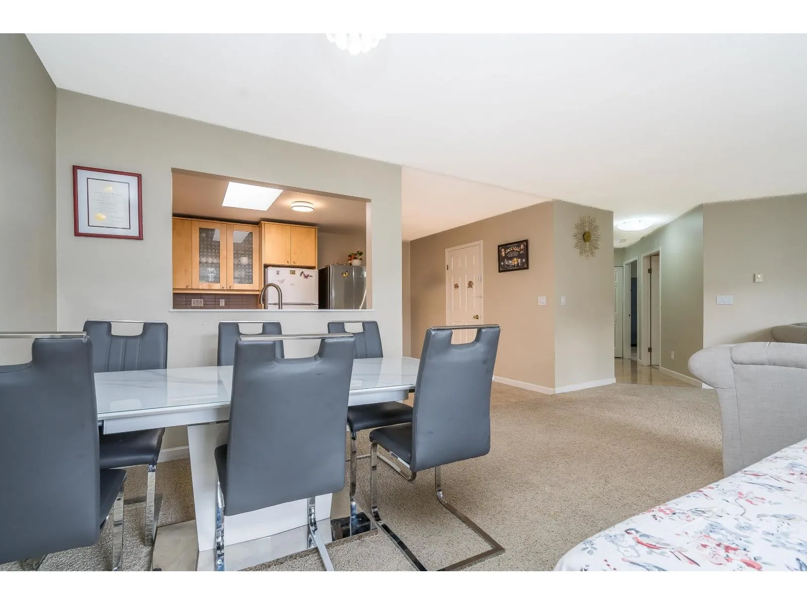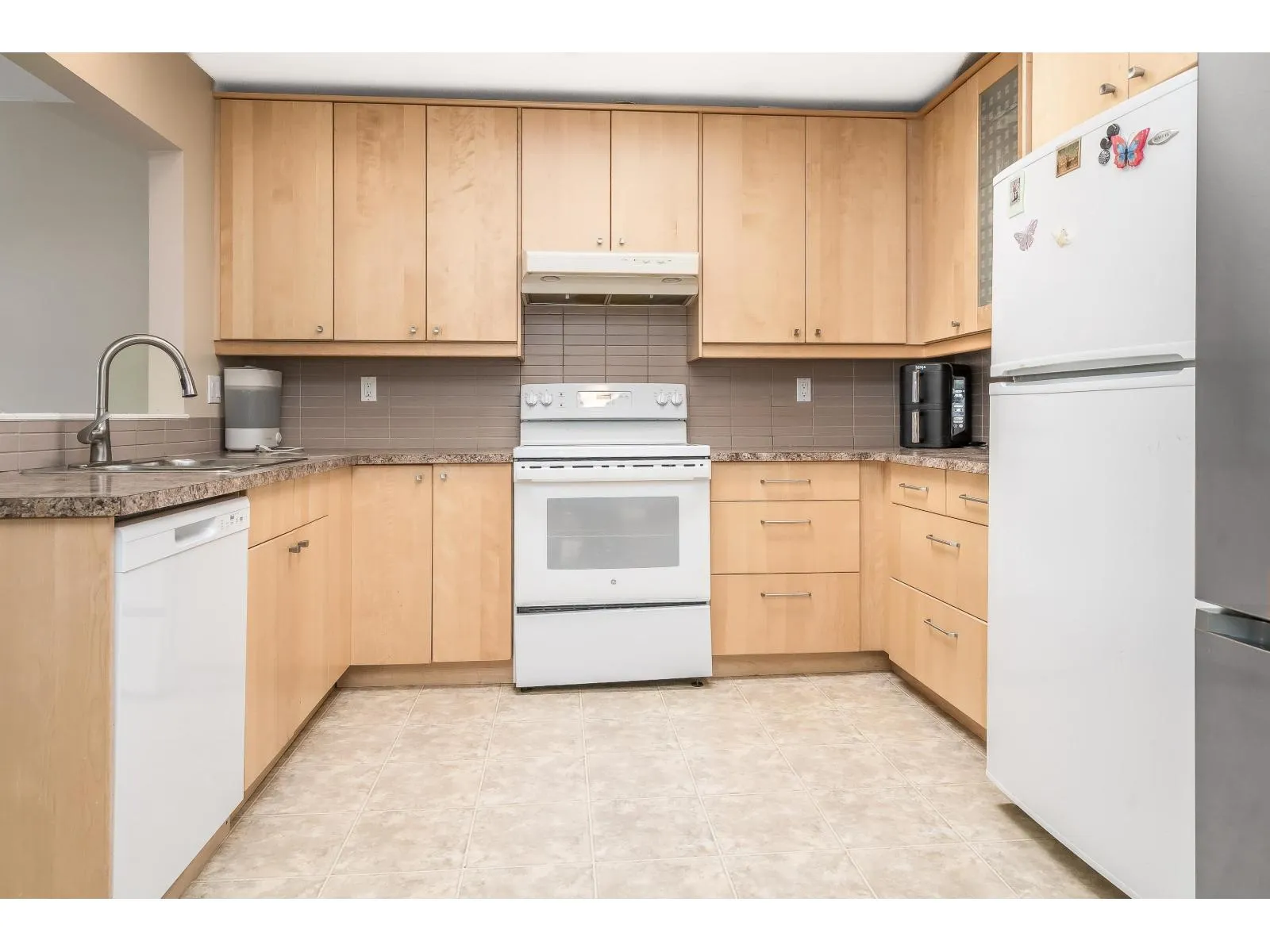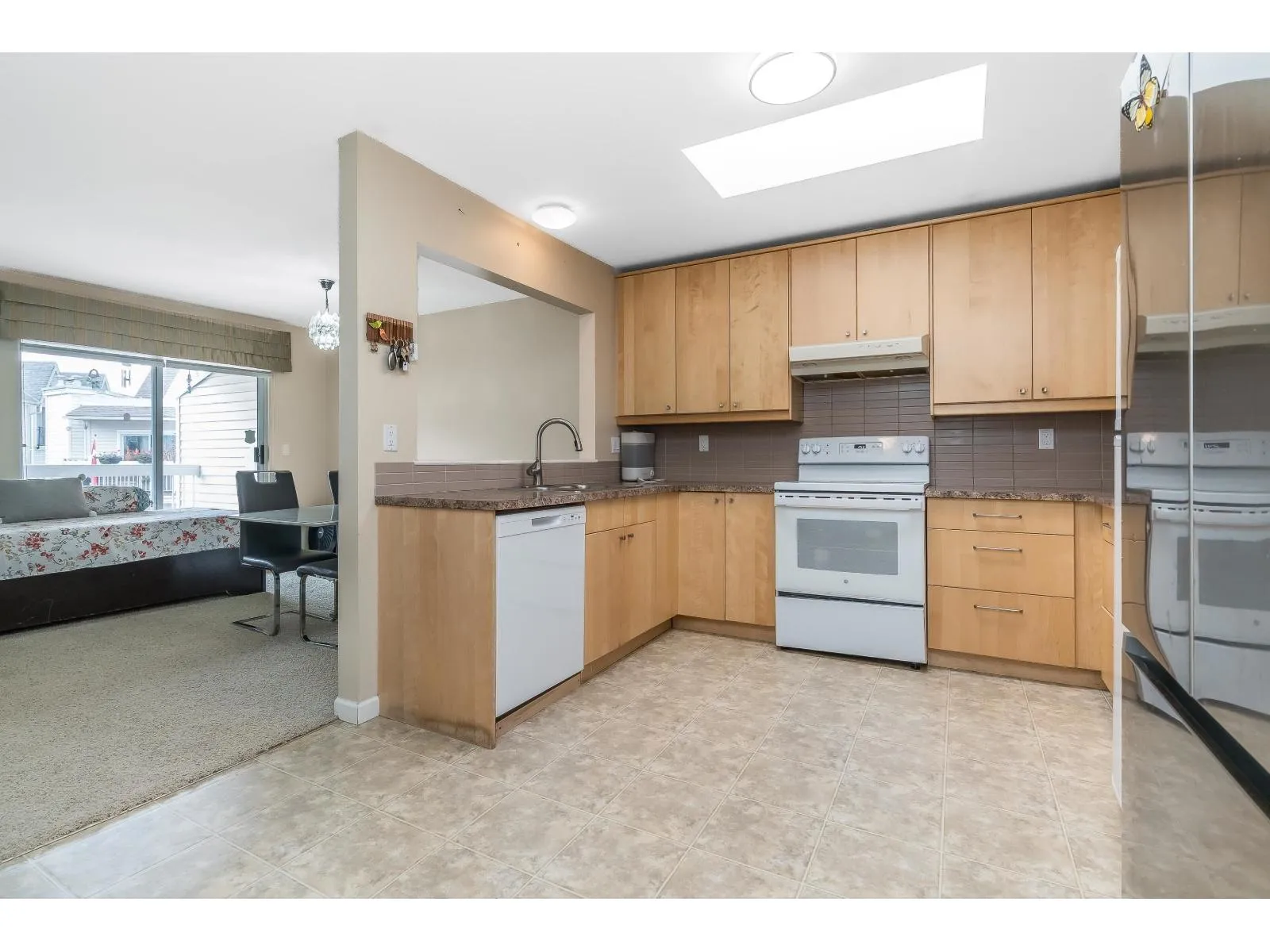 Welcome to Huntington Gate Unit 315! This stunning top-floor 1,217 sq. ft. home offers a spacious open-concept layout you'll love. The massive living and dining area features a gas fireplace (gas included in strata fees), creating the perfect spot to relax or entertain.The updated kitchen includes a large eating area, pantry, and skylight. A generous primary bedroom with full ensuite and a full-sized second bedroom. Large covered deck, perfect for barbecuing or simply enjoying the outdoors. This well-maintained building is centrally located, just minutes from shopping, schools, transit, and with easy access to the Alex Fraser and Pattullo Bridge. Includes 2 secured underground parking stalls, and the building allows 2 pets with restrictions. Book your showing today! (id:27476)