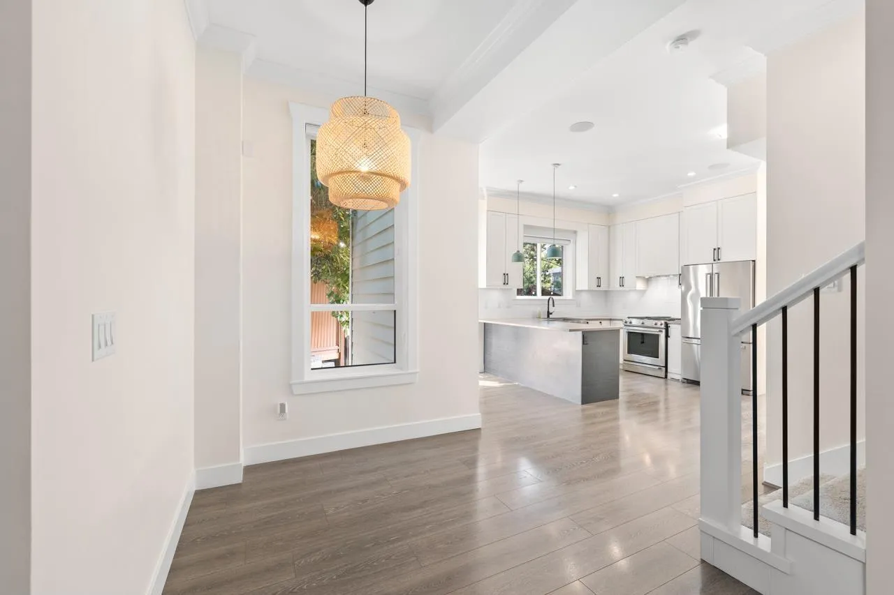 Welcome to Marca - an exclusive enclave of MEGA SIZED townhomes in the heart of South Surrey, where timeless architecture meets modern coastal elegance. This rare END unit & former SHOWHOME offers over 2,800 sq. ft. of thoughtfully designed living space in the most private location within the community. Featuring 4 spacious bedrooms-including a vaulted-ceiling primary retreat-a fully finished bsmnt w/ custom bar & a light-filled open-concept great room, this home is perfect for both entertaining and quiet moments. Enjoy a walk-out yard, upstairs patios, CENTRAL HEATING & A/C, a chefs kitchen w/ premium SS gas appliances, & a double side-by-side garage. Minutes to White Rock Beach, top schools, parks, shopping & transit-this MOVE-IN READY home combines privacy, sophistication & convenience. (id:27476)