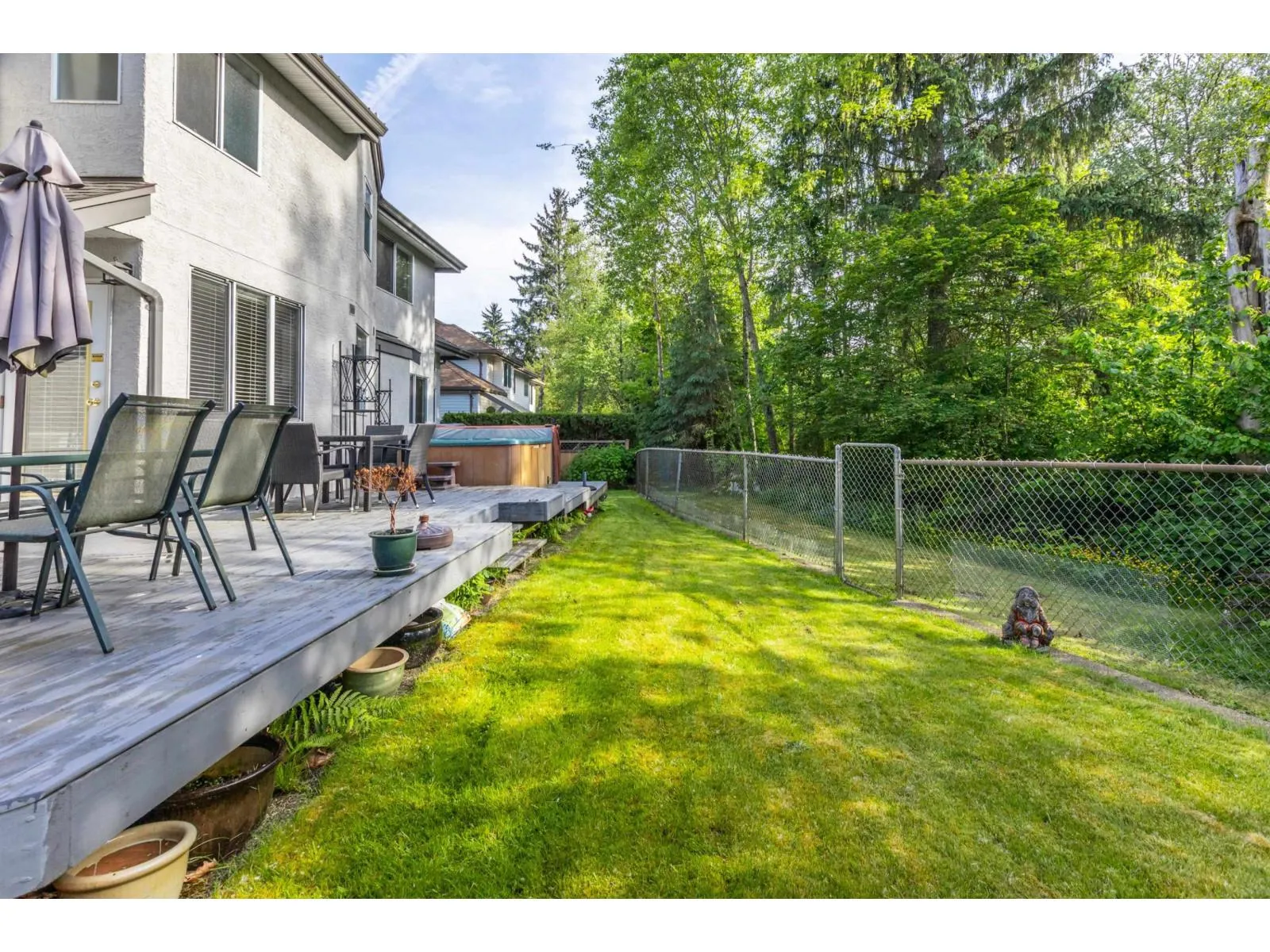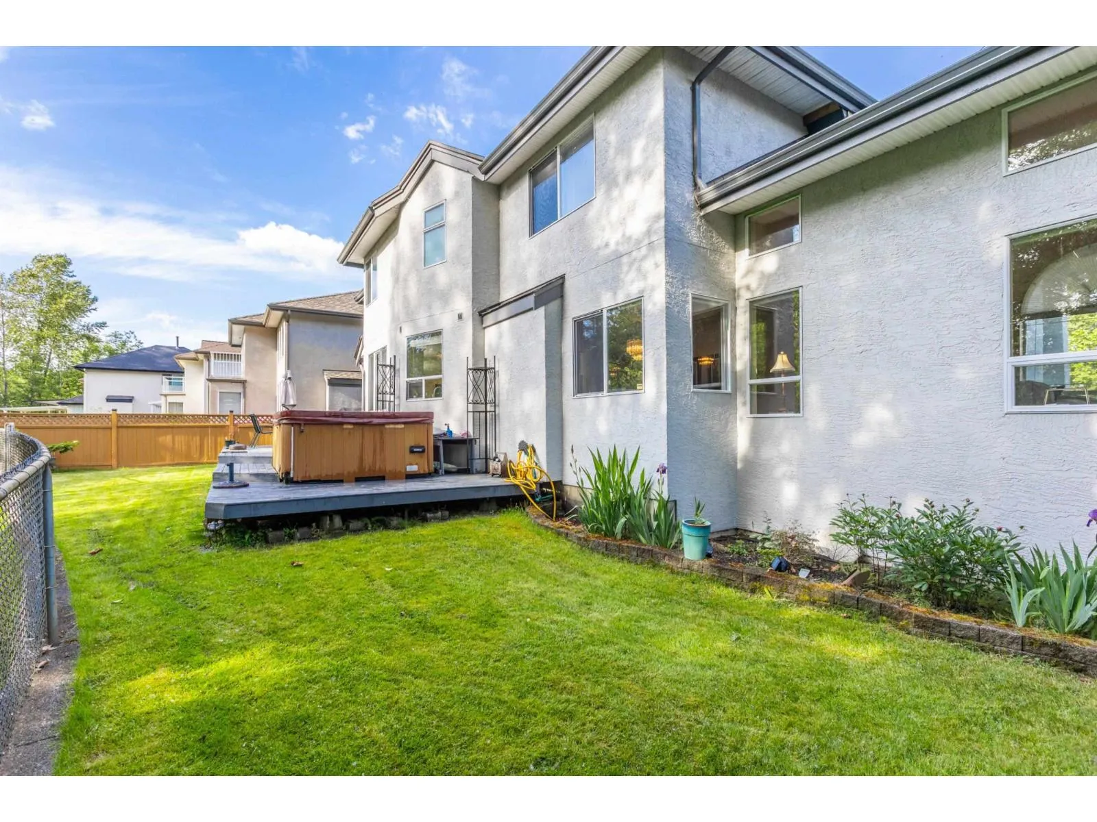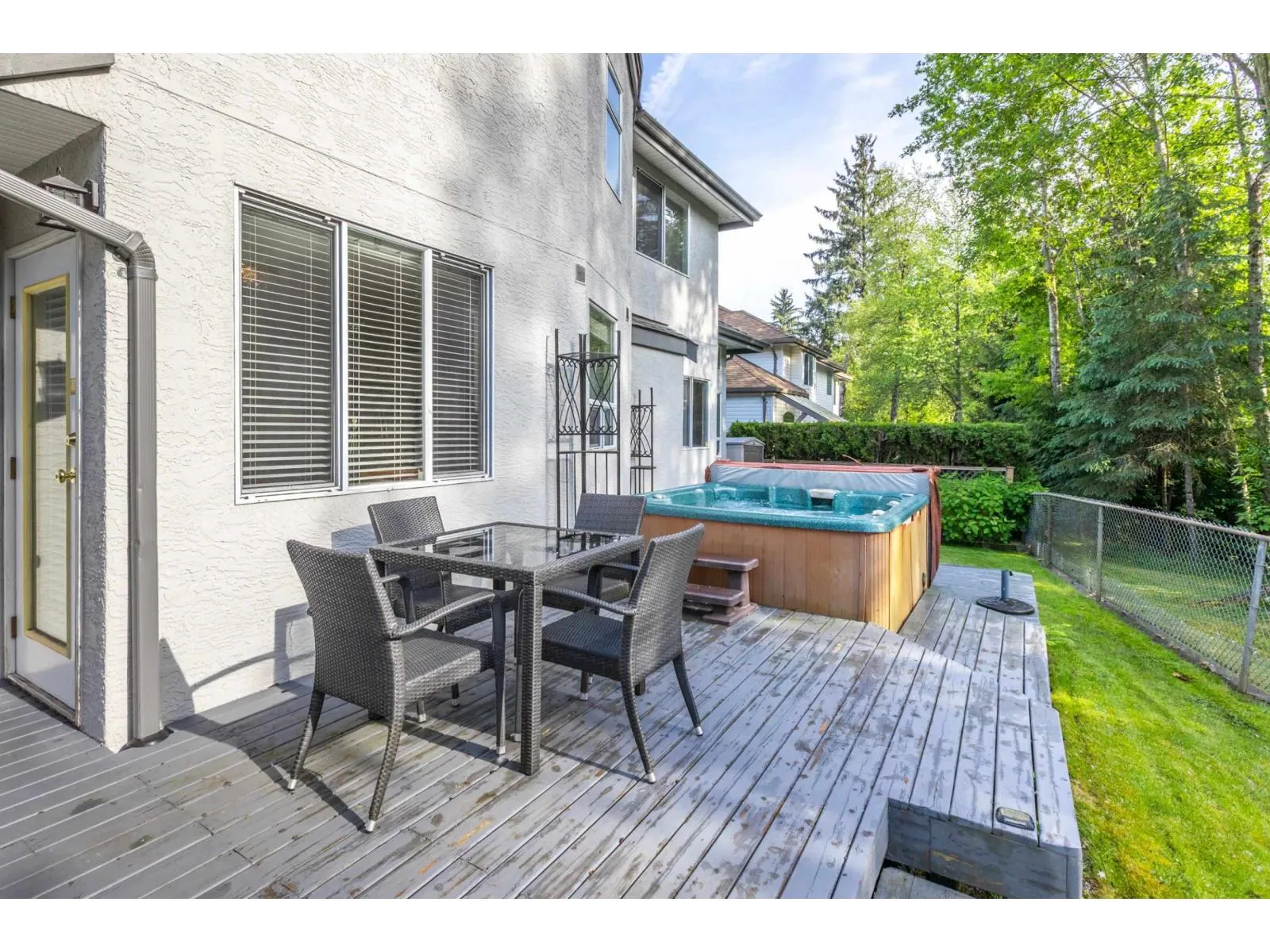 Beautifully maintained executive-style home tucked away on a quiet no-thru cul-de-sac in sought-after Bear Creek. Backing onto serene green-space for ultimate privacy, this home offers a traditional and inviting floor plan featuring separate living and family rooms, hardwood flooring, and an updated kitchen with granite counters, tile backsplash, stainless steel appliances, and a gas range. Enjoy two cozy gas fireplaces and large windows framing peaceful views of trees and nature. Upstairs you'll find 4 spacious bedrooms, including a generous primary suite with a walk-in closet and a 5-piece ensuite with a soaker tub and separate shower. The main floor includes a versatile 5th bedroom or home office. Rare triple garage, updated roof, and a relaxing hot tub on the private rear deck. (id:27476)