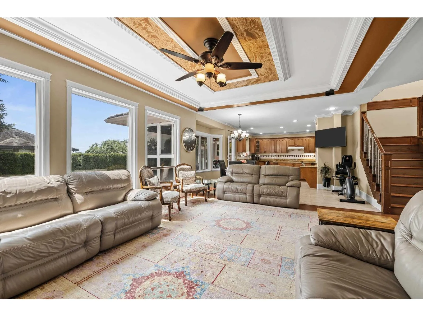 Stunning 30-year-young updated custom home offering 5,100+ sq. ft. on a sunny 7,119 sq. ft. south-facing private lot in Fleetwood. Grand double-height foyer, 7 bedrooms, 6 bathrooms, and double staircases leading to 4 spacious upstairs bedrooms. Primary bedroom features a balcony with South Surrey views. Main floor includes a den with full bath and a bright sunroom with floor-to-ceiling windows. Basement offers a bedroom and laundry for upstairs plus *2 mortgage-helper suites.* Close to schools, golf, transit, and highways. Open House Nov 16, 2-4 PM. (id:27476)