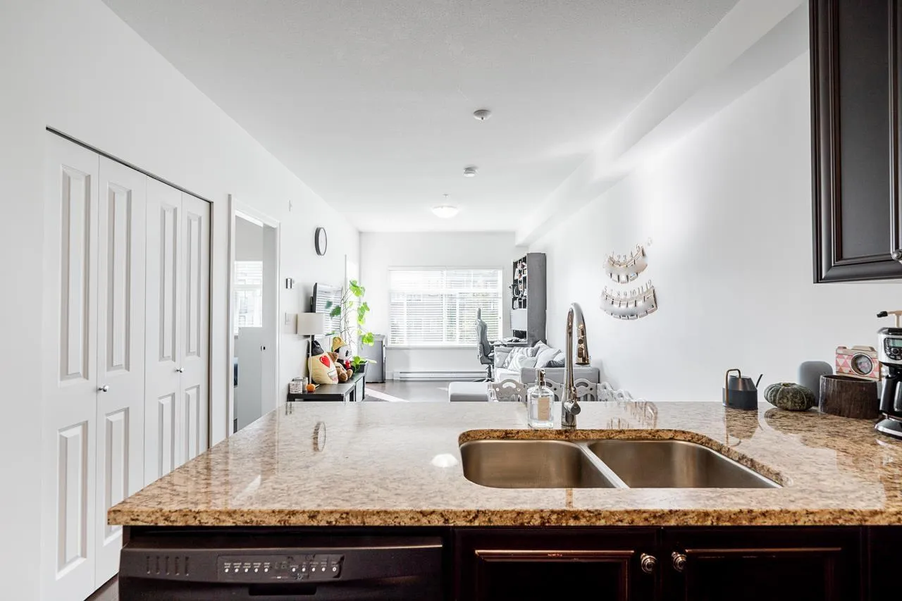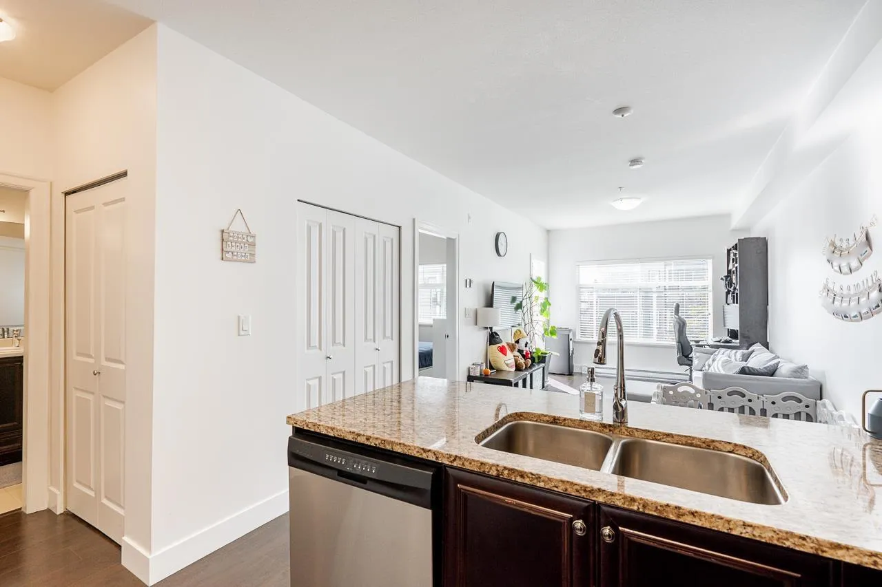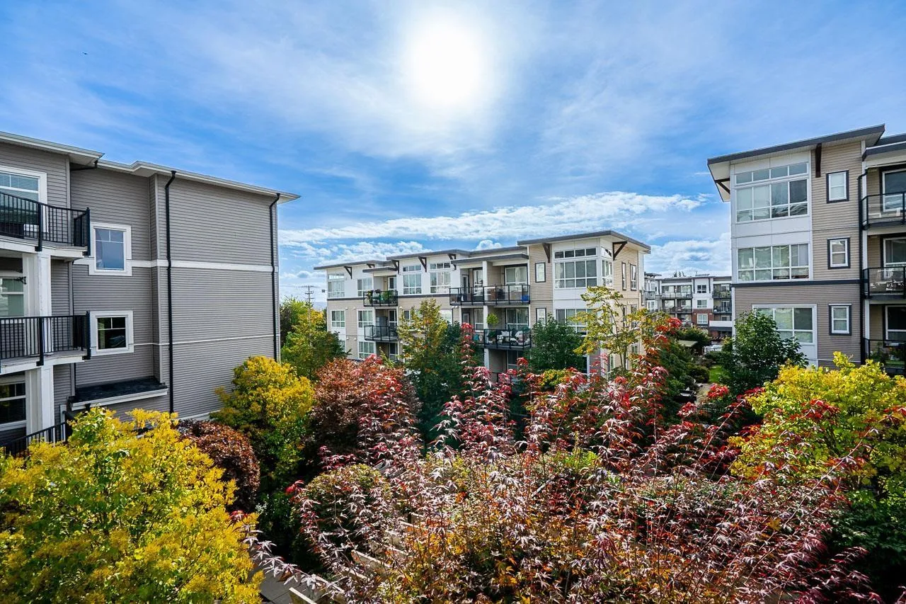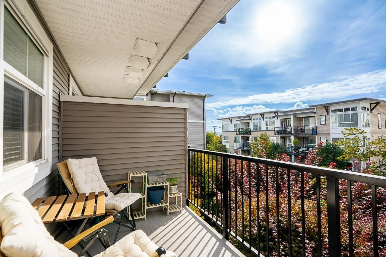 Welcome to Salix in Clayton Heights! Bright south-facing 1-bedroom, 590+ sq.ft. unit with a lovely view. Includes 2 parking stalls and a huge 4'x8' garage-style storage locker. Features stainless steel appliances, stone countertops, soft-closing cabinets with underlighting, large pantry, and wide plank laminate flooring. Enjoy 9-ft ceilings, an open layout, full-size washer/dryer, and a spacious covered patio. Big living room windows offer a peek a view of Mt. Baker. Great amenities: lounge, gym, bike room & guest suite. Walking distance to Willowbrook Mall, restaurants & transit. Rentals and pets welcome! Walking distance to the future skytrain! Call now for your private viewing! (id:27476)