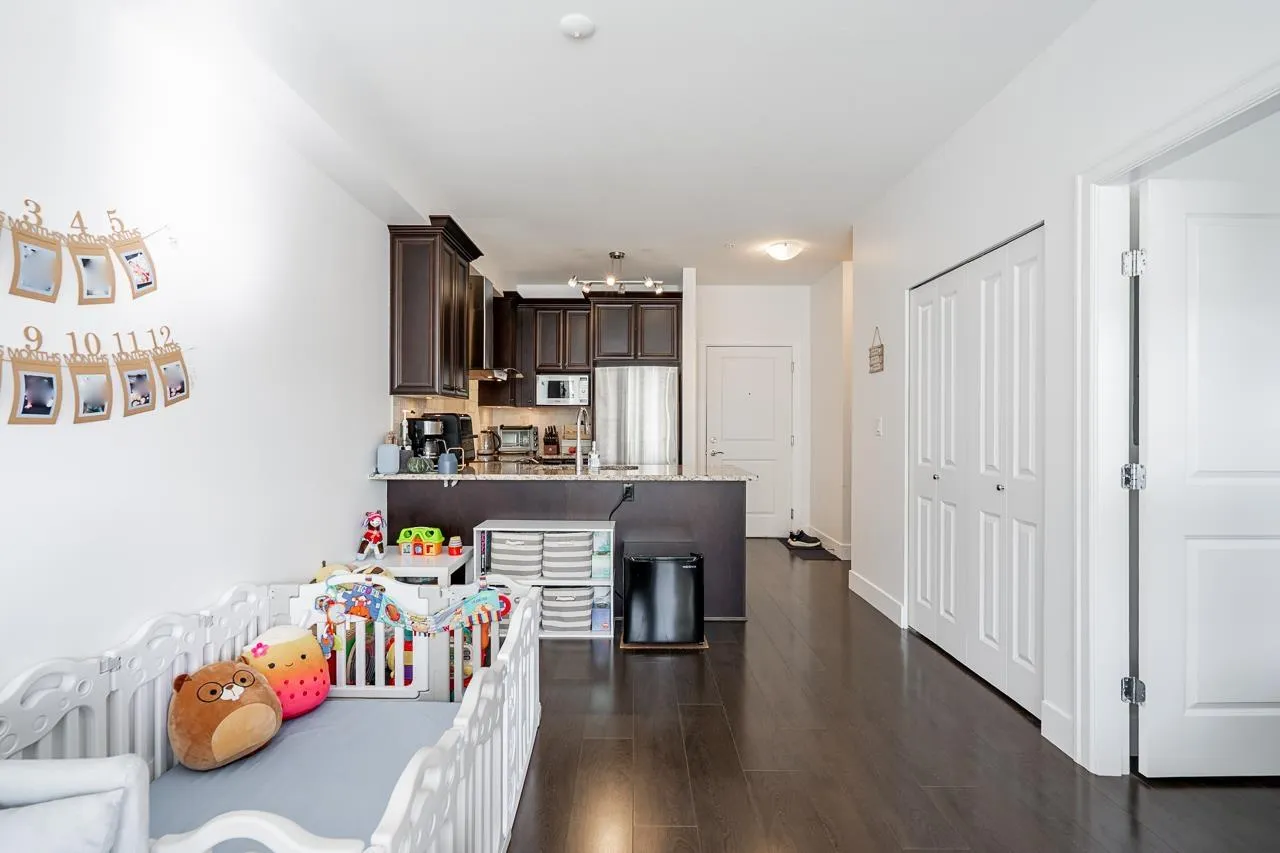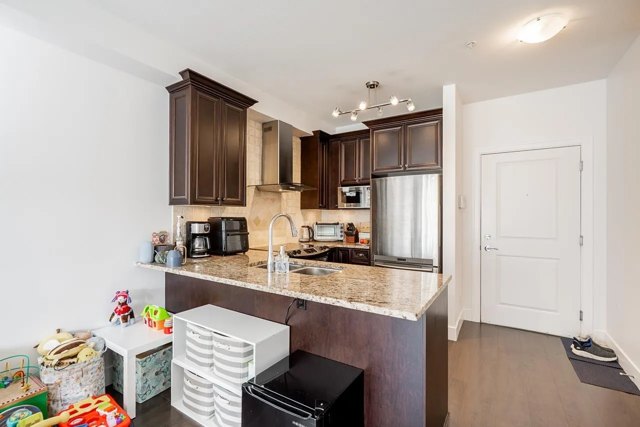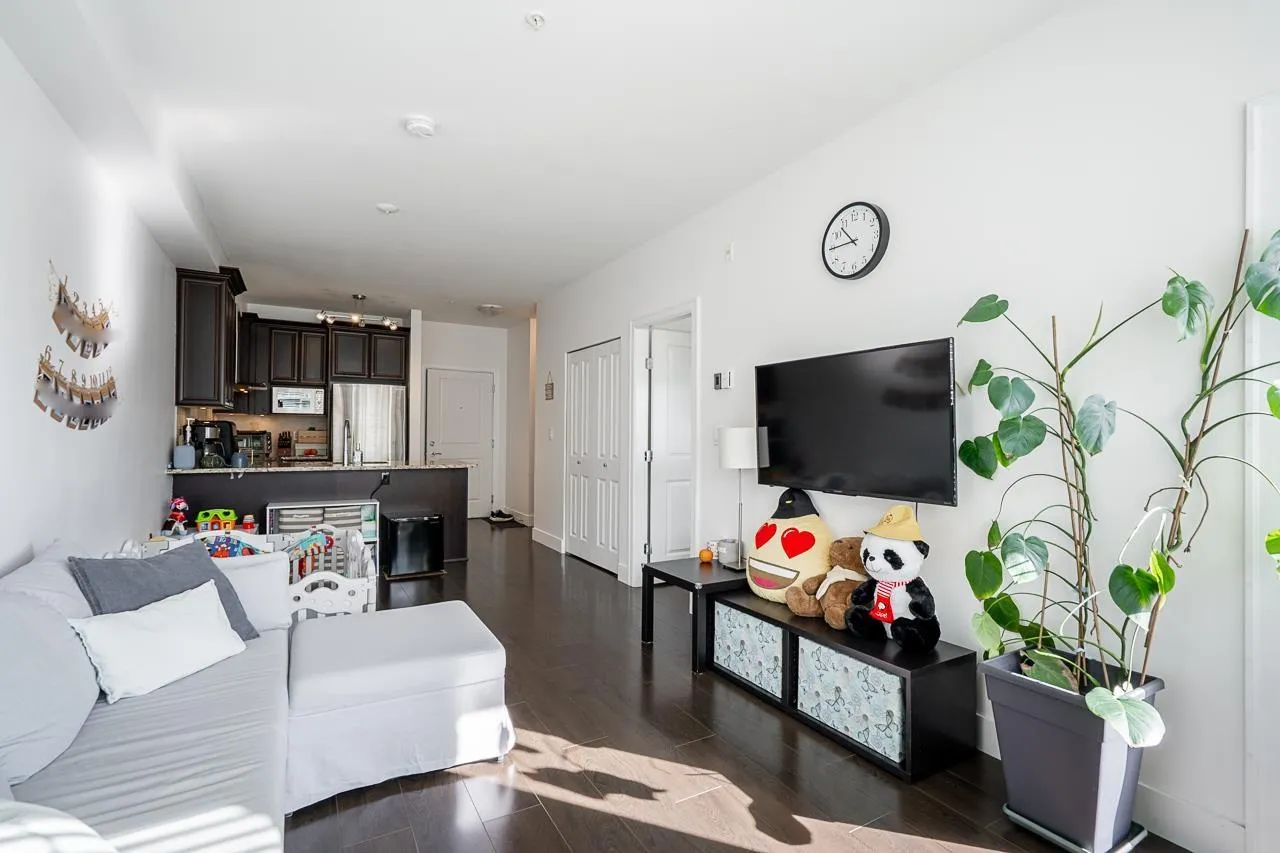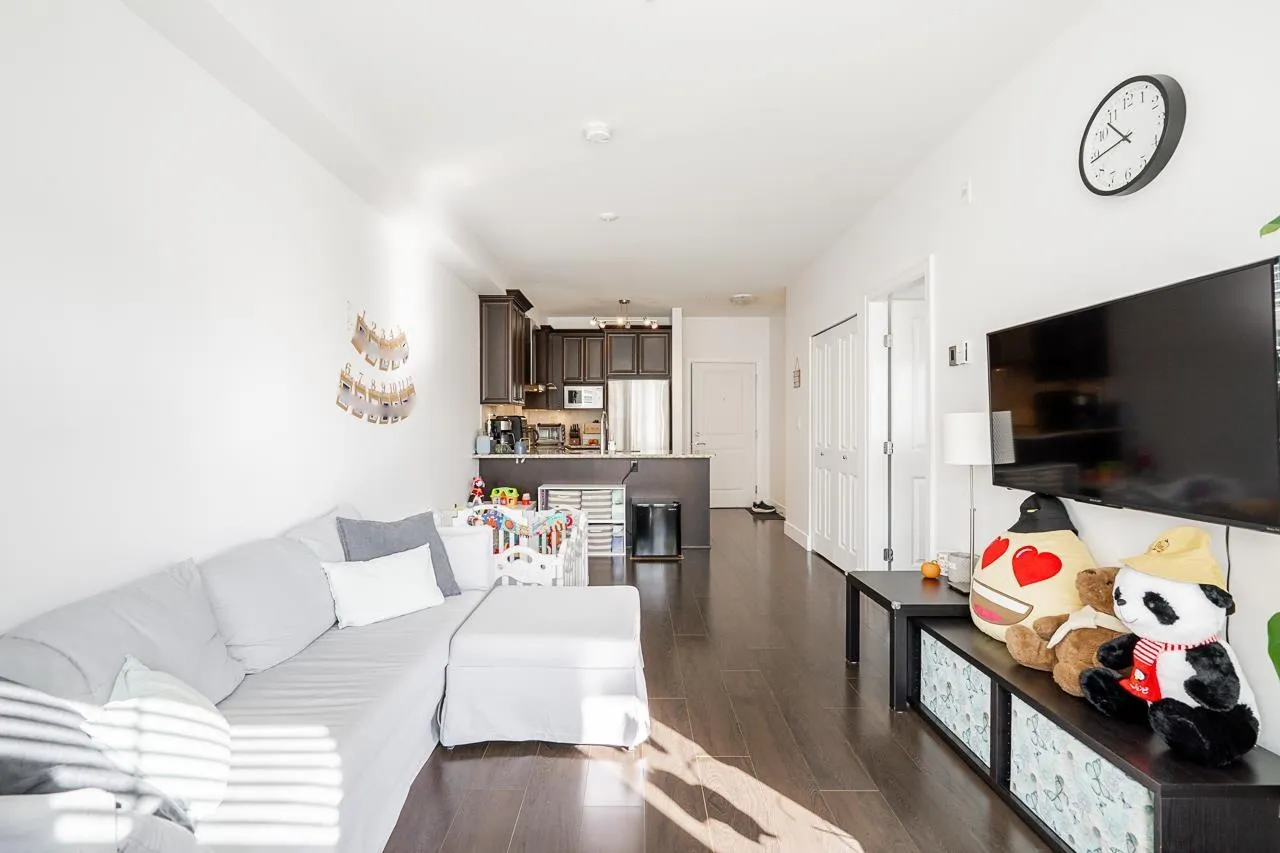 Welcome to Salix in Clayton Heights! Bright south-facing 1-bedroom, 590+ sq.ft. unit with a lovely view. Includes 2 parking stalls and a huge 4'x8' garage-style storage locker. Features stainless steel appliances, stone countertops, soft-closing cabinets with underlighting, large pantry, and wide plank laminate flooring. Enjoy 9-ft ceilings, an open layout, full-size washer/dryer, and a spacious covered patio. Big living room windows offer a peek a view of Mt. Baker. Great amenities: lounge, gym, bike room & guest suite. Walking distance to Willowbrook Mall, restaurants & transit. Rentals and pets welcome! Walking distance to the future skytrain! Call now for your private viewing! (id:27476)