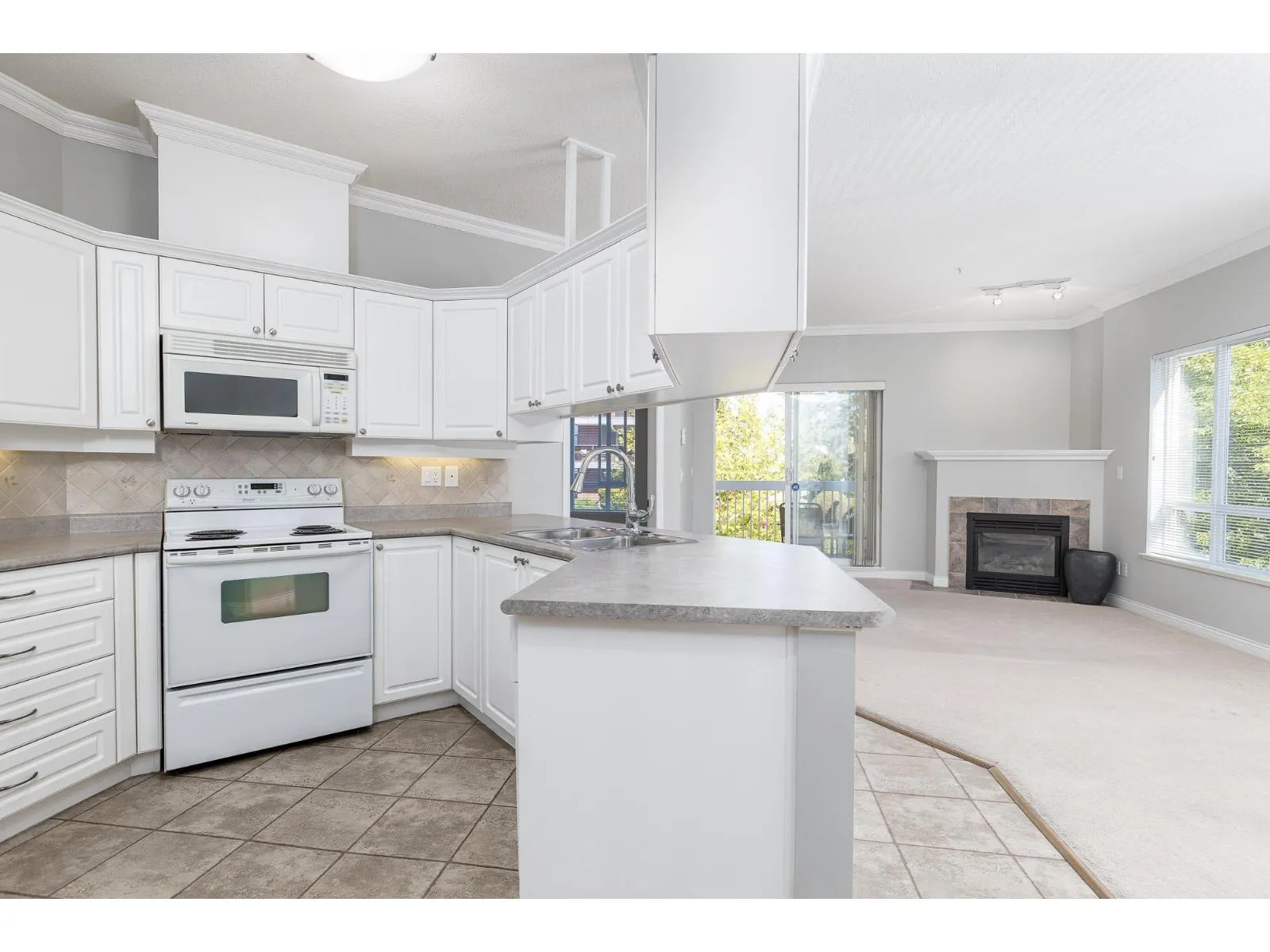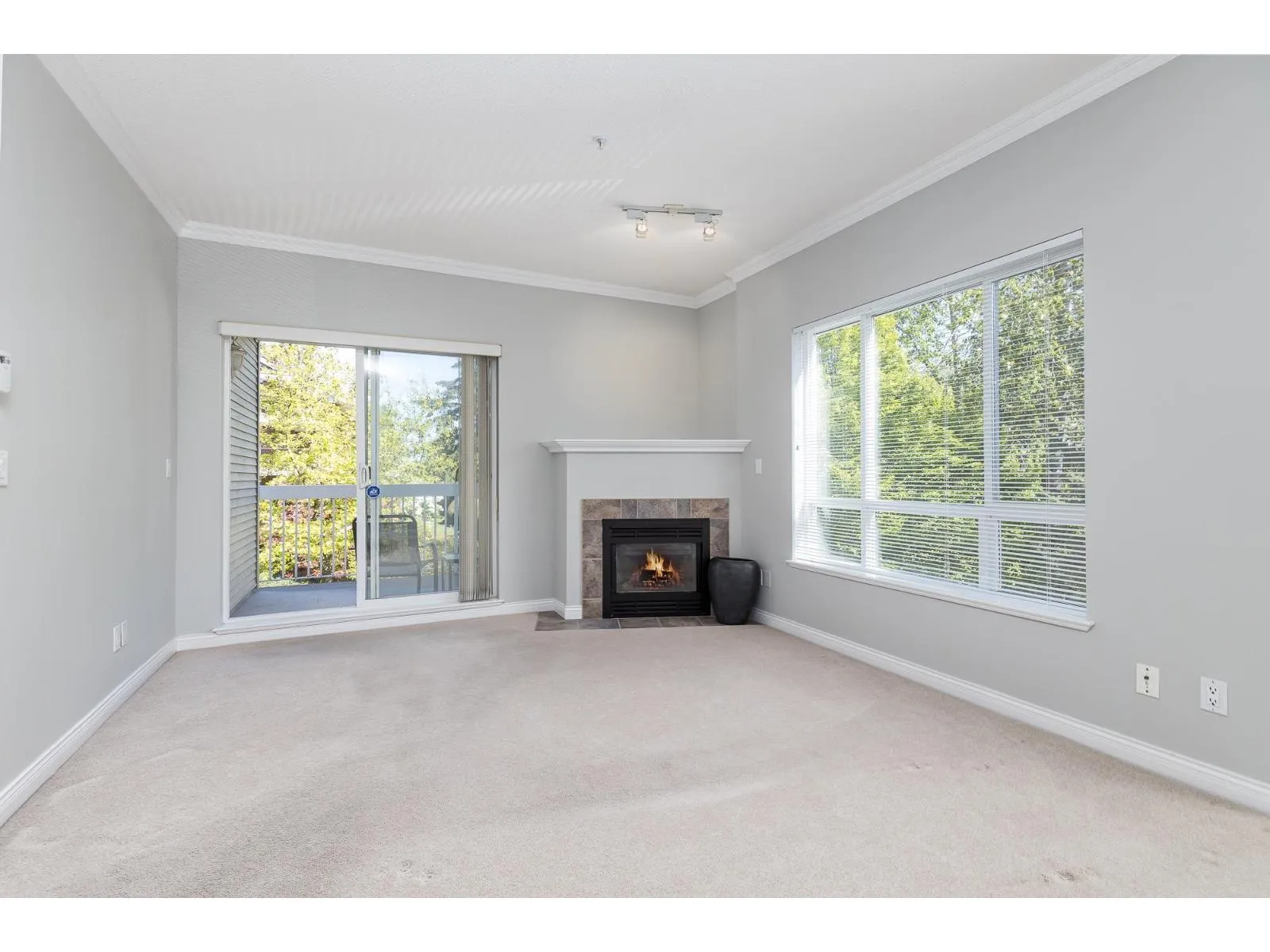 Welcome to Suncliff Place, and this bright and spacious end-unit condo in the heart of South Surrey! This 2 bed, 2 bath home offers just over 1,000 sq ft of comfortable living with abundant natural light from large windows throughout. Enjoy the cozy gas fireplace, open-concept layout, and a well-maintained building in a quiet, desirable location. Walk to shops, restaurants, and just a short drive to the iconic White Rock Pier and Esplanade. Age 55+. Includes 2 parking stalls and plenty of charm... perfect for downsizers, professionals, or anyone seeking coastal living with urban convenience. Don't miss this rare find! (id:27476)