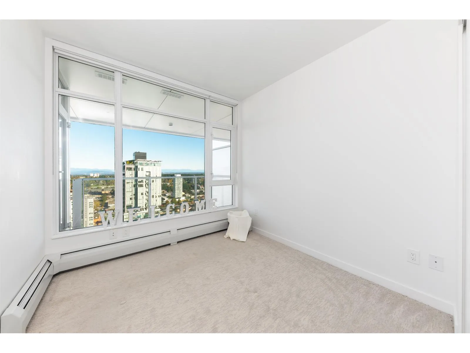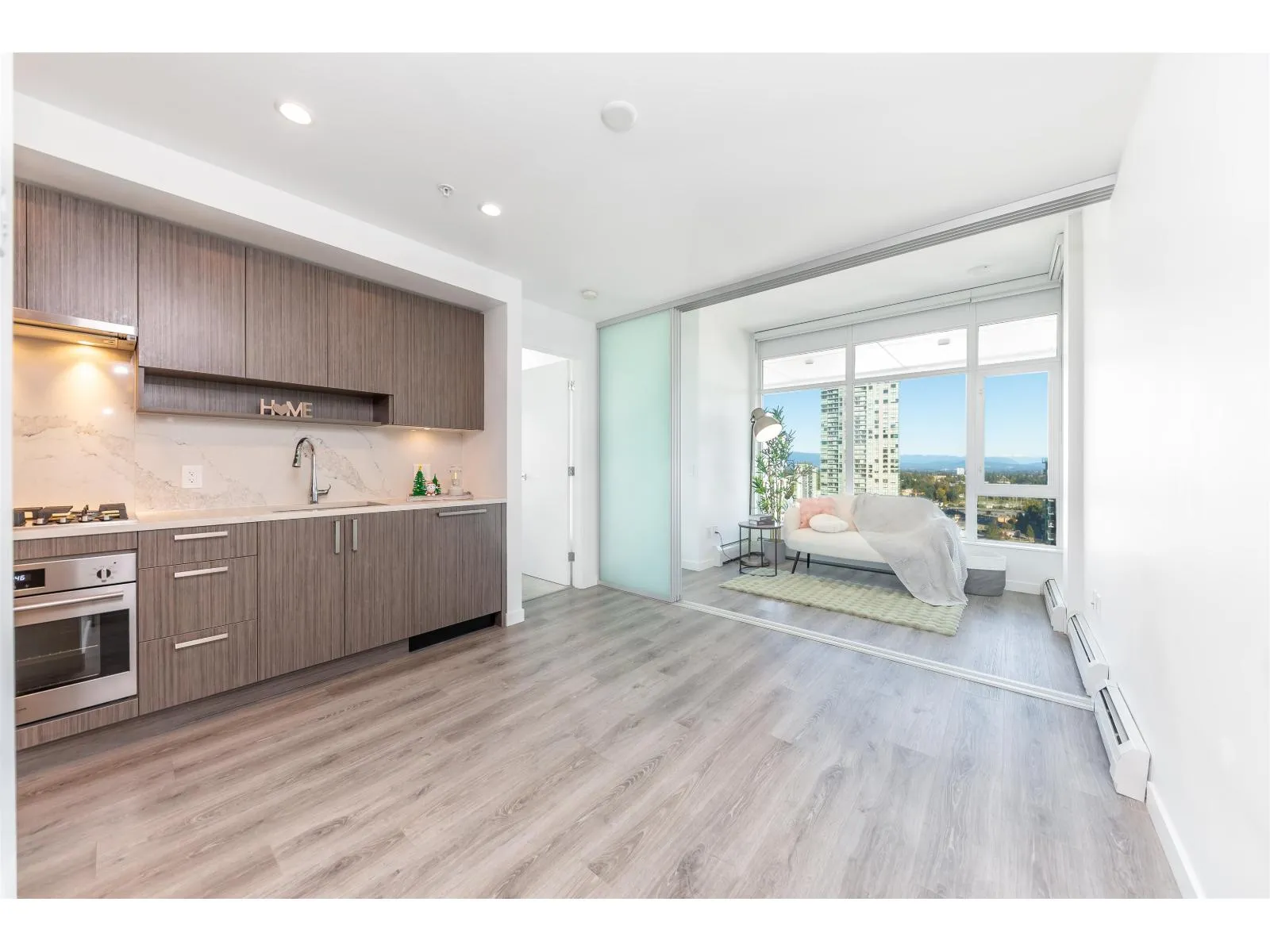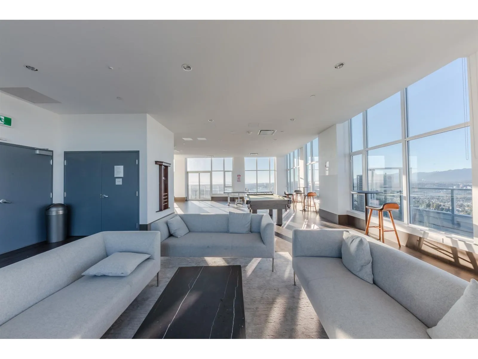 Welcome to One Central! Priced below BC Assessment! This stunning 2-bedroom, 2-bath + Den corner unit includes 1 parking stall and a bike locker. Enjoy a bright, open layout with floor-to-ceiling windows, quartz countertops, stainless steel appliances, and a rare wraparound balcony showcasing 270° city and mountain views. Amenities feature a 44th-floor Sky Lounge, rooftop garden, gym, yoga studio, co-working space, dog park, and 24-hour concierge. Steps to SkyTrain, SFU, Central City Mall, restaurants, and Holland Park. Move-in ready with new home warranty! Open House 11:00 AM - 200 PM, Oct 13. (id:27476)