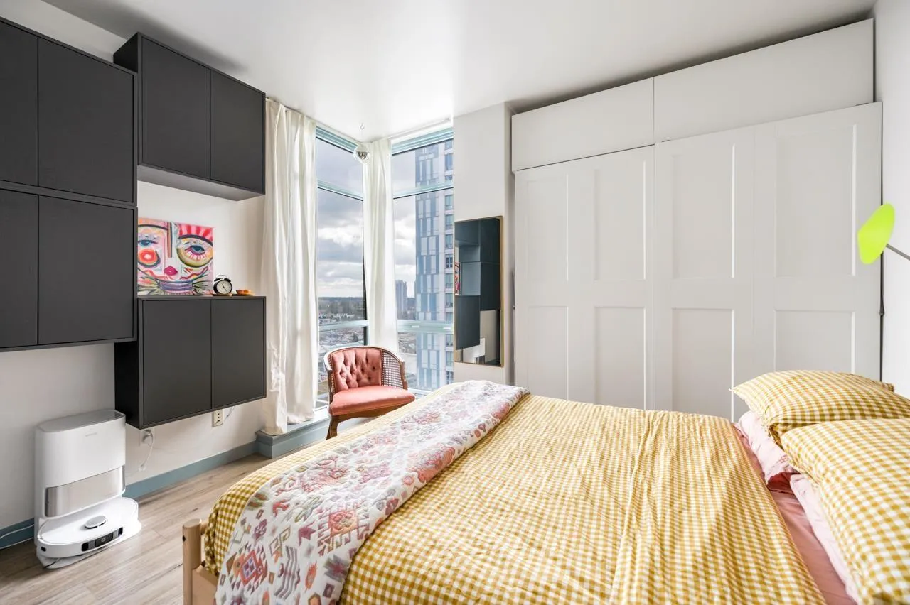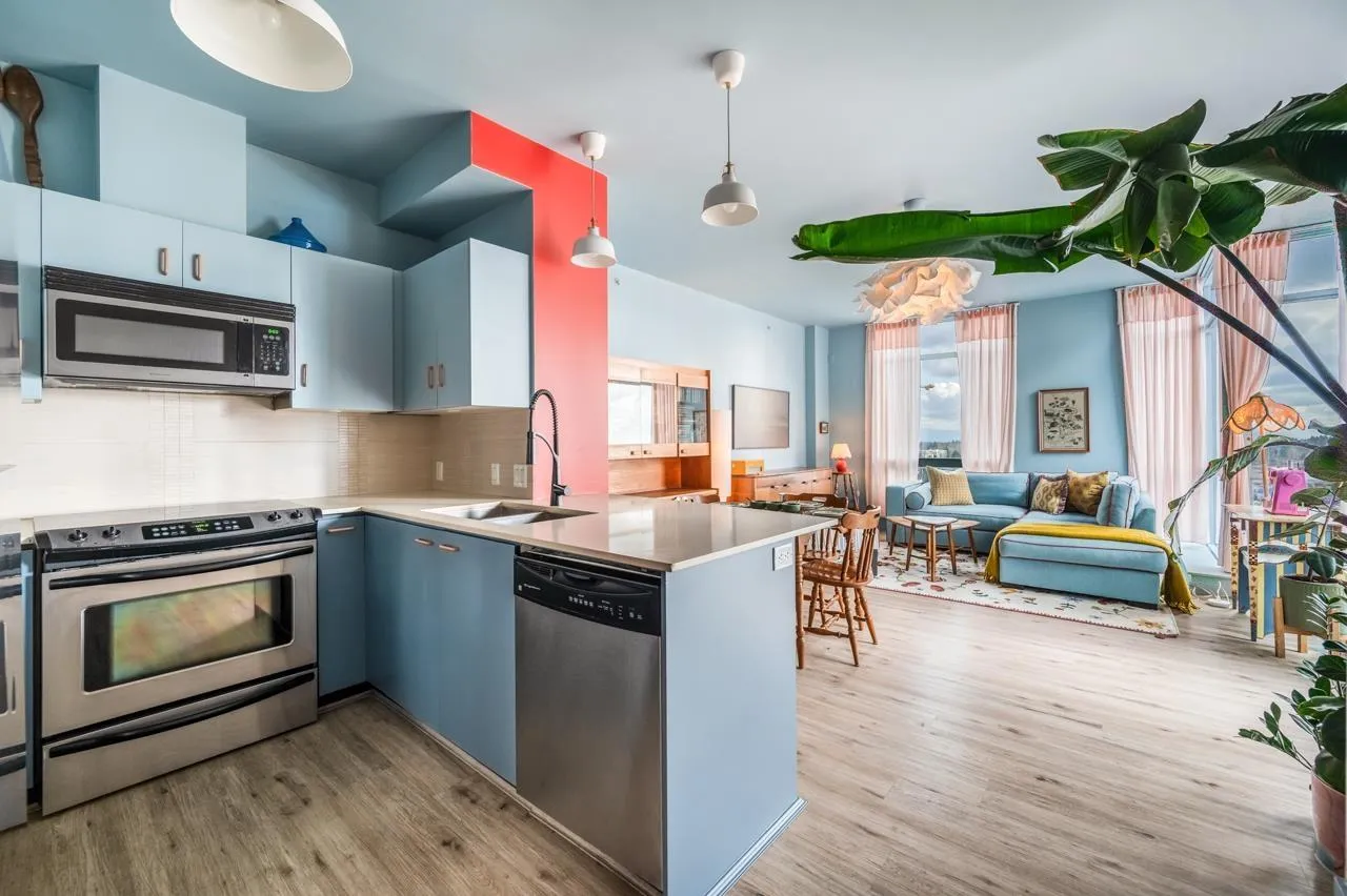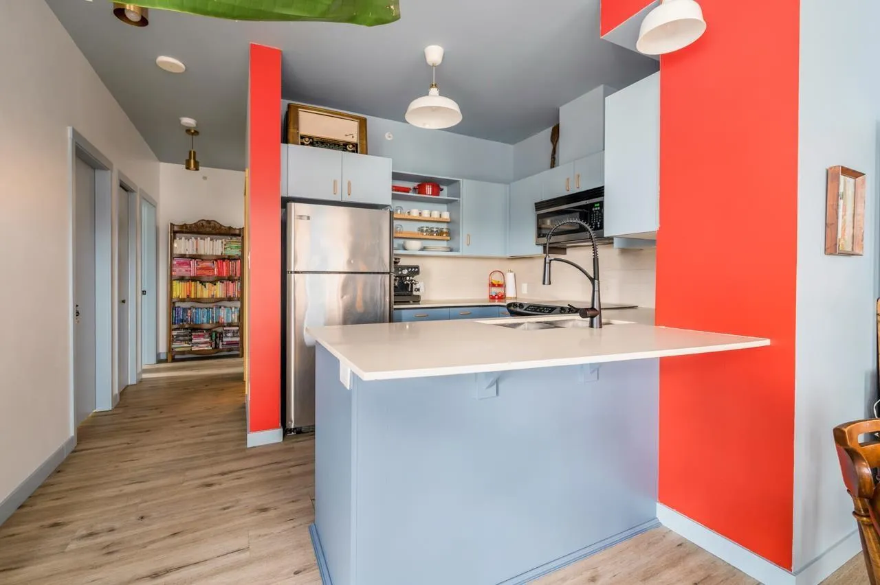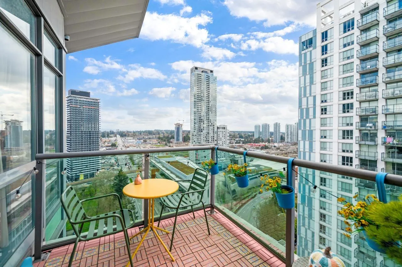One-of-a-kind penthouse in the heart of Central Surrey! Just steps from shopping and SkyTrain, this sun-filled southeast corner 2 bed 2 bath unit is beautifully renovated & offers the perfect blend of comfort, style, and functionality-with stunning panoramic views of the city skyline and mountains. Features 9 ft ceiling height, and thoughtful upgrades include updated flooring, modern bathrooms, removed popcorn ceilings, newer paint, closet organizers, and hand-painted floor tiles on the balcony. Designer lighting and custom furniture enhance the space, while the vibrant, vacation-style décor creates a warm and artistic love nest, lovingly crafted by the owner. Well managed building features a gym, party room, and a responsive building manager. Includes 1 parking and 1 locker. A true gem for those seeking something special. Come to visit us this Saturday and Sunday April 12 & 13 from 2pm to 4pm. Won't last. (id:27476)