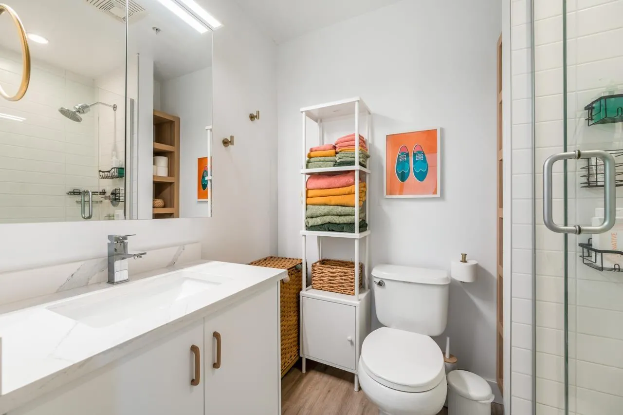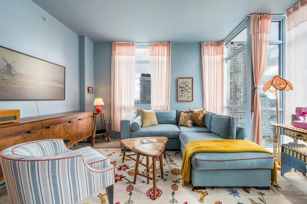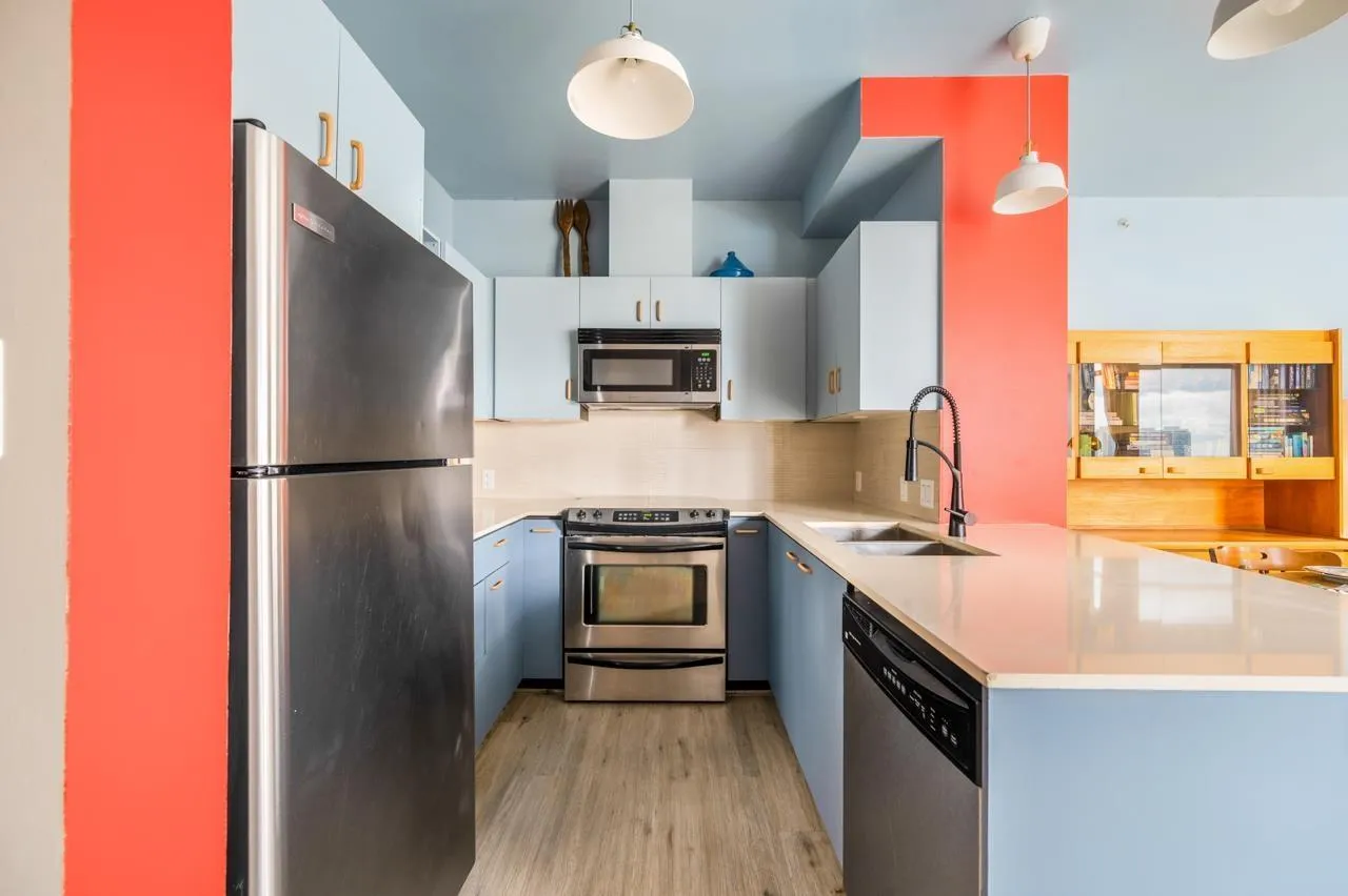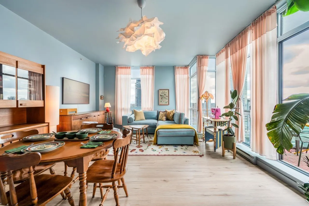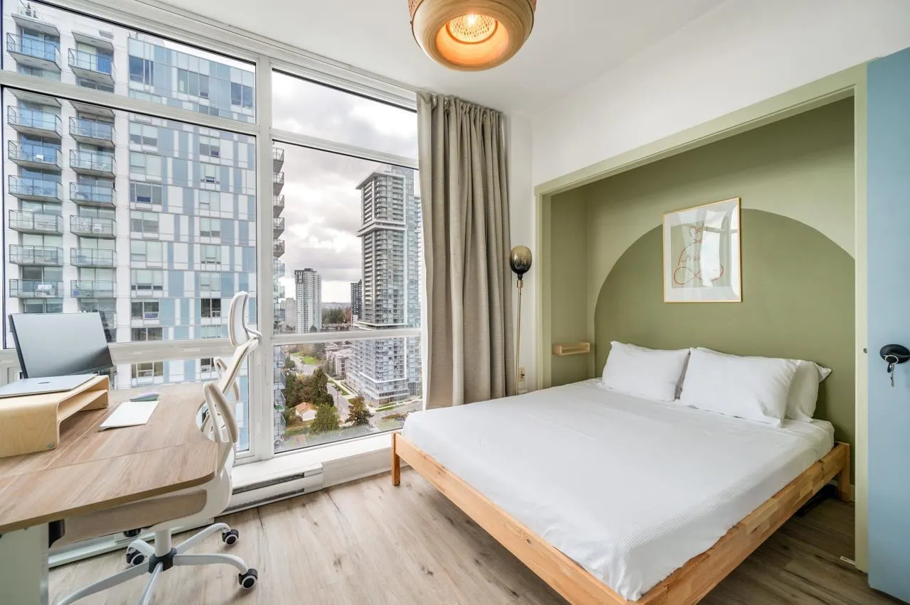 One-of-a-kind penthouse in the heart of Central Surrey! Just steps from shopping and SkyTrain, this sun-filled southeast corner 2 bed 2 bath unit is beautifully renovated & offers the perfect blend of comfort, style, and functionality-with stunning panoramic views of the city skyline and mountains. Features 9 ft ceiling height, and thoughtful upgrades include updated flooring, modern bathrooms, removed popcorn ceilings, newer paint, closet organizers, and hand-painted floor tiles on the balcony. Designer lighting and custom furniture enhance the space, while the vibrant, vacation-style décor creates a warm and artistic love nest, lovingly crafted by the owner. Well managed building features a gym, party room, and a responsive building manager. Includes 1 parking and 1 locker. A true gem for those seeking something special. Come to visit us this Saturday and Sunday April 12 & 13 from 2pm to 4pm. Won't last. (id:27476)