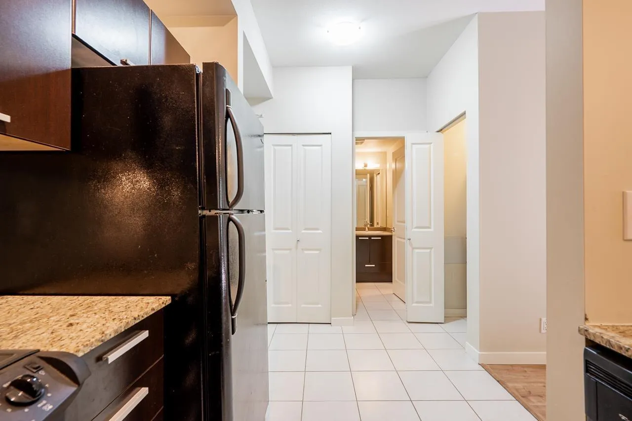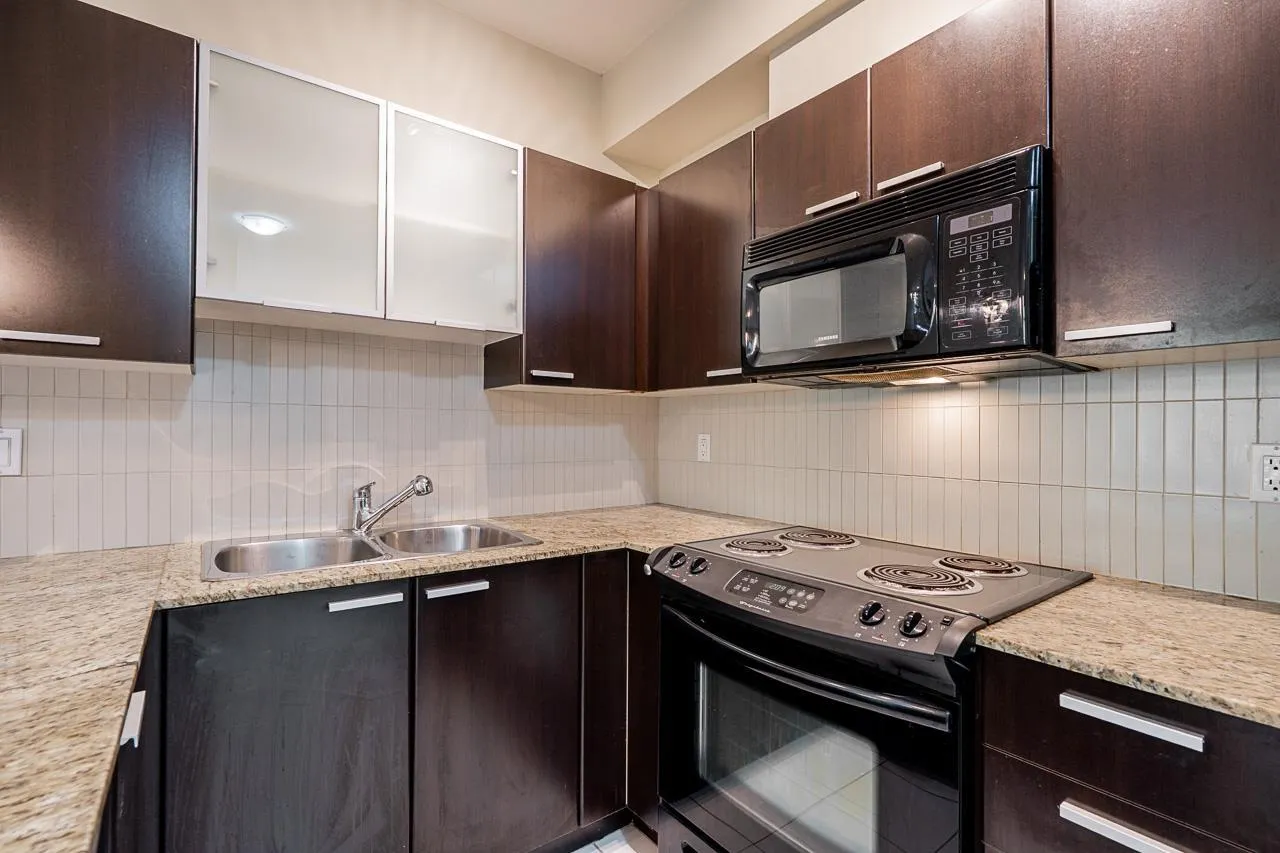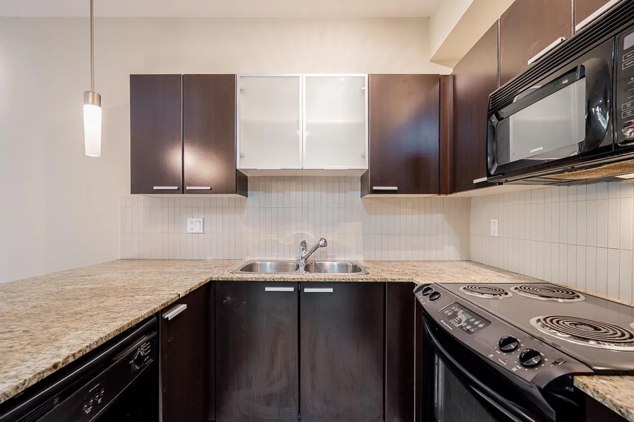 Located in the popular D'Cor community of Surrey City Centre. This Spacious One bedroom, one bathroom condominium is move in ready. Freshly updated with new wide plank laminate flooring in the living and dining areas and a new coat of paint. The Kitchen features dark wood grain cabinets, black appliances, granite counter top, tile backsplash and flooring. Situated on the second floor and on the quiet side of the building with dual-access balcony. 1 parking and 1 locker. Pet-friendly (One cat or one small dog permitted - maximum 20 kgs). The Building offers Secure Gated underground parking, onsite amenity and fitness rooms. Just a short stroll to SFU, KPU, Surrey Central Skytrain, and all the shops and restaurants of Central City Mall. OPEN HOUSE SATURDAY 2-4 PM NOVEMBER 15. (id:27476)