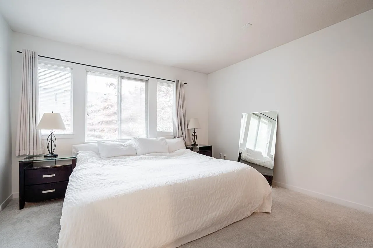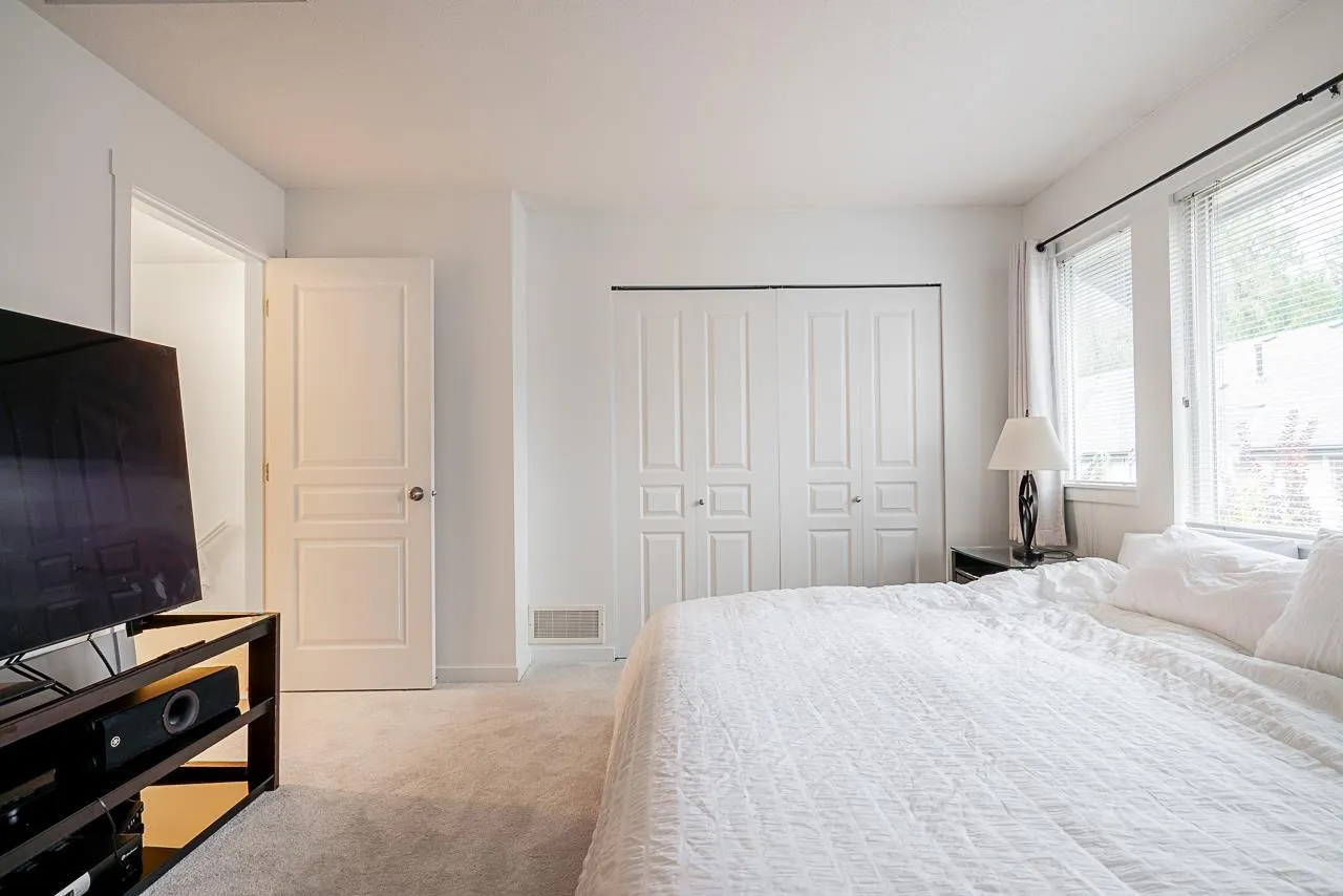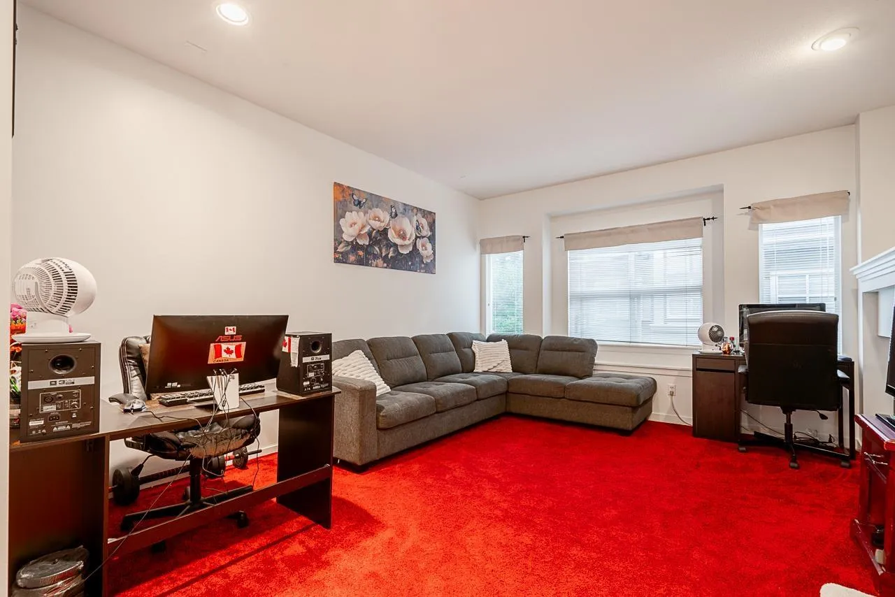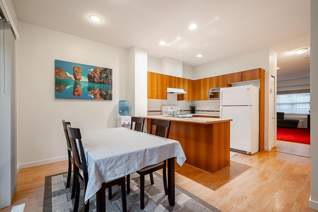 Freshly painted and very well cared for townhouse with brand new carpet and a bright, functional layout. Features a spacious living room with gas fireplace, a well-designed kitchen with adjoining dining/family area, and direct access to a private backyard from the main floor - perfect for entertaining or relaxing. Upstairs offers 2 generous bedrooms, including a large primary with walk-in closet and ensuite. Tandem garage provides parking for 2 vehicles plus room for storage or a small workspace. Family-friendly complex in a quiet, central location close to schools, parks, transit, shopping, and major routes. Well-managed strata with low fees and strong community appeal. Easy to show with reasonable notice. (id:27476)