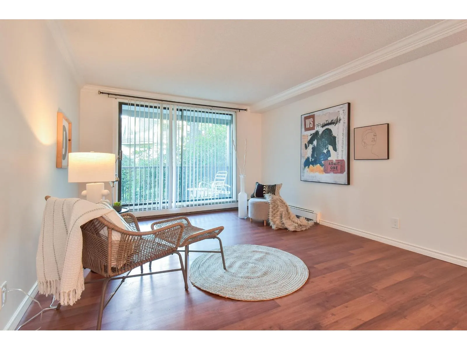 Very quiet and lovely 2-bedroom, 1-bathroom home in the 55+ Spinnaker II. Features a spacious layout with a peaceful walkout patio facing north with nature views, and a good-sized primary bedroom. The well-maintained complex includes recent updates and refreshed common areas. Conveniently located within walking distance to Semiahmoo Mall, shopping, restaurants, public transit, library, and more. Includes 1 underground parking stall and 1 storage locker on the same floor. One cat allowed. Non-smoking building. Major updates: roof (2019), elevator (2015), hot water system (2017), hallway paint and carpets (2017). (id:27476)
