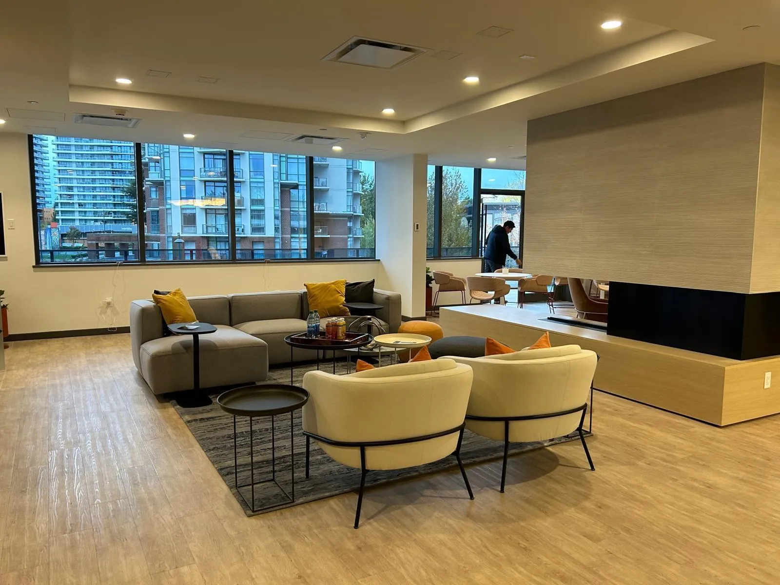 Built by Bosa! This corner unit on the 29th floor has great views of Mountains, River from the Living Room and pool can be seen from the bedrooms. This complex is in the heart of the city, close to bus stops, library, city hall and the building has a provision of electric vehicle charging. Kitchen has an extendable dining island. The building provides amenities across three floors, which includes exercise room, meeting spaces, party room, a lounge, outdoor pool, BBQ area, bike storage, and more. It's conveniently located near the Skytrain, SFU, UBC (in the future), Kwantlen Polytechnic University, grocery stores, retail, and restaurant. (id:27476)
