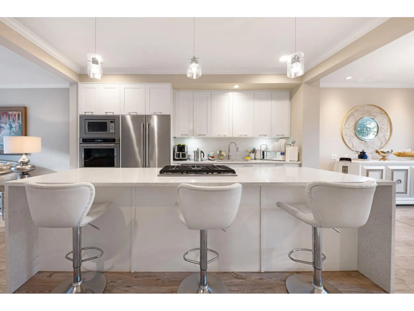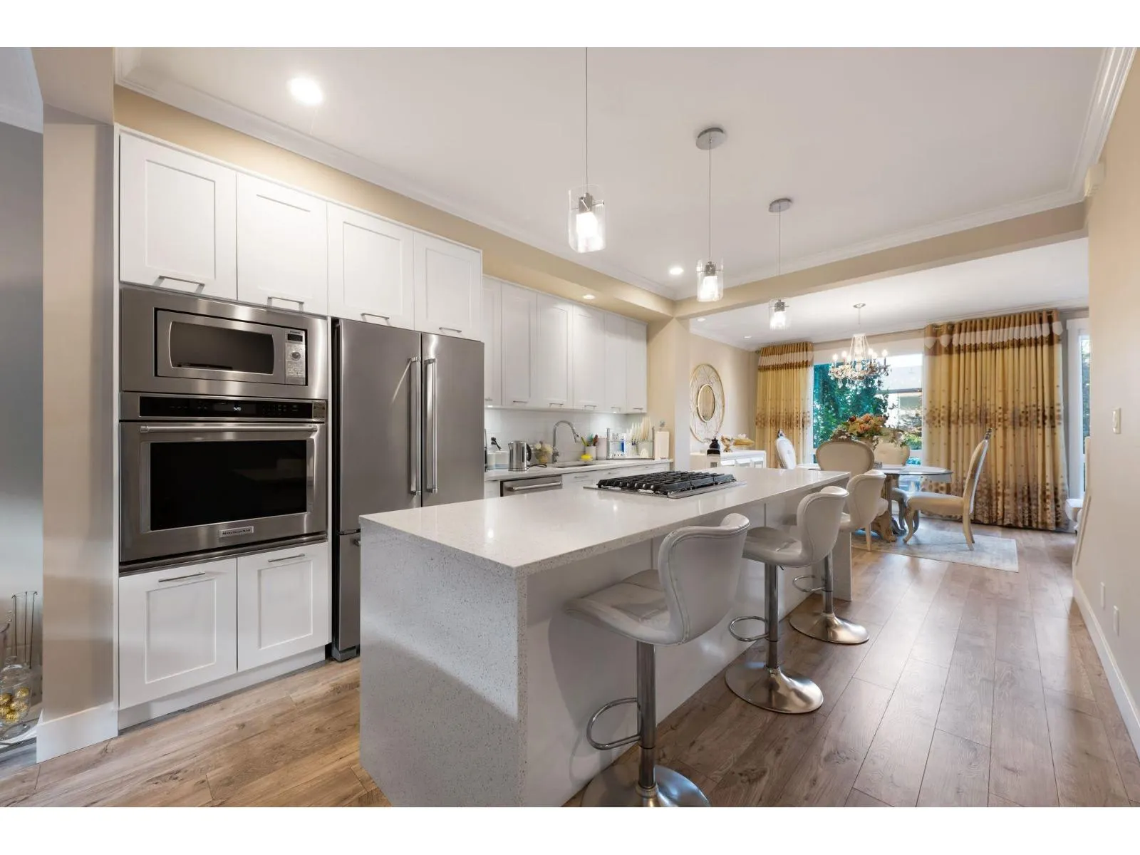 Welcome to Harvest at Bose Farms by award-winning Platinum Group - a community designed to LIVE, GROW, and PLAY. This beautifully crafted home features elegant living spaces with upscale finishes throughout. The chef-inspired kitchen boasts a premium KitchenAid appliance package with a built-in gas cooktop, retractable downdraft fan, counter-depth fridge with ice/water, and a stunning quartz waterfall island offering extended counter space and additional storage - perfect for entertaining. Enjoy durable and stylish wide-plank hardwood laminate flooring on the main level, soaring 9' ceilings on both main and upper floors, and a spa-like ensuite with dual under-mount sinks and a private walk-in rain shower. A true blend of luxury, function, and lifestyle - this one has it all! Easy to show! (id:27476)