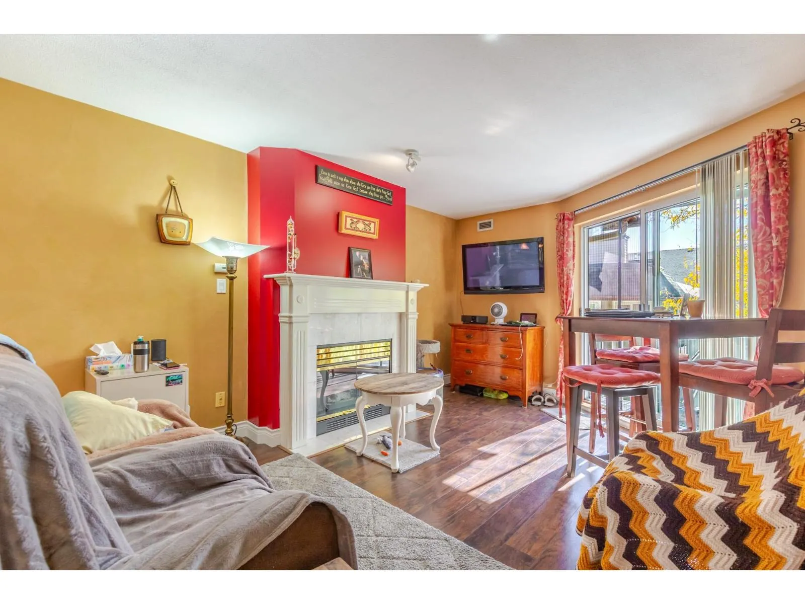 Attention first time home buyers! Listed well under assessment! Welcome to this top floor 1 bed / 1 bath condo! This bright & spacious home is very quiet with a large south facing balcony over looking the inner courtyard. Generous rooms sizes featuring a cozy gas fireplace, white kitchen with newer appliances, and a great floorplan. Very tidy updated building close to everything you need- shops, transit, schools, and freeway access. Family orientated complex with a very proactive strata with reasonable fees which include a gym & sauna . Rentals, pets and all ages allowed! Make your appointment today! (id:27476)