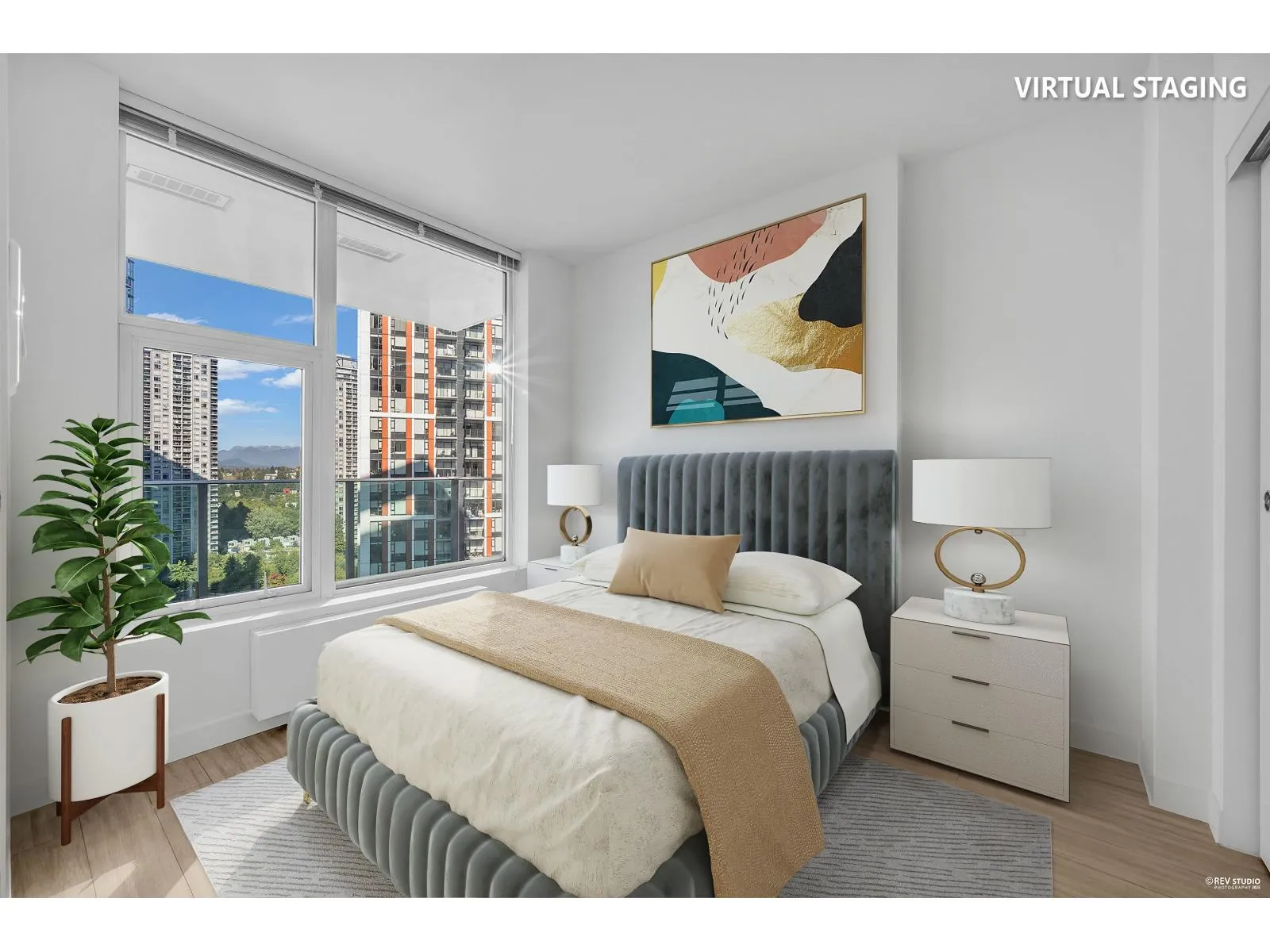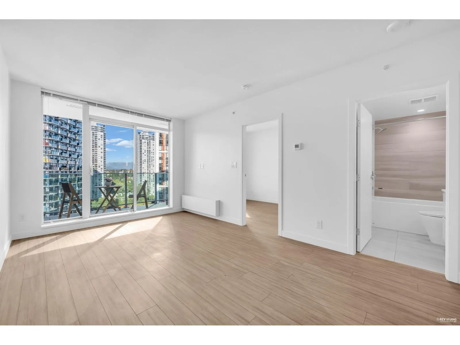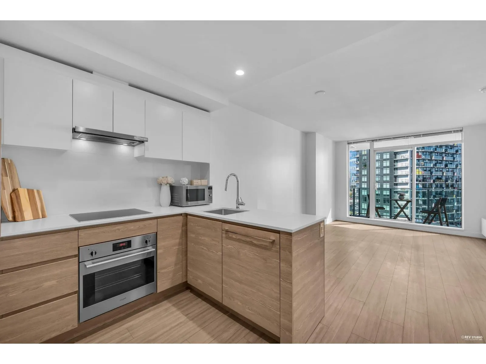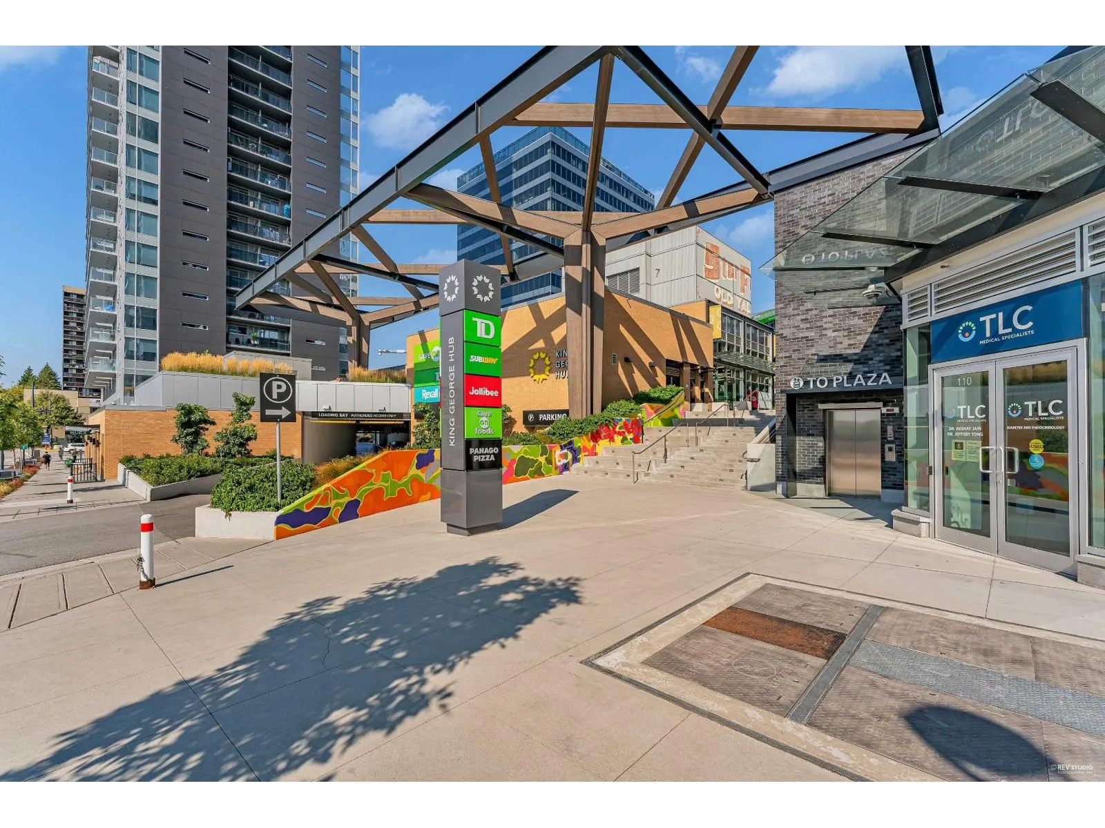 King George Hub 2 by PCI Developments! This like-new, 1 Bed 1 Parking condo offers a blend of modern luxury and unparalleled convenience. Bright and private residence featuring floor-to-ceiling windows and sleek laminate flooring. The beautifully appointed U-shaped kitchen completes with quartz countertops, Fulgor Milano cooktop and oven, & integrated refrigerator and dishwasher. Spacious balcony provides a serene escape with stunning, unblocked mountain views. Exclusive amenities, including a rooftop lounge, state-of-the-art fitness center, etc. Unbeatable located, direct indoor access to the King George SkyTrain Station, Save-On-Foods, Starbucks, TD Bank, and restaurants. Steps from Central City Mall, T&T Supermarket, SFU, and the future UBC campus. Must See! (id:27476)