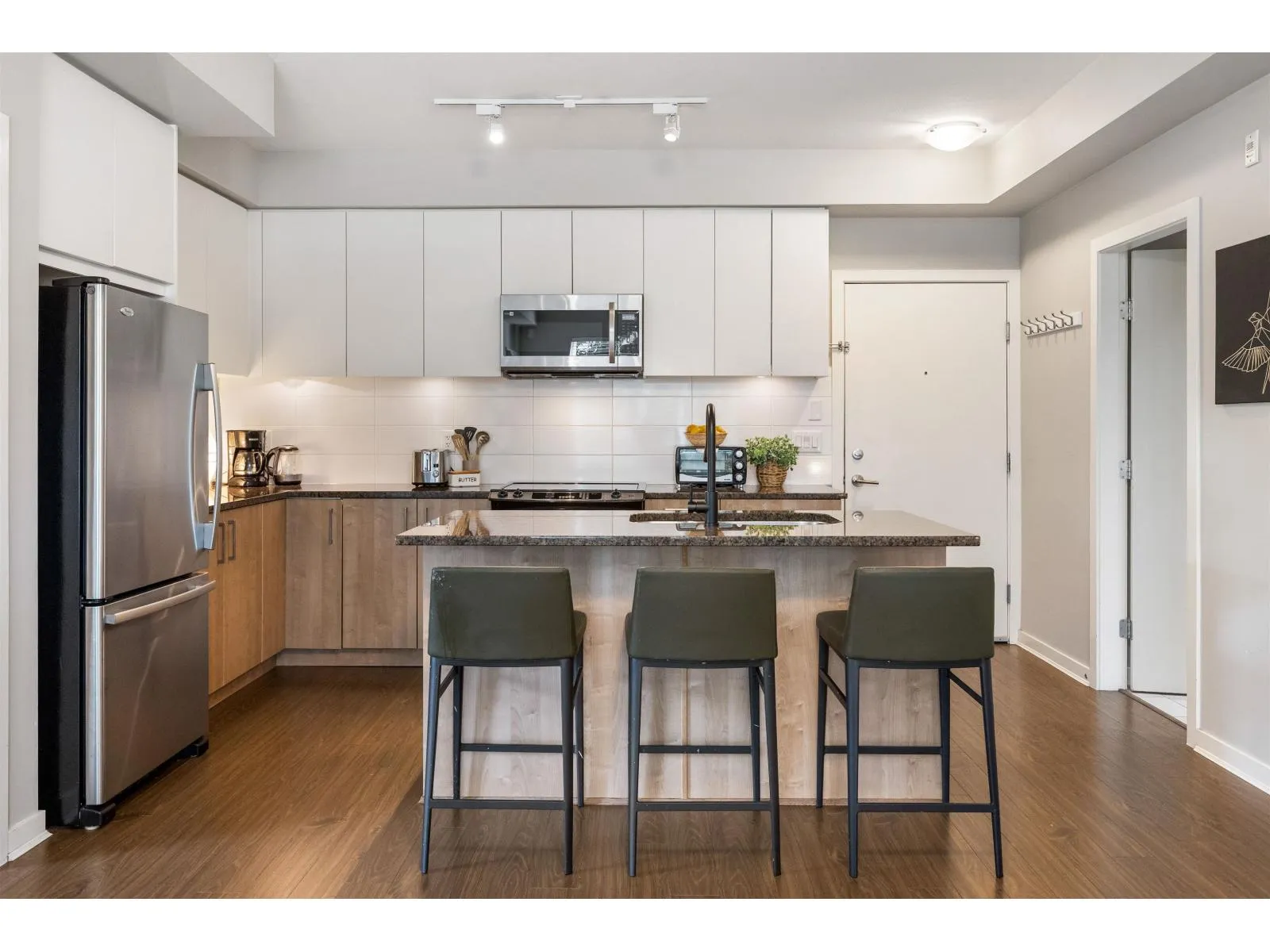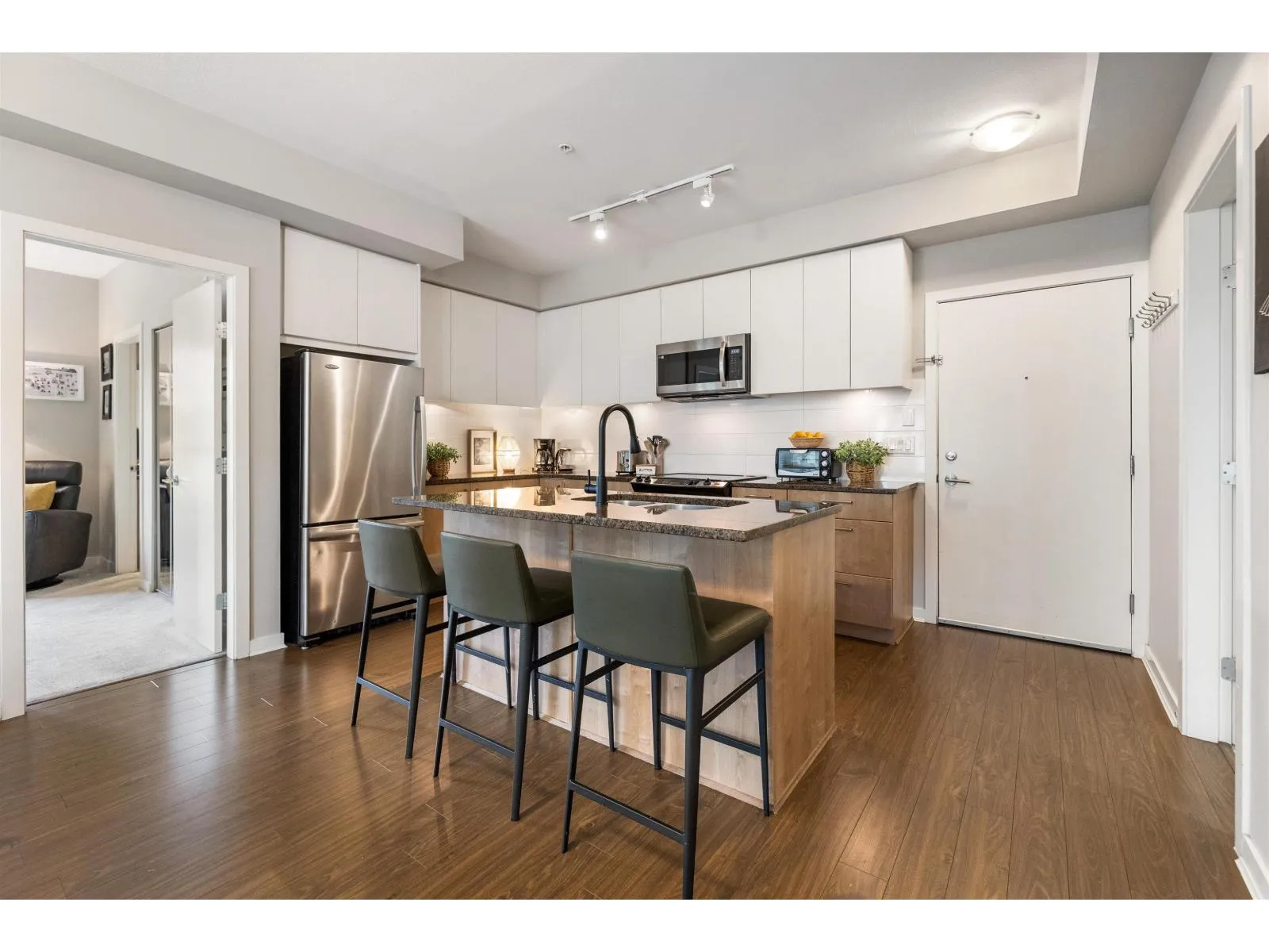 Welcome to Waterstone - where luxury meets lifestyle! This bright 2-bed, 2-bath corner unit impresses with 9-foot ceilings, quartz countertops, and heated bathroom floors for year-round comfort. The primary suite offers a spacious walk-in closet and a private deck, with an additional deck off the second bedroom - perfect for morning coffee or evening relaxation. Enjoy resort-style amenities including a pool, hot tub, fitness center, theater room, and recreation lounge. With its thoughtful layout, modern finishes, and two outdoor spaces, this home combines elegance, convenience and a location close to everything you need. (id:27476)