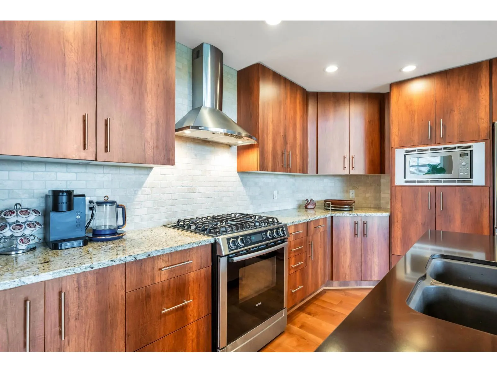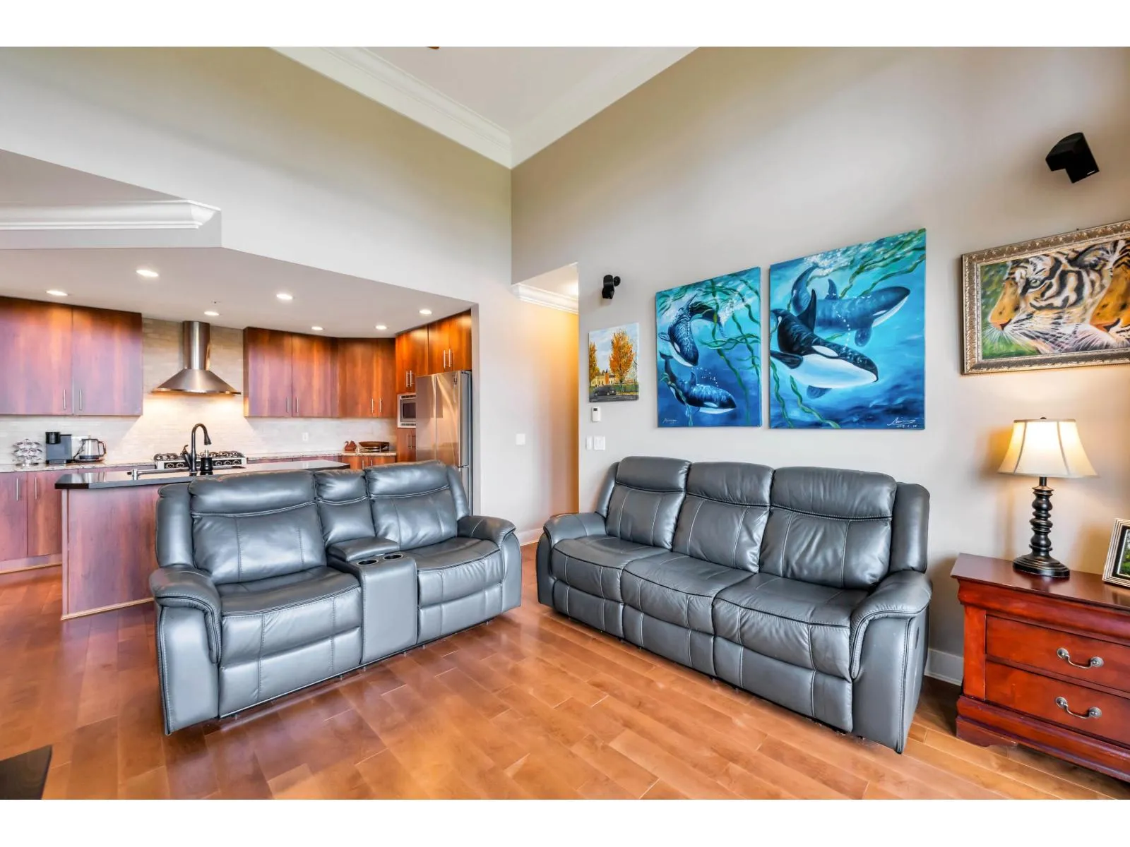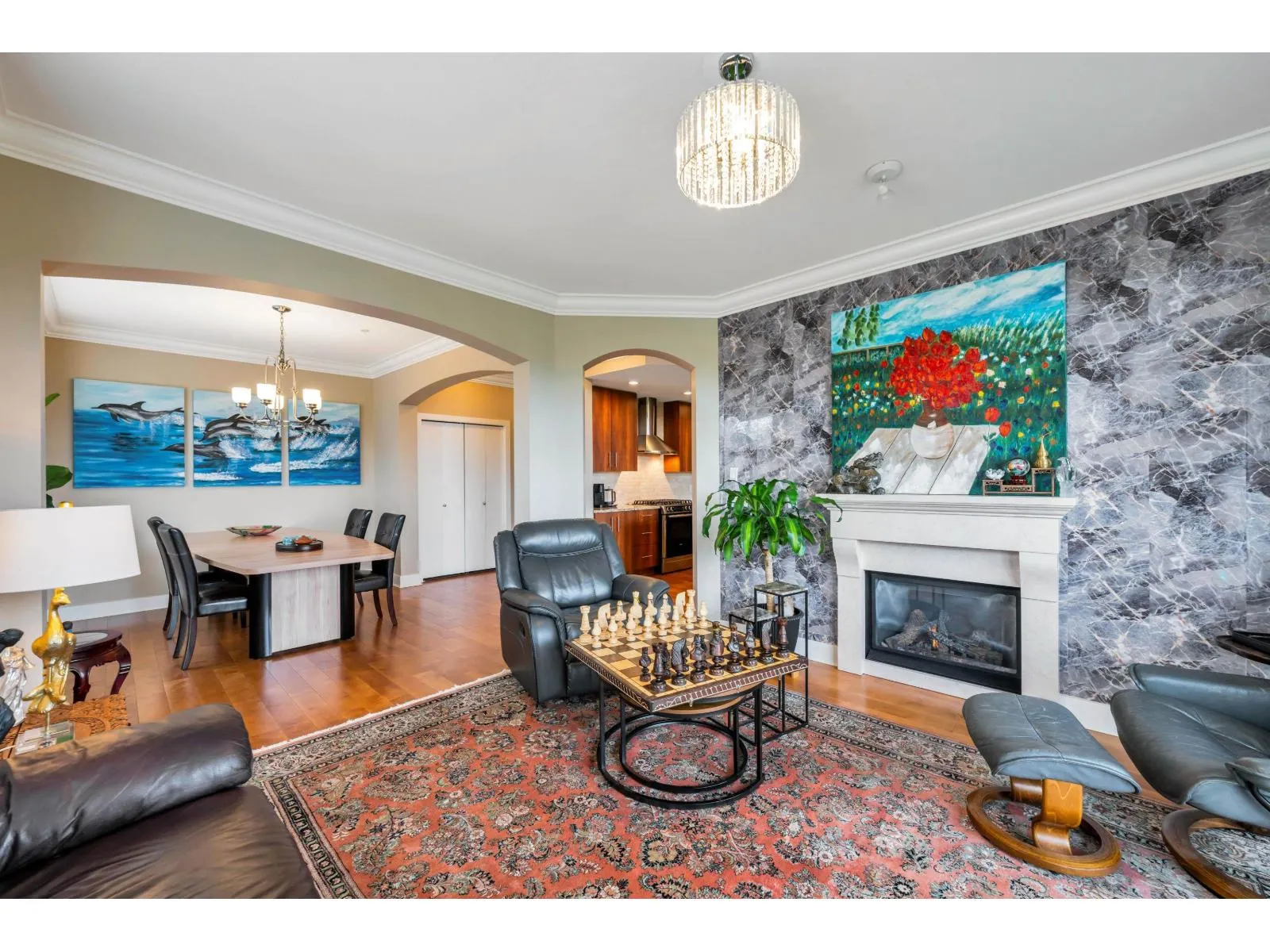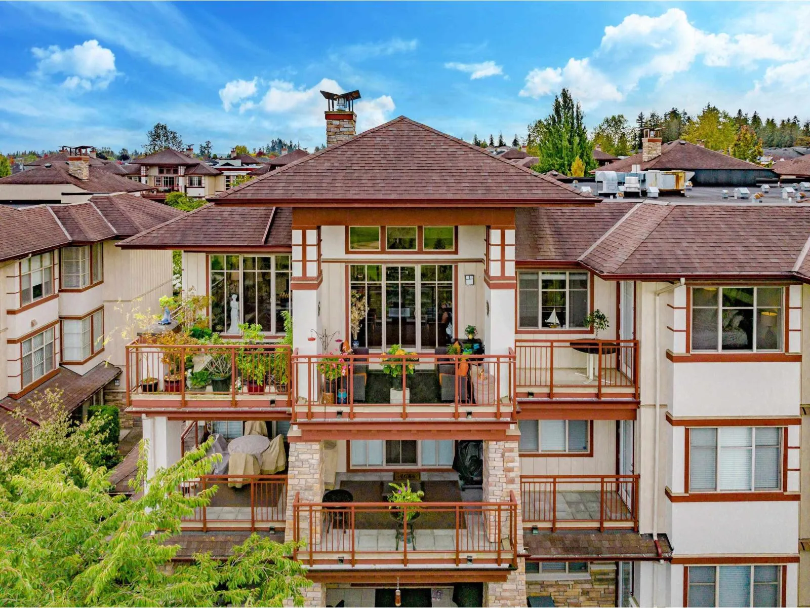 AMAZING NORTHVIEW GOLF COURSE & MOUNTAIN VIEWS from this TOP-FLOOR CORNER PENTHOUSE in the prestigious gated community of St. Andrews. A Rancher in the Sky with 1,712 sqft plus a 389 sqft wraparound covered balcony w/ panoramic views. 2 large Bedrooms & Den plus a full-size Laundry w/ custom storage, & storage locker outside your door. Gourmet kitchen w/ granite counters, a Bosch gas stove, & pull-out pantry shelves. Enjoy vaulted ceilings, oversized windows, & two fireplaces. The Primary bedroom has an ensuite w/ heated floors & an impressive walk-in closet. In-floor radiant heat, hot water & gas included. 2 side x side parking stalls. Amenities include a Pool, hot tub, sauna, steam, gym, media room, billiards, guest suite & more. Non-smoking building, 1 pet any size. (id:27476)