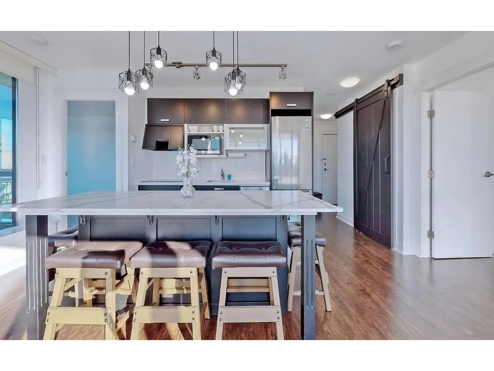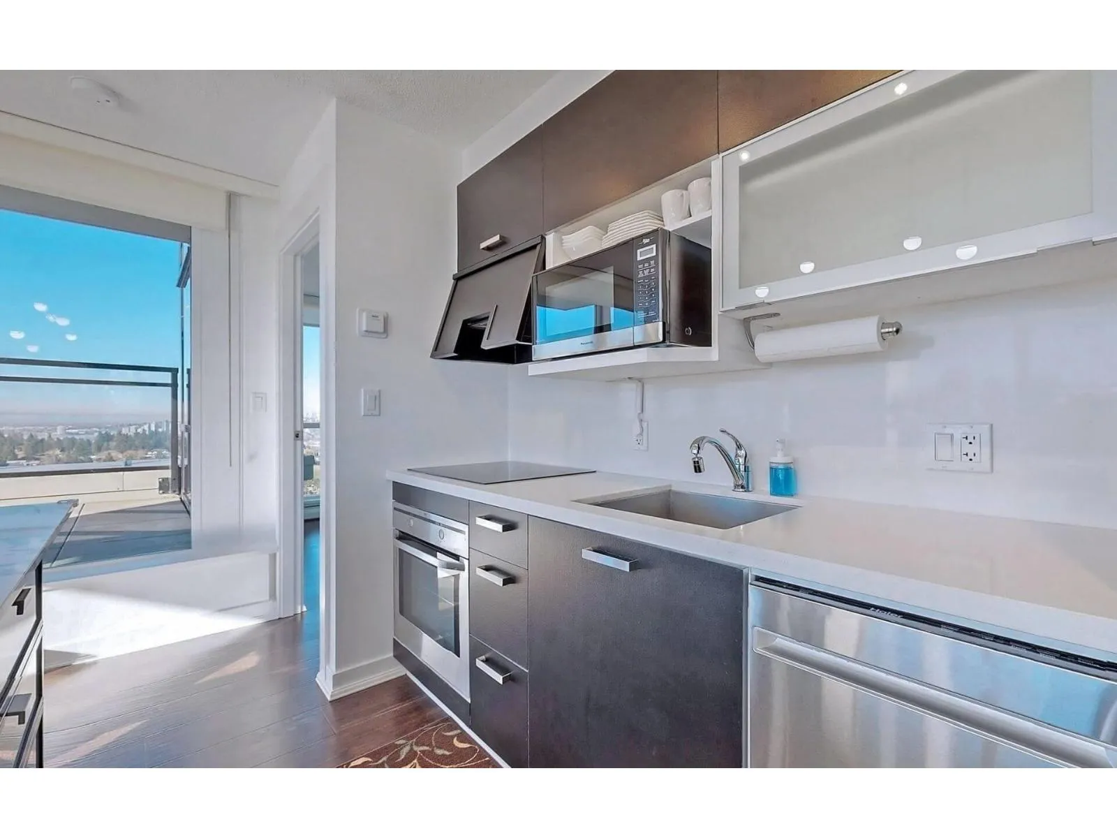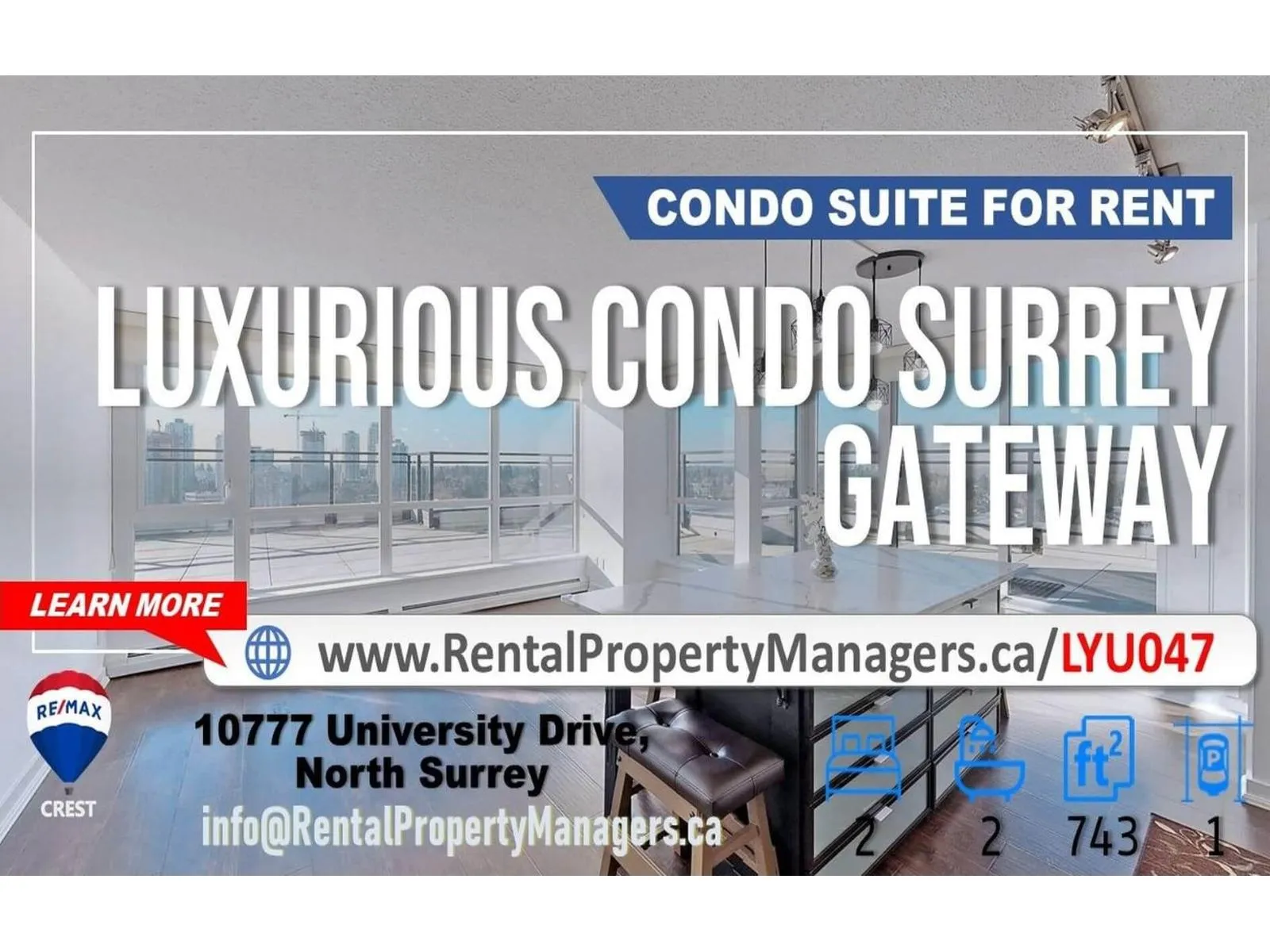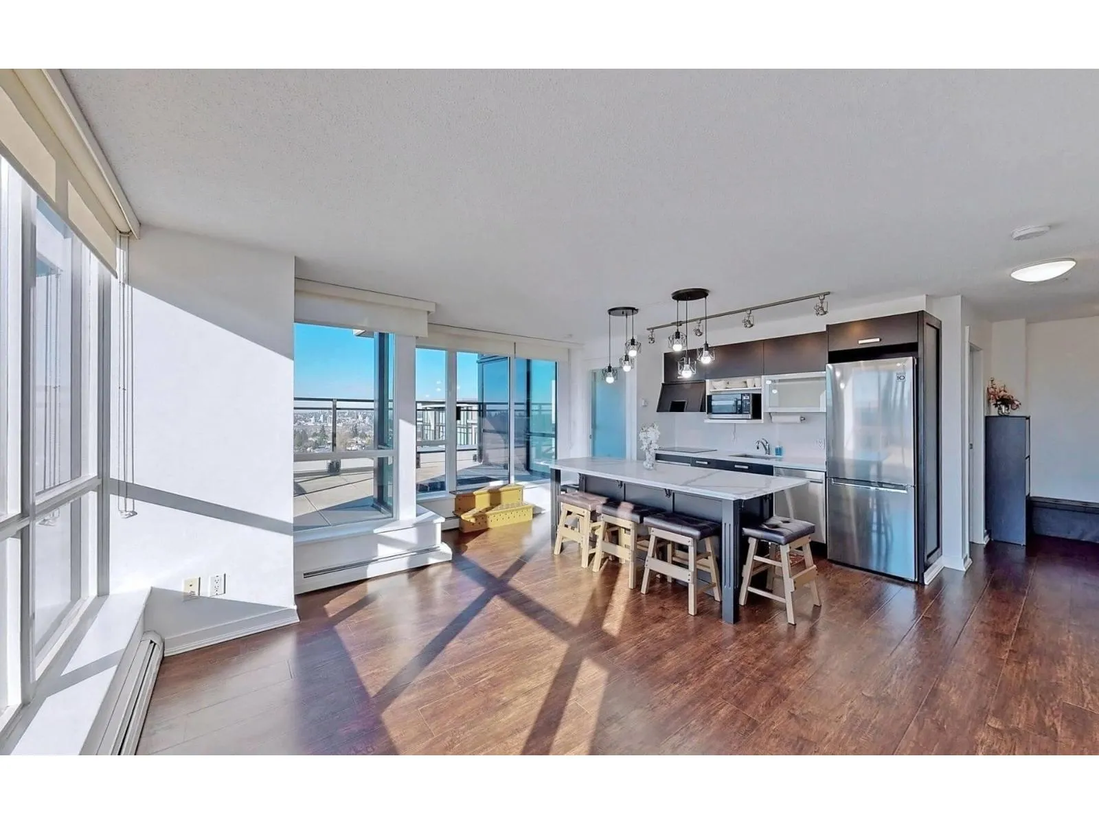 2 bedroom condo in the heart of downtown Surrey. Enjoy GORGEOUS Panoramic Park & River views from a large Balcony on 21t Floor! Full concrete High-rise in superb location across from gateway skytrain Station. Minutes away from Central City Mall, SFU, KPU campus, Walmart, Shopping, schools and restaurants. Bright living room with wall to wall windows & lighting fixtures. Hardwood flooring throughout & quartz countertop. New flooring and paints on most walls. Amazing Amenities: Fitness centre, Beautiful Courtyard with patio and BBQ area for parties for family gatherings. One parking and storage locker. Photos were taken in 2022. All information provided is deemed reliable but is not guaranteed, all measurements are approximate. Tenant or tenant's agent to verify if deemed important. (id:27476)