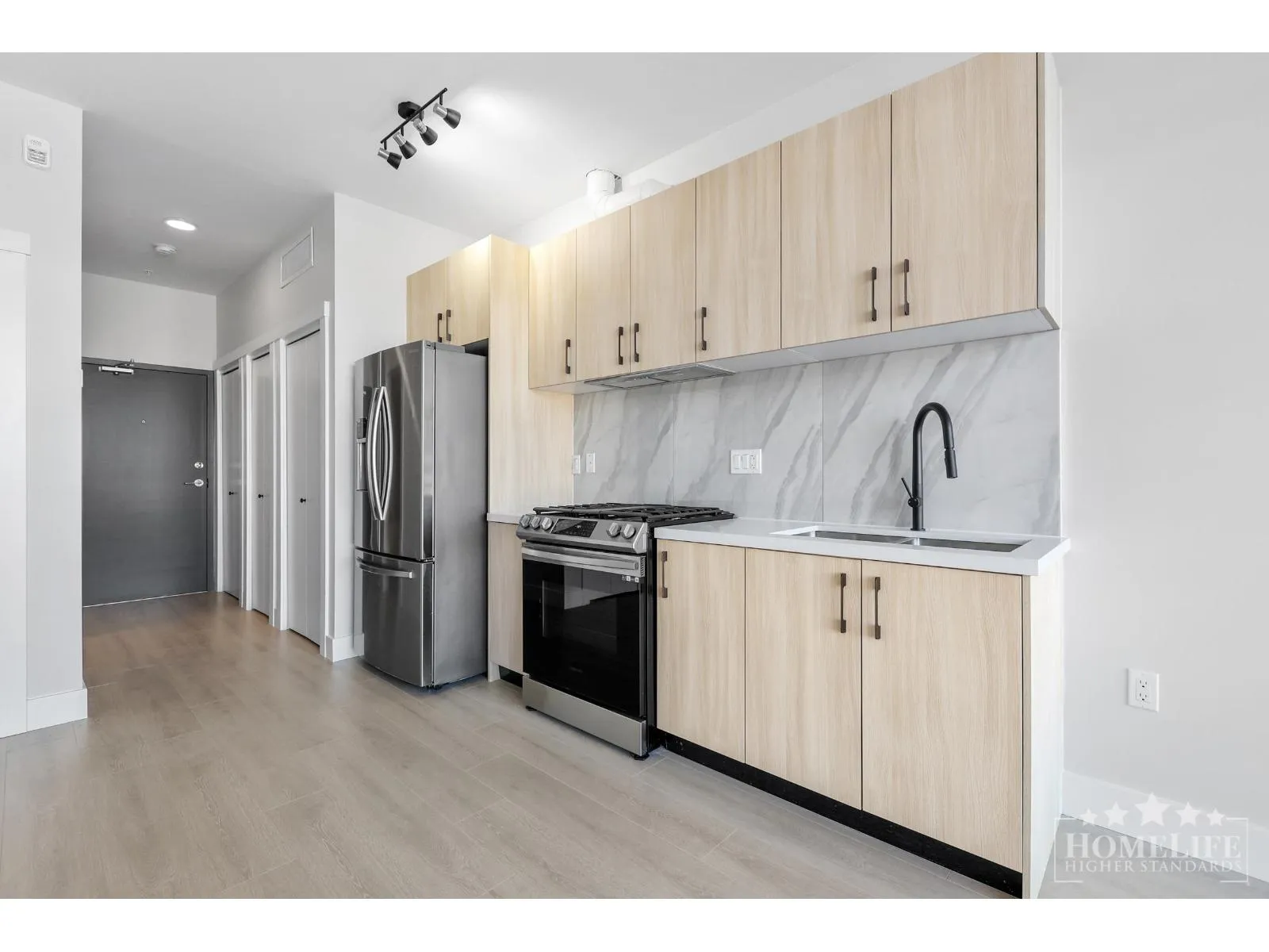 Studio unit in Kenzie. Features include air conditioning, Samsung stainless steel appliances (double-door refrigerator, gas range with convection oven, dishwasher, front-load washer, and dryer), quartz countertops, laminate flooring, soundproofing, tankless water system, secure underground parking, and covered patios with a BBQ gas line and water bib. Retail on the main floor includes daycare, dentist, barber, and more. Schools that fall into this catchment are Cambridge Elementary and Sullivan Heights Secondary. Grocery stores, dining, and recreation are 5-15 minutes away. No smoking. Call Happy Boyal at 778-859-3453 for details or to apply. (id:27476)