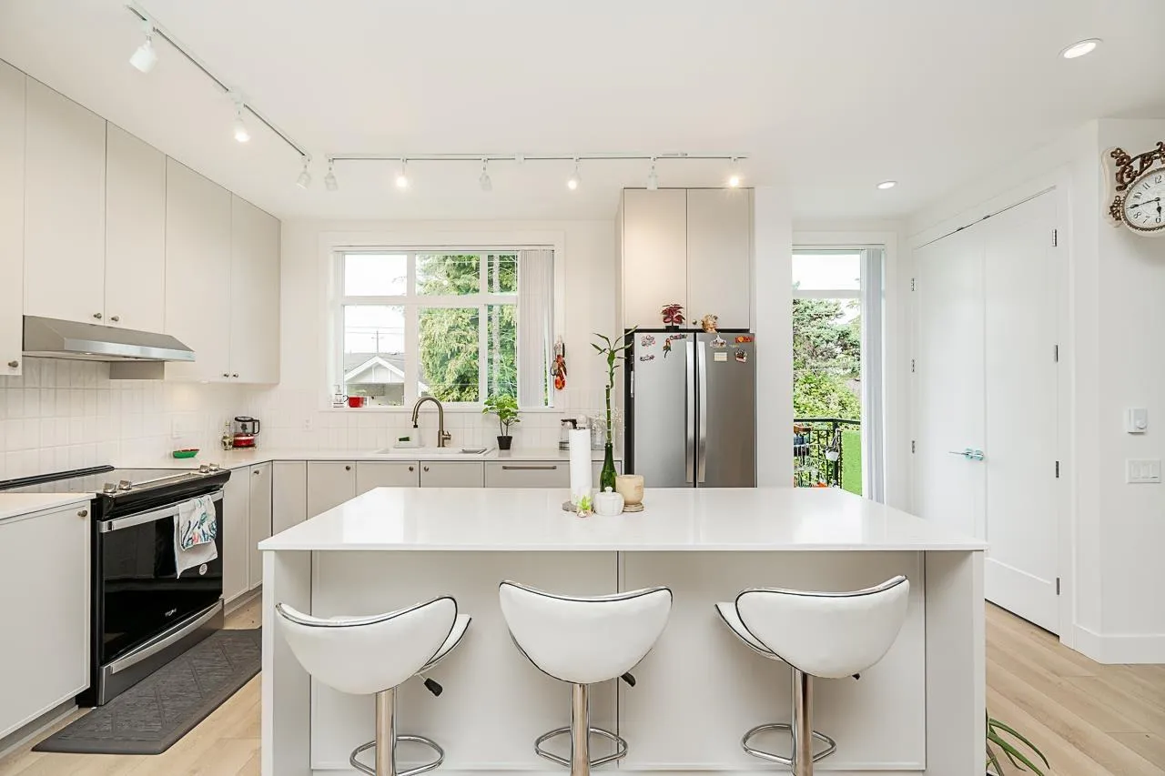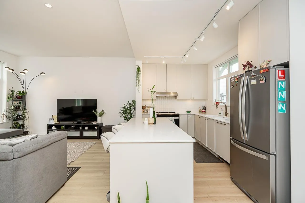 Welcome to Woodward by Mosaic, A charming 3 Bed and 3 Bath Townhouse approx 1389 sq.ft. This hidden gem rests in a prime location, nestled in the heart of Surrey. Imagine being just steps away from grocery stores, transit, parks, restaurants, and Much More. Open concept floor plan. With 9-foot ceilings and generously proportioned extra-large windows, natural light streams in, giving the living spaces in a warm and welcoming glow. The kitchen features S/S appliances and engineered quartz countertops. Delight in the small pleasures of life on your private and cozy patio, the perfect spot for sipping your morning coffee or unwinding after a long day. Call today to book your showing. Don't miss out! (id:27476)