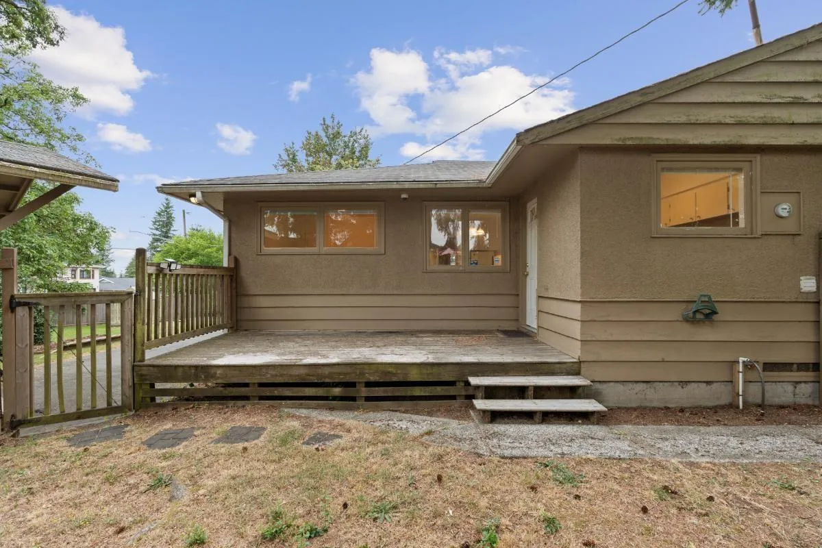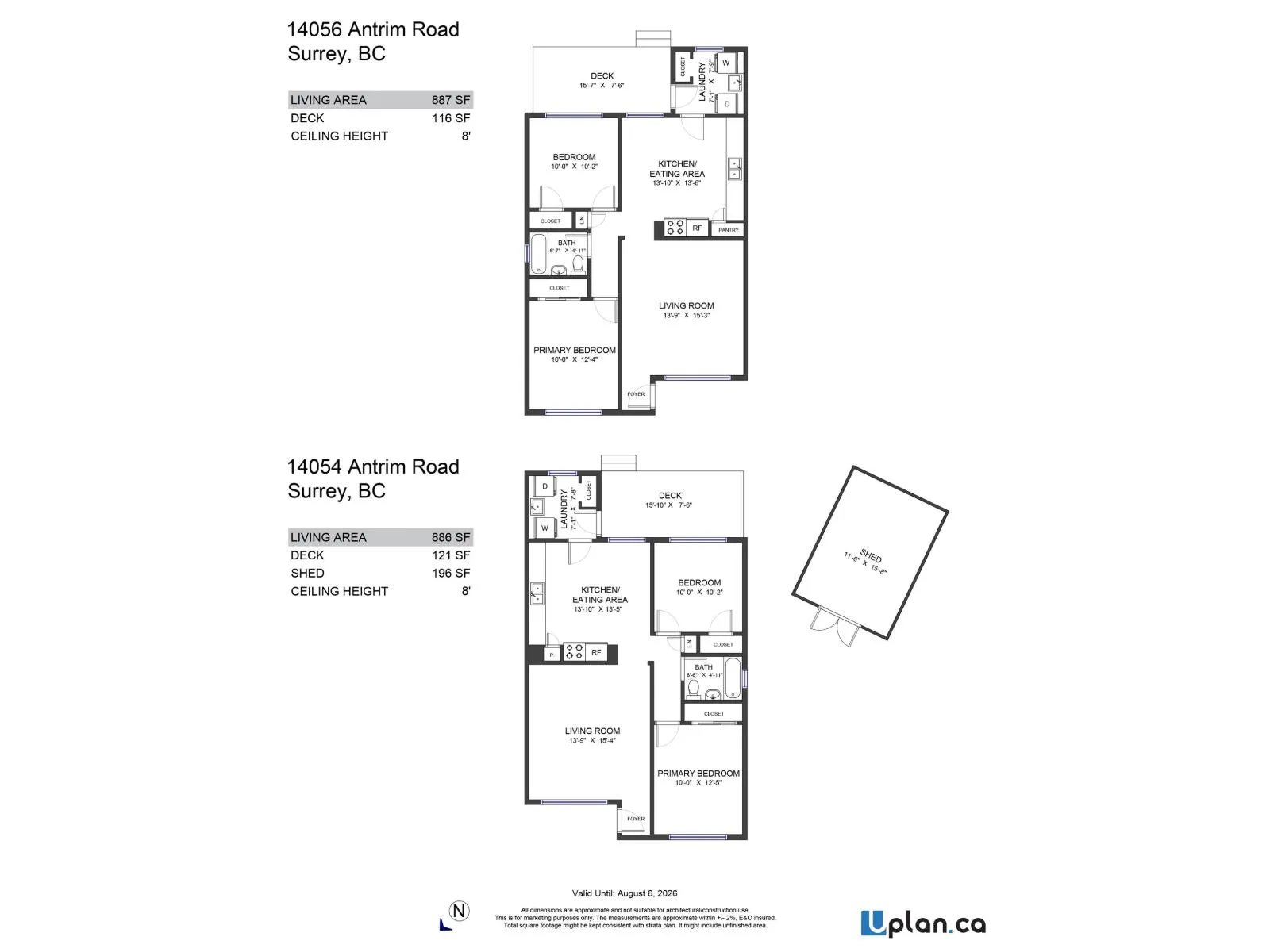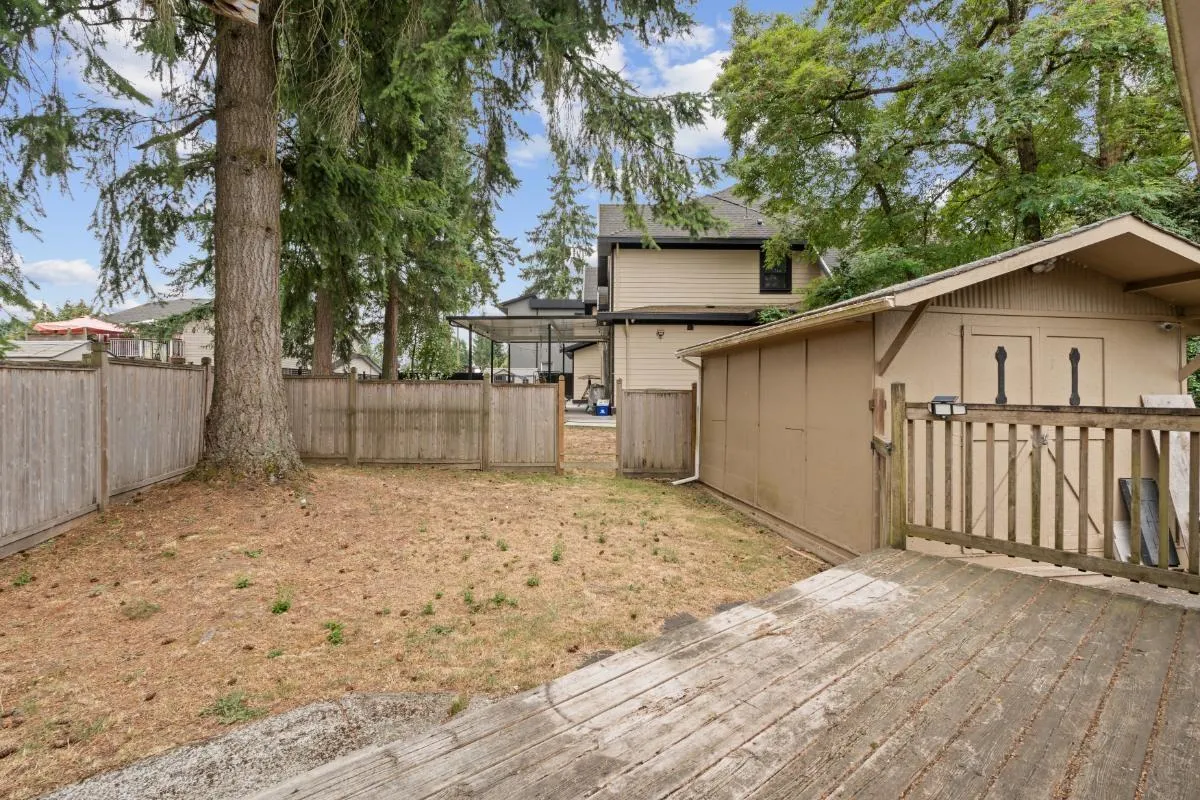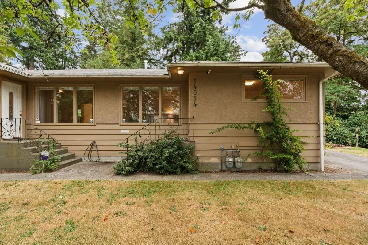 2 UNITS FOR SALE! 14054 and 14056 Antrim Rd! Side-by-side DUPLEX on a massive 12,000+ corner lot with lane access, in the R2 Quarter Acre Residential Zone - allowing the new owner to build up to 4 units on this lot. OR this is a unique opportunity to live in one side and rent out the other side or buy with family/friends and enjoy being neighbors. Both units are 2 bed, 1 bath, nearly 900 sq ft, each w/ insuite laundry, spacious kitchens, hardwood floors, fenced backyards, huge side yards. 70+ ft driveway provides plenty of parking plus 15'8" x 11'6" storage shed. Excellent location - walk to James Ardiel Elementary, quick access to Hwy 17, King George Blvd & Pattullo Bridge. The city has given permission to remove the two front yard trees. (id:27476)