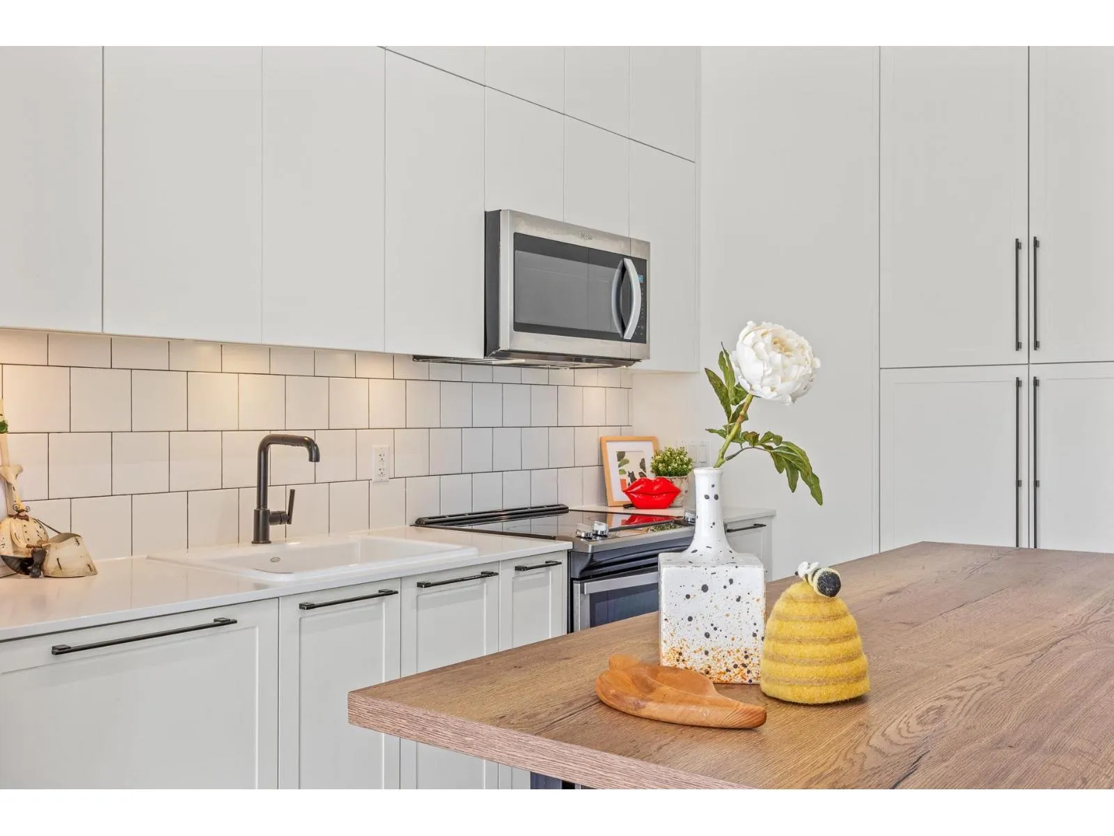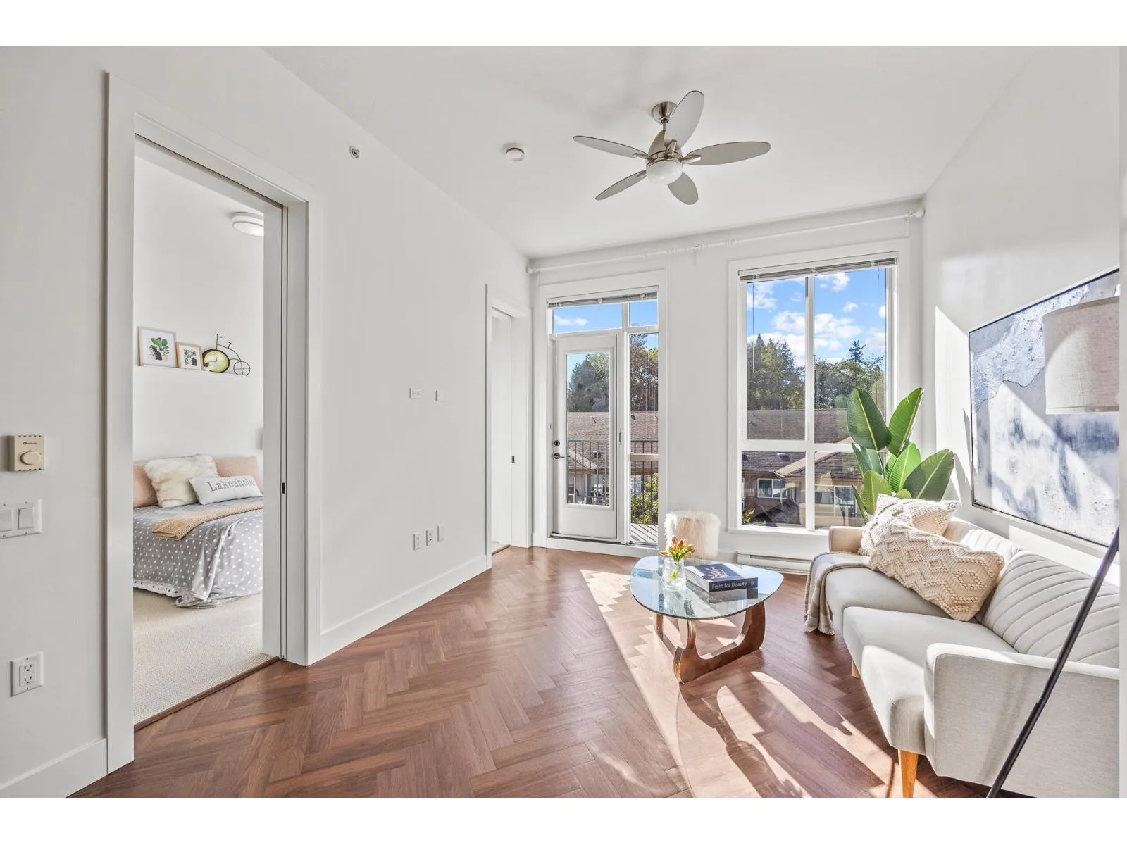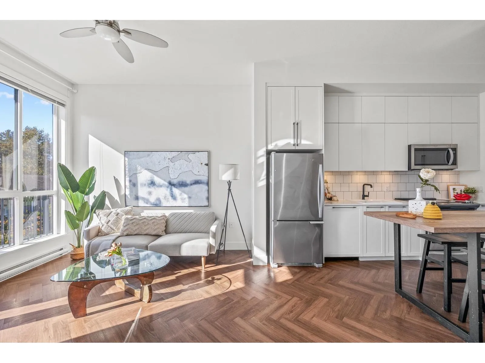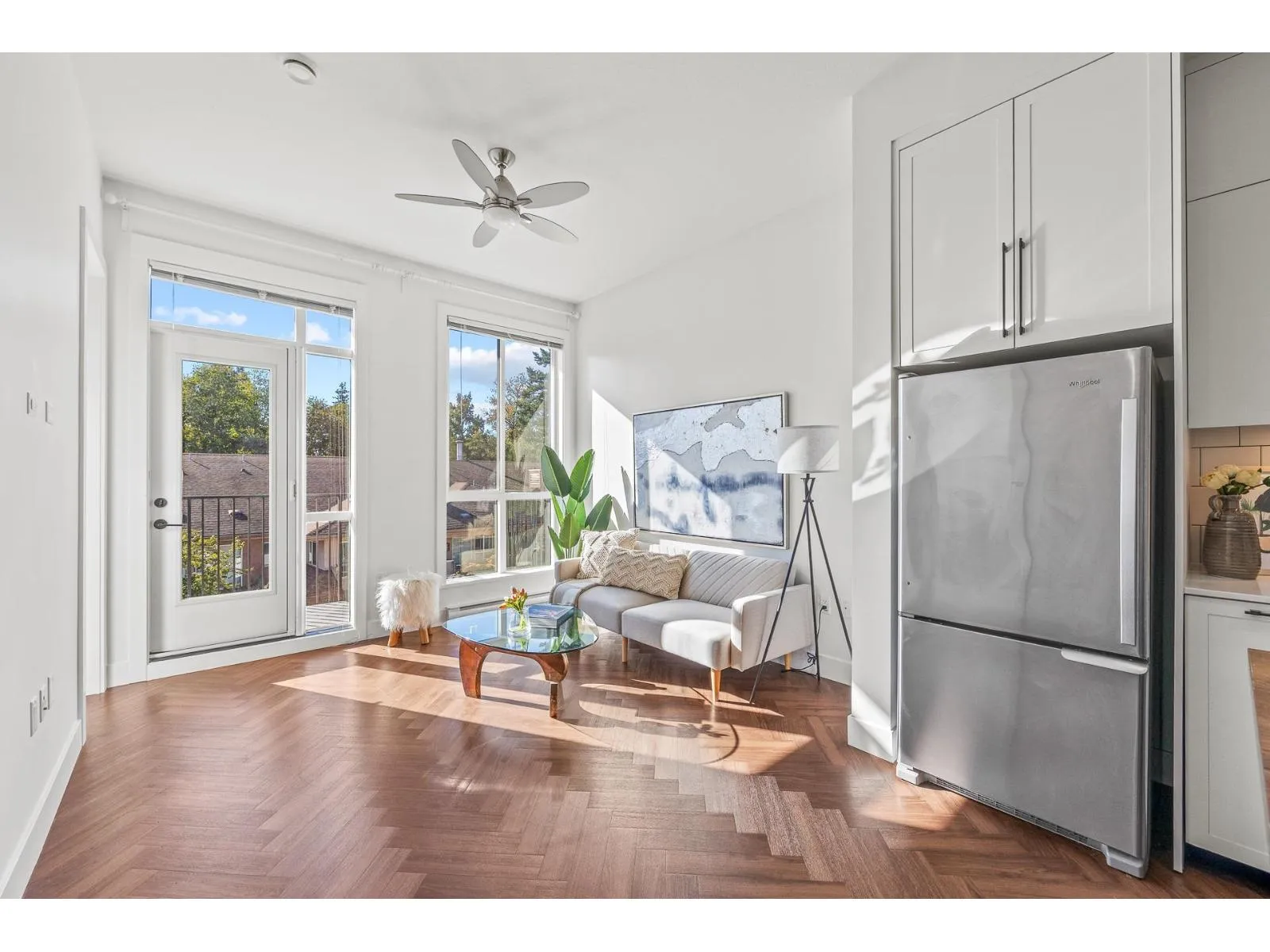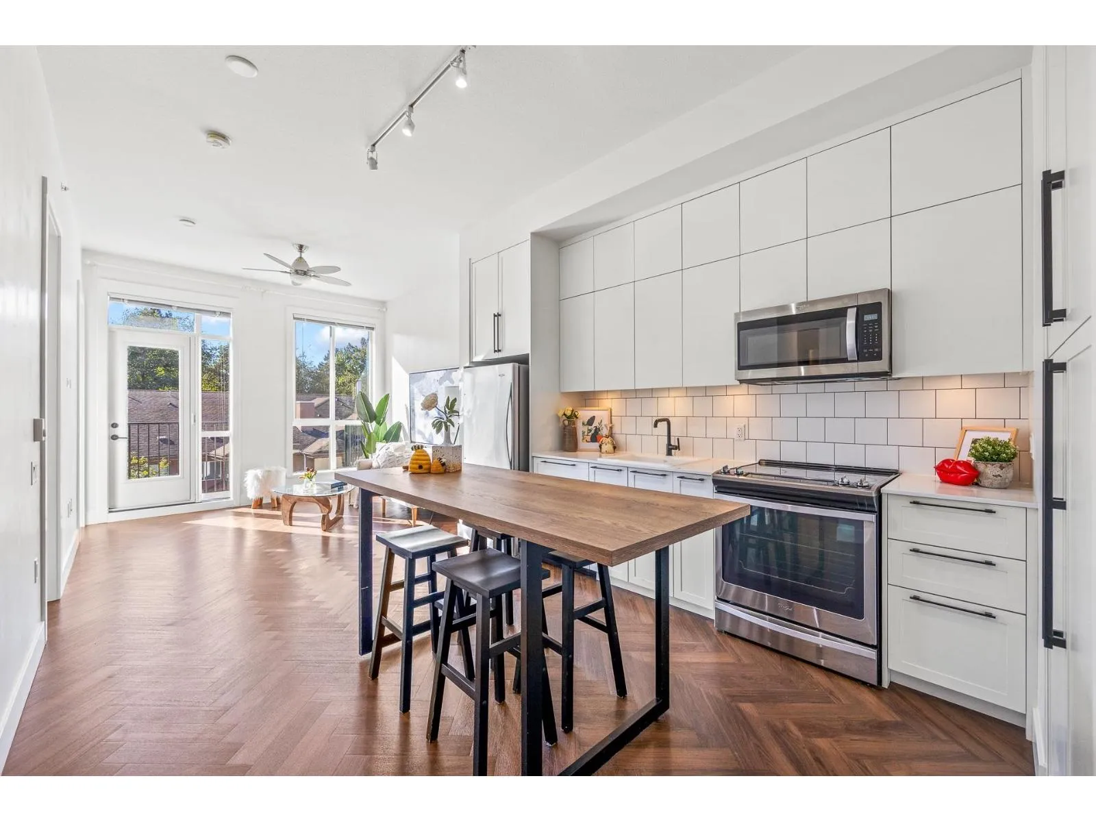 Built by renowned MOSAIC Homes in timeless Georgian Style, this bright 1bedroom +Den at Guildhouse combines classic elegance with modern comfort. Featuring 10-ft ceilings, South facing windows, herringbone flooring, upgraded stone countertops, SS appliances and a custom island, this home feels open and inviting. The versatile den is perfect for a home office or guest space. Very well maintained and ideally located steps from Guildford Mall, T&T, Rec Centre, Hwy 1. It also comes with a bonus storage on the same floor. Book your showings today! (id:27476)