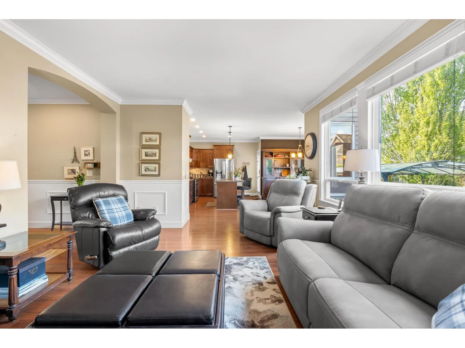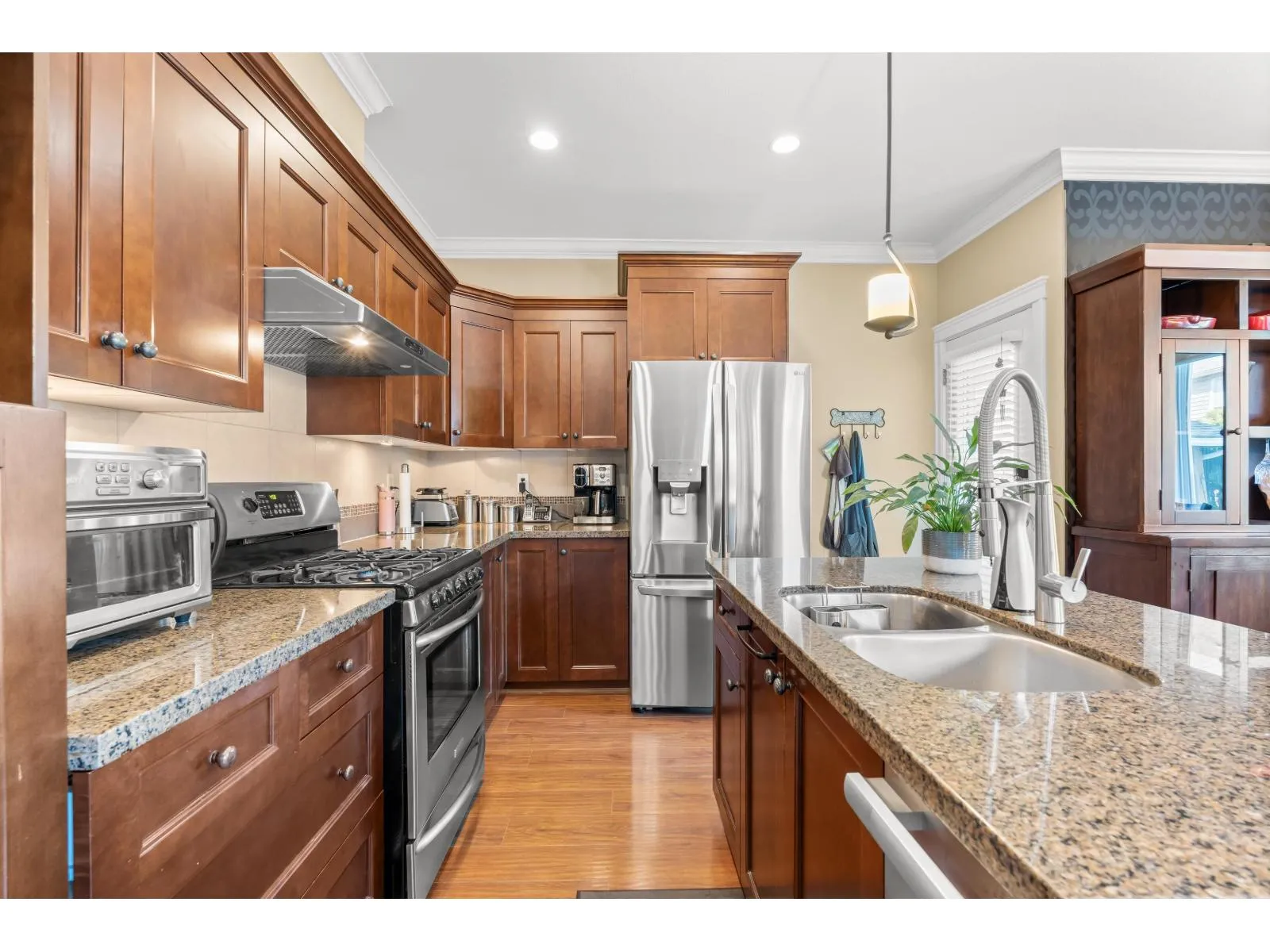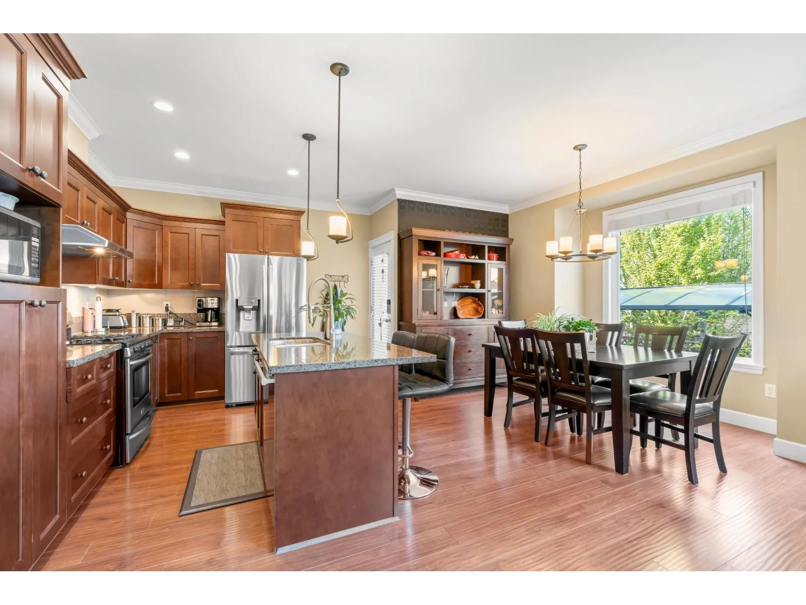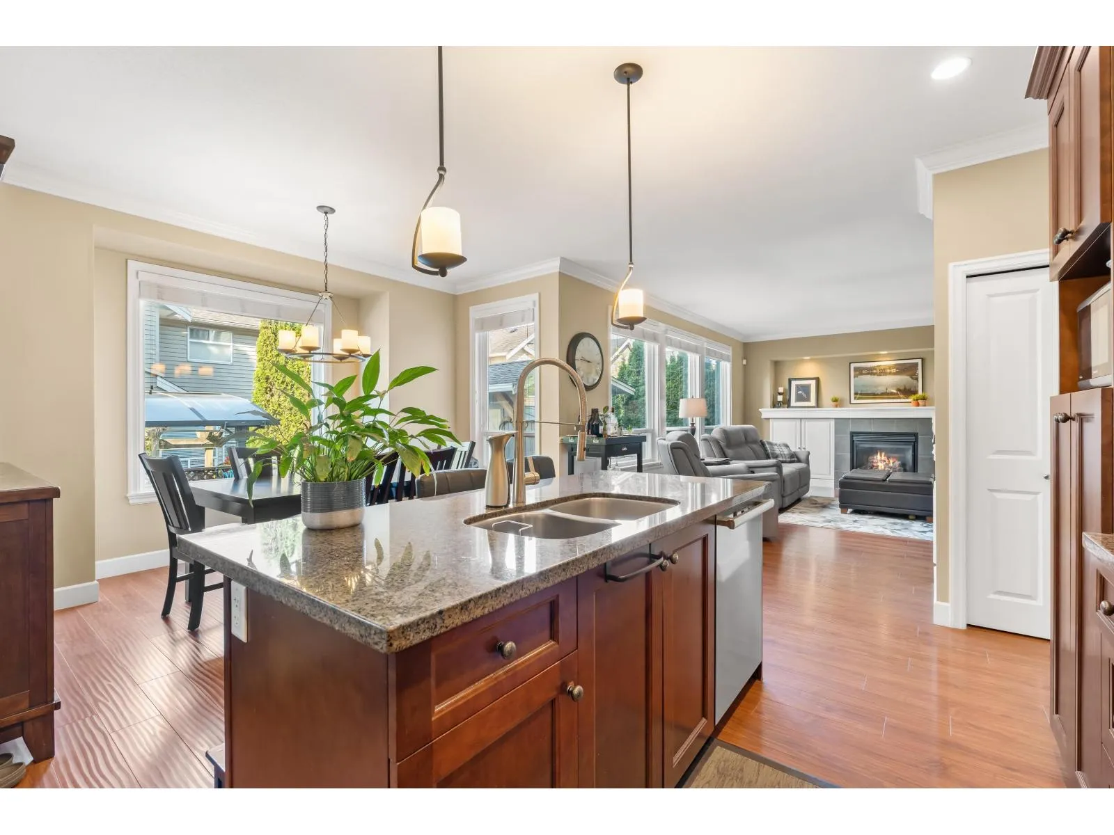 Stunning Home in Sought-After Provinceton, Cloverdale! Bright & spacious with an open-concept layout, this beautifully maintained home features Gourmet Kitchen with granite counters, large island, SS appliances and pantry. The family room offers a cozy gas fireplace & custom built-ins. Main floor highlights 9' ceilings, wainscoting, and laminate flooring. Upstairs boasts a luxurious primary suite with vaulted ceilings, walk-in closet, & spa-inspired ensuite, plus 3 additional bedrooms & a full bath. The fully finished basement with separate entrance includes a full kitchen, generous bedroom, full bath, large living area, and ample storage - perfect for in-laws or rental income. Bonus features: central vacuum, new fridge (2024) & upgraded 50-gallon hot water tank for Efficient Living! Don't miss this gem! Showings by appointment only. (id:27476)