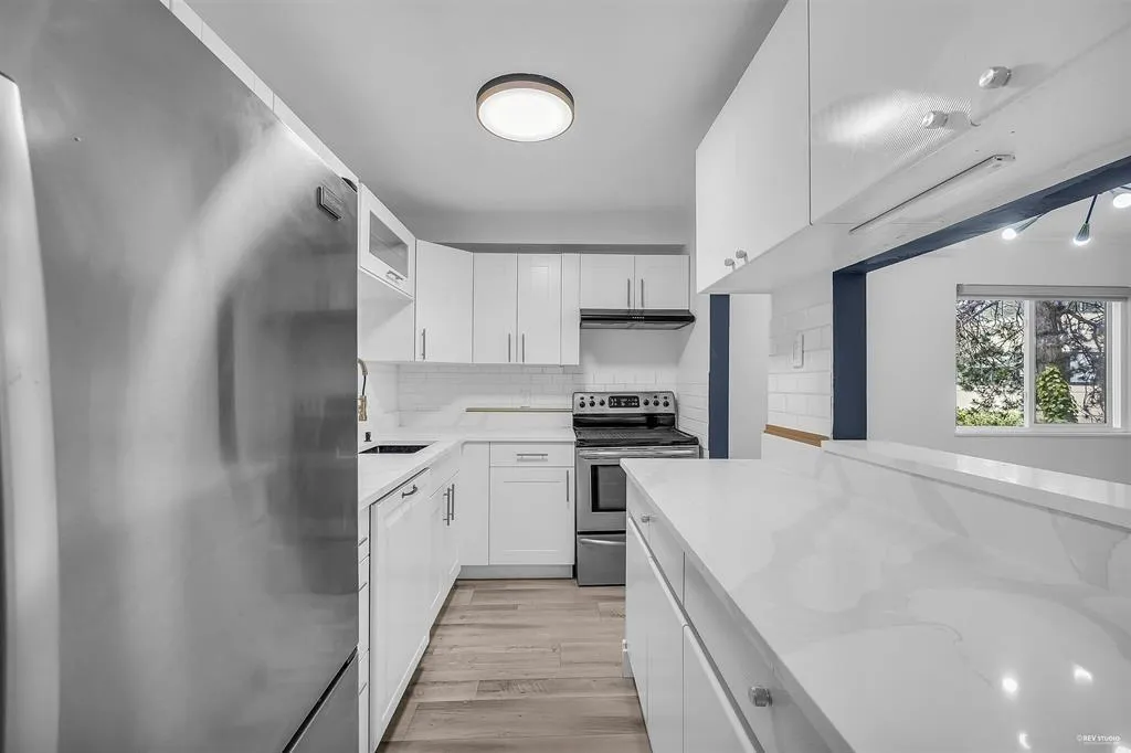 Step into this fully renovated 2 bed, 2 bath ground-floor corner unit offering modern finishes and unbeatable convenience. Upgrades include stainless steel appliances, brass fixtures, fresh paint, new flooring, and fully redesigned kitchen and bathrooms. Enjoy private entry via the nearby strata exit and relax on the spacious 236 sq.ft. patio. Located steps from restaurants, bars, White rock hospital, and top schools in the Semiahmoo Secondary catchment. Close to the waterfront for scenic strolls and recreation. An open public parking lot beside the building adds extra convenience. Photos are virtually staged. (id:27476)