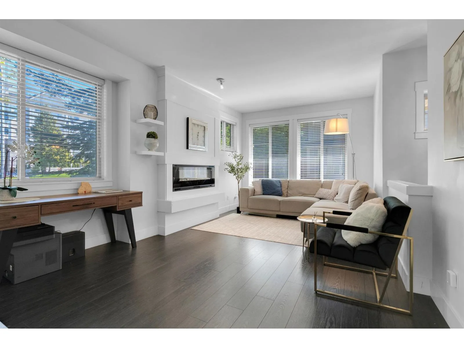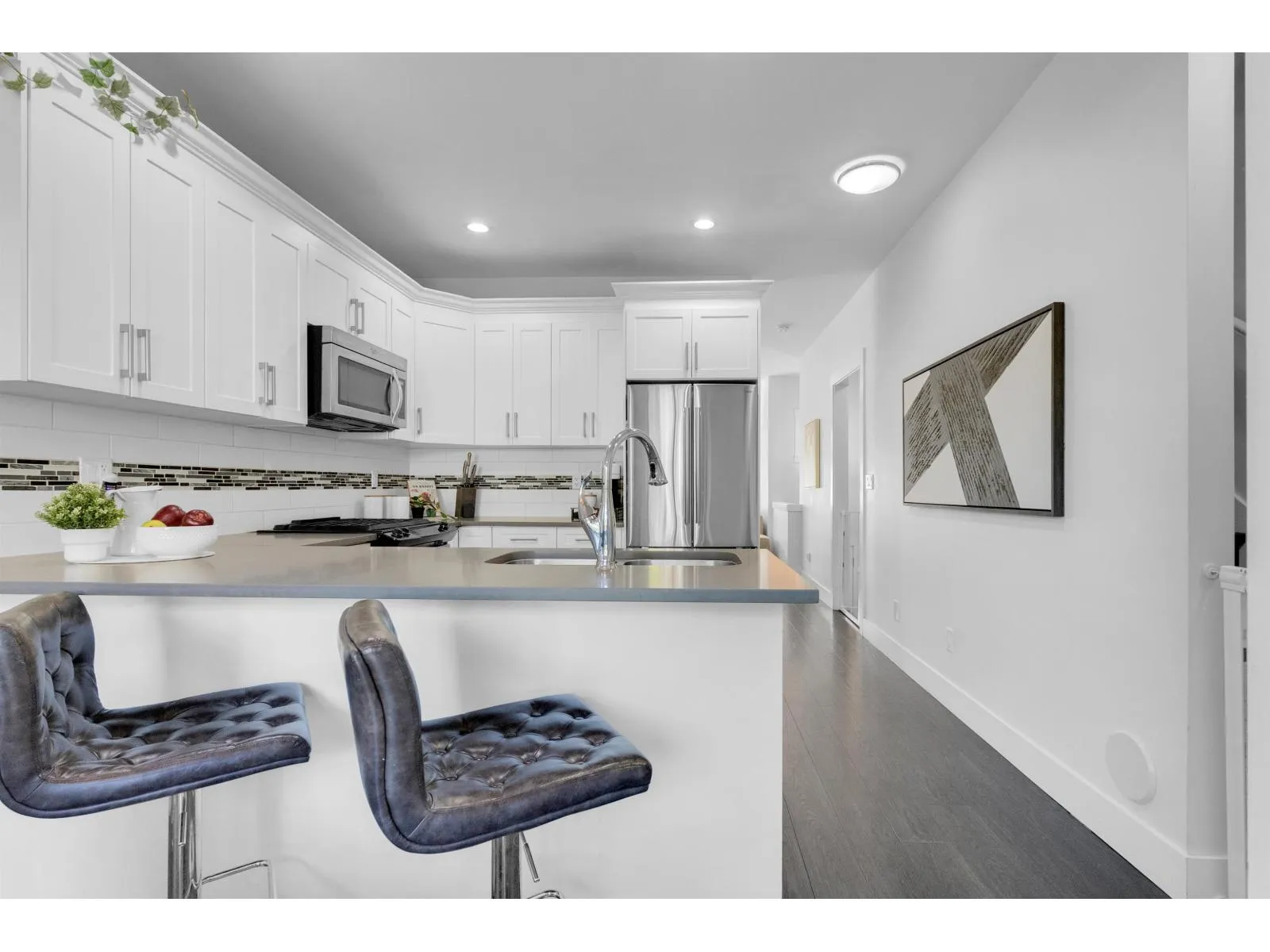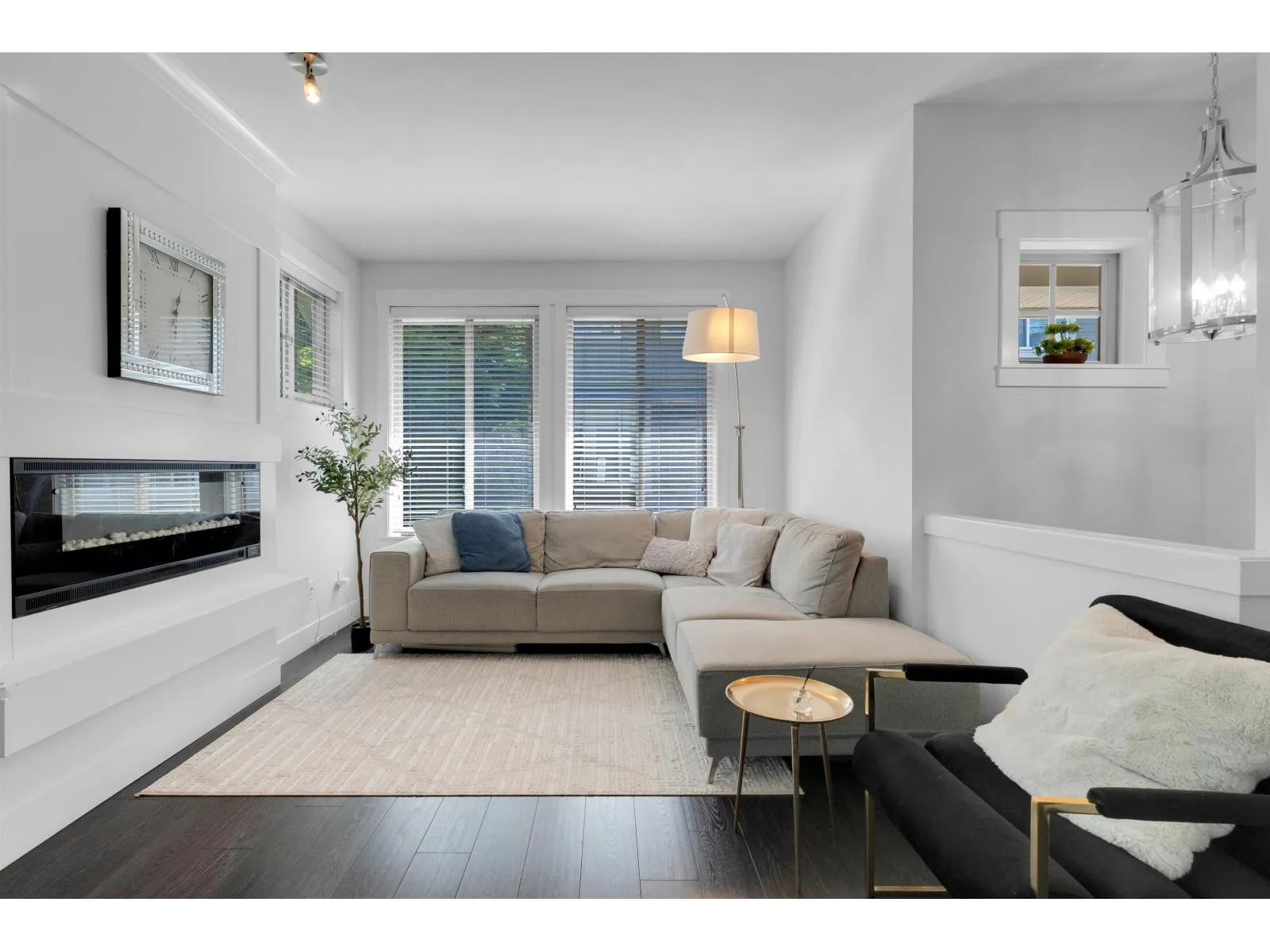 #1 RANKED SCHOOL IN SURREY! Welcome to this bright and stylish 3 bed 3 bath CORNER unit offering 1350 sqft of living space. The kitchen is a chef's dream, with quartz countertops, stainless steel appliances, and a gas range, while the expansive living and dining areas come with an electric fireplace and access to a balcony with natural gas BBQ hookups. Upstairs has a spacious primary bedroom with a 3-piece ensuite, two more bedrooms and another full bath. There is an option to add a 4th bed downstairs. Private backyard and a community playground-great for families. Garage fits 2 cars + extra room for storage. Ample visitor/street parking. Quick access to highways/transit. Minutes from shopping, schools, dining, recreation, trails & Crescent Beach! (id:27476)