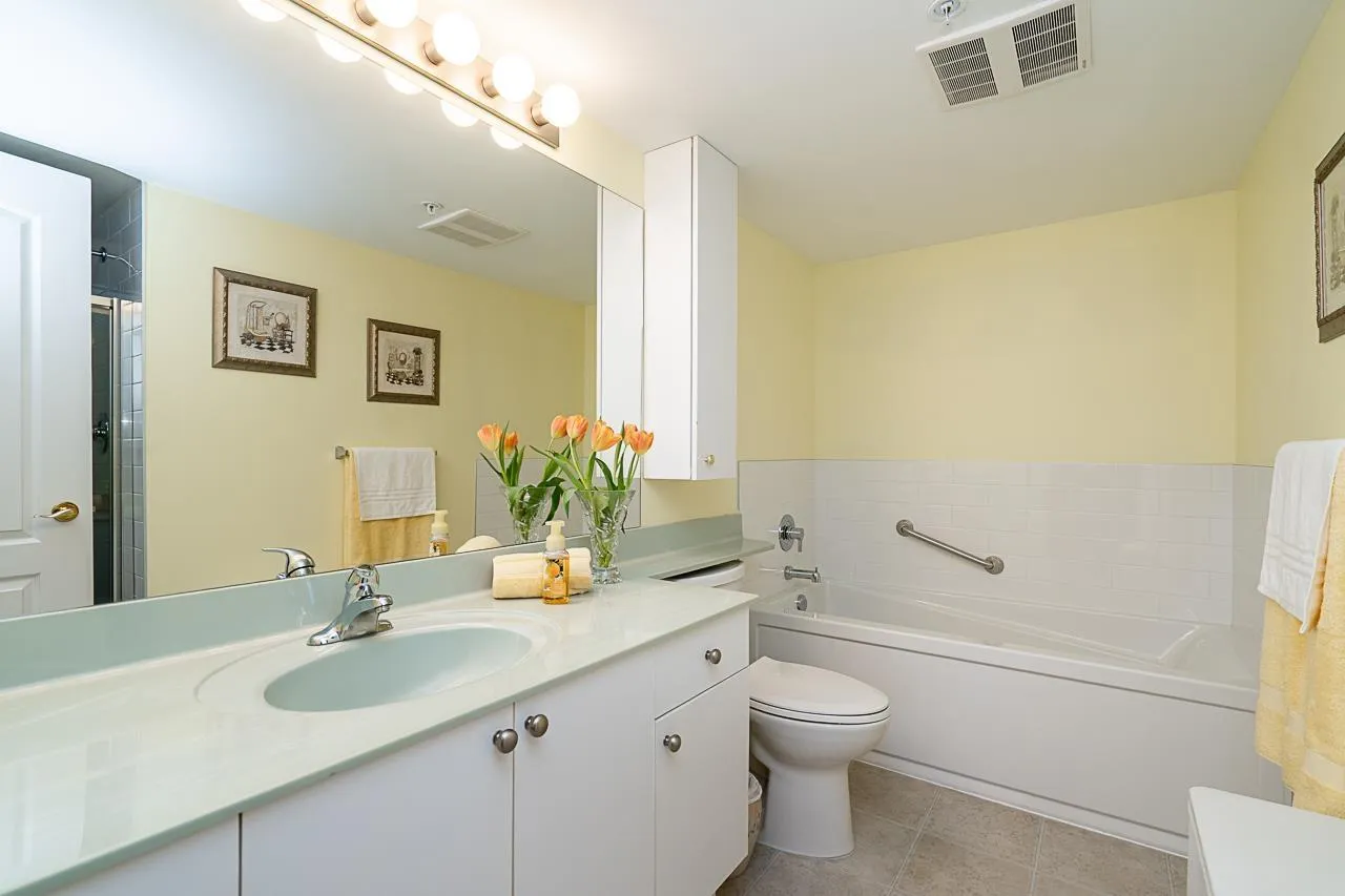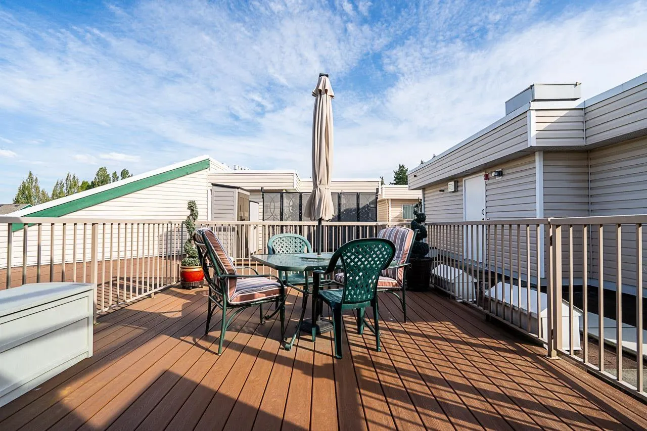 This beautiful, updated top floor home with soaring vaulted ceilings, offers 1525 sqft of well laid out living area including a spacious 2nd-floor loft (listed as 3rd bedrm) perfect for guests, TV room or home office. 2 full bathrooms. The large kitchen features new countertops, backsplash & updated appliances. Other updates incl new laminate floors & carpets, blinds, bathtubs, washer & dryer. Step out onto your big balcony off the living room, or head upstairs to your huge rooftop patio - ideal for entertaining, gardening, or relaxing. The home includes a gas fireplace, 2 parking spots & storage locker. Amenities incl a clubhouse, pool, gym, & tennis courts all within this fully updated complex. Fantastic neighborhood, a quiet street, & minutes from parks, schools, shopping, and transit! (id:27476)