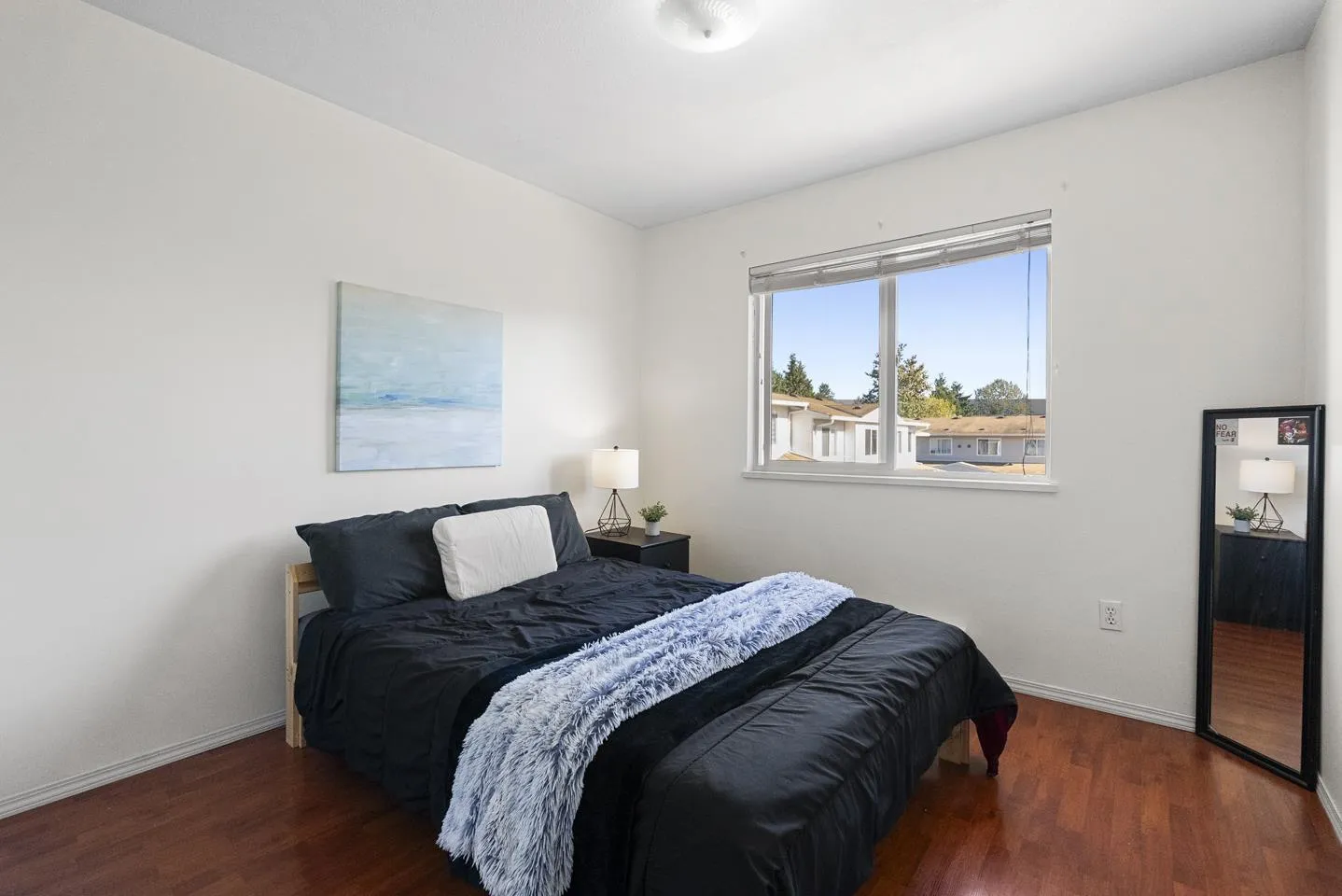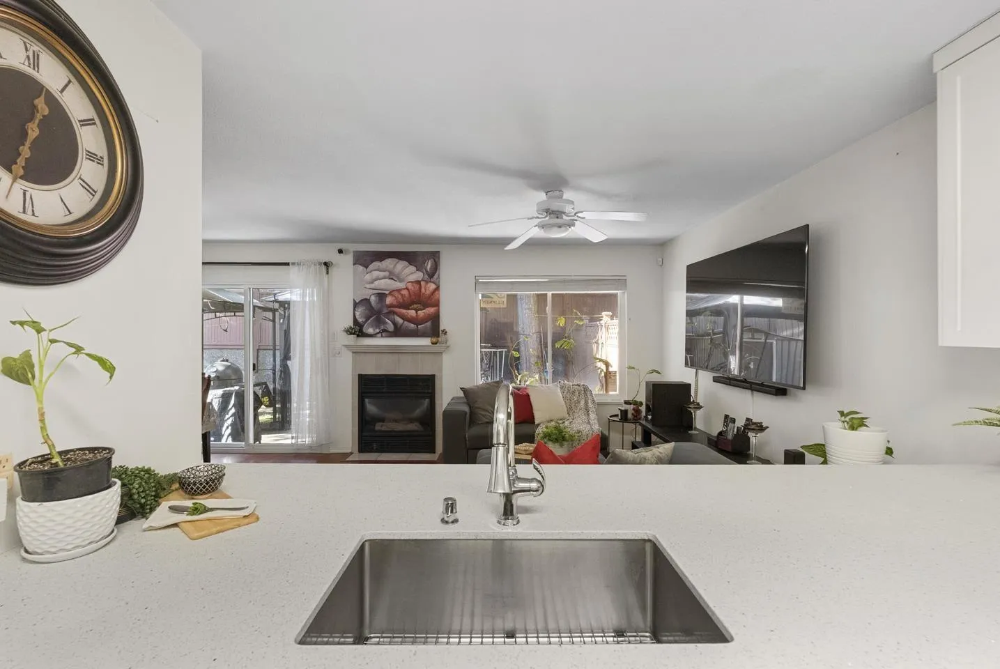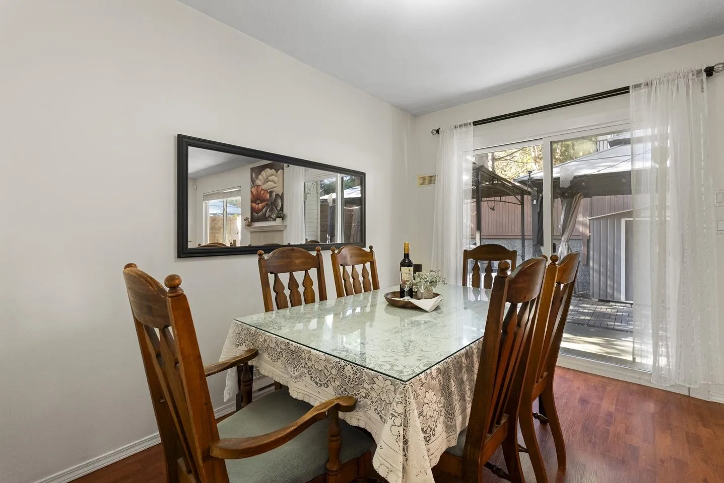This 3BR/2BA end-unit townhouse in Bishop Mews offers a smart, family-sized layout w/ all the lifestyle perks: a fenced backyard that opens to green space, room to entertain, & privacy for play or pets. Upstairs: a spacious primary BR w/ cheater ensuite + 2 large BRs. Laminate flooring throughout, tons of natural light, & parking for 2 under cover + visitor spot nearby. Walk to Guildford Mall, T&T, schools, library, rec centre & transit. Well-run, family-oriented complex. Pets welcome w/ restrictions. Priced to move, don't miss this. (id:27476)