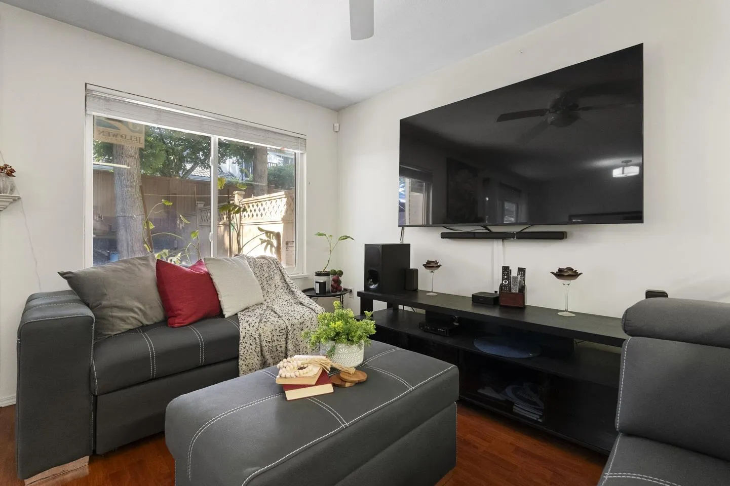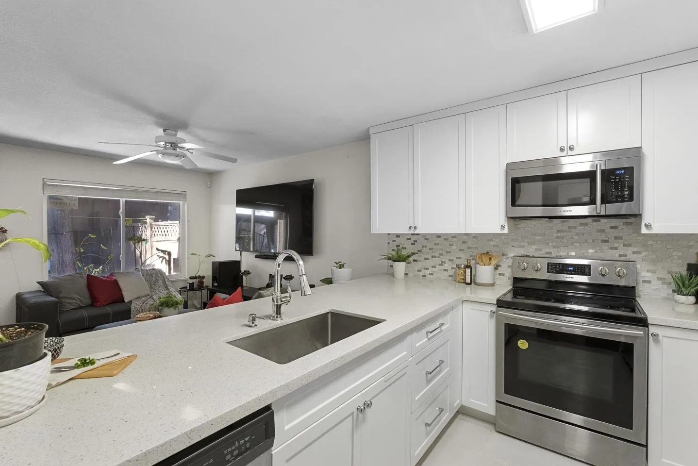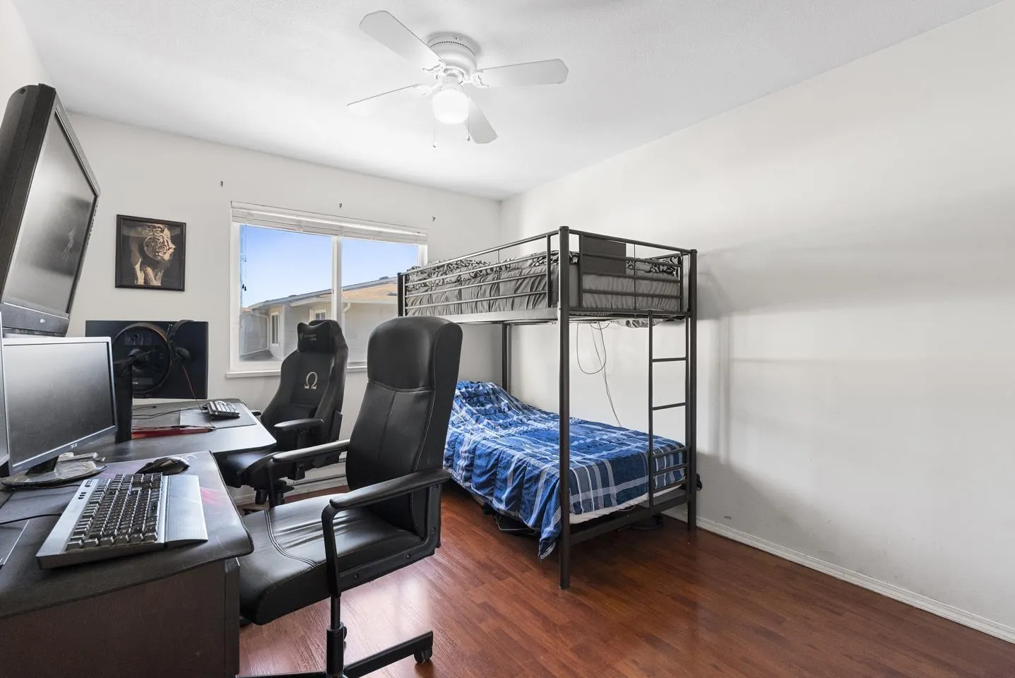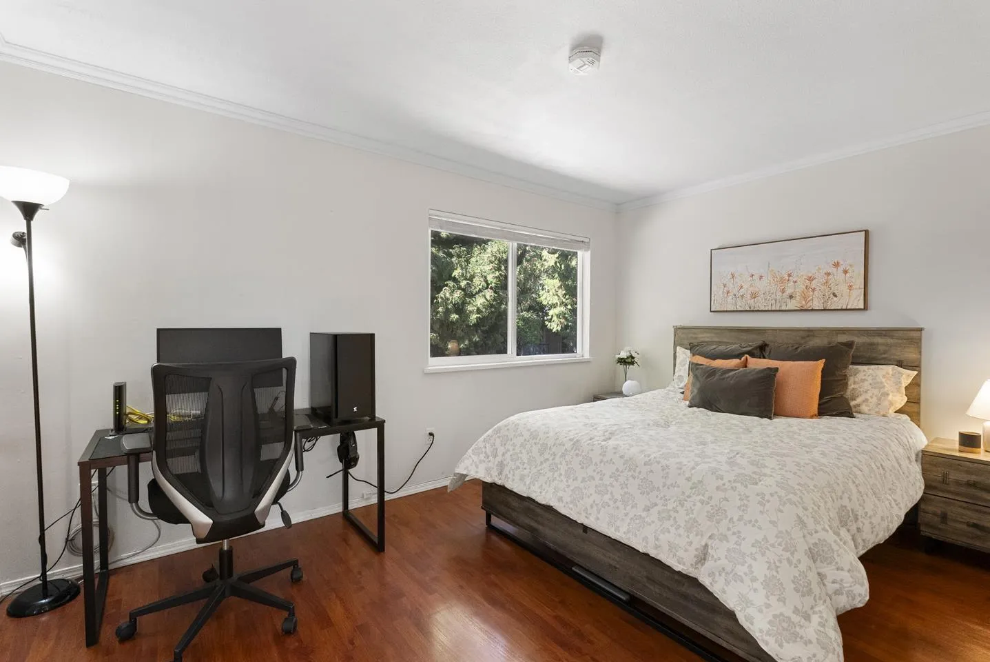 This 3BR/2BA end-unit townhouse in Bishop Mews offers a smart, family-sized layout w/ all the lifestyle perks: a fenced backyard that opens to green space, room to entertain, & privacy for play or pets. Upstairs: a spacious primary BR w/ cheater ensuite + 2 large BRs. Laminate flooring throughout, tons of natural light, & parking for 2 under cover + visitor spot nearby. Walk to Guildford Mall, T&T, schools, library, rec centre & transit. Well-run, family-oriented complex. Pets welcome w/ restrictions. Priced to move, don't miss this. (id:27476)