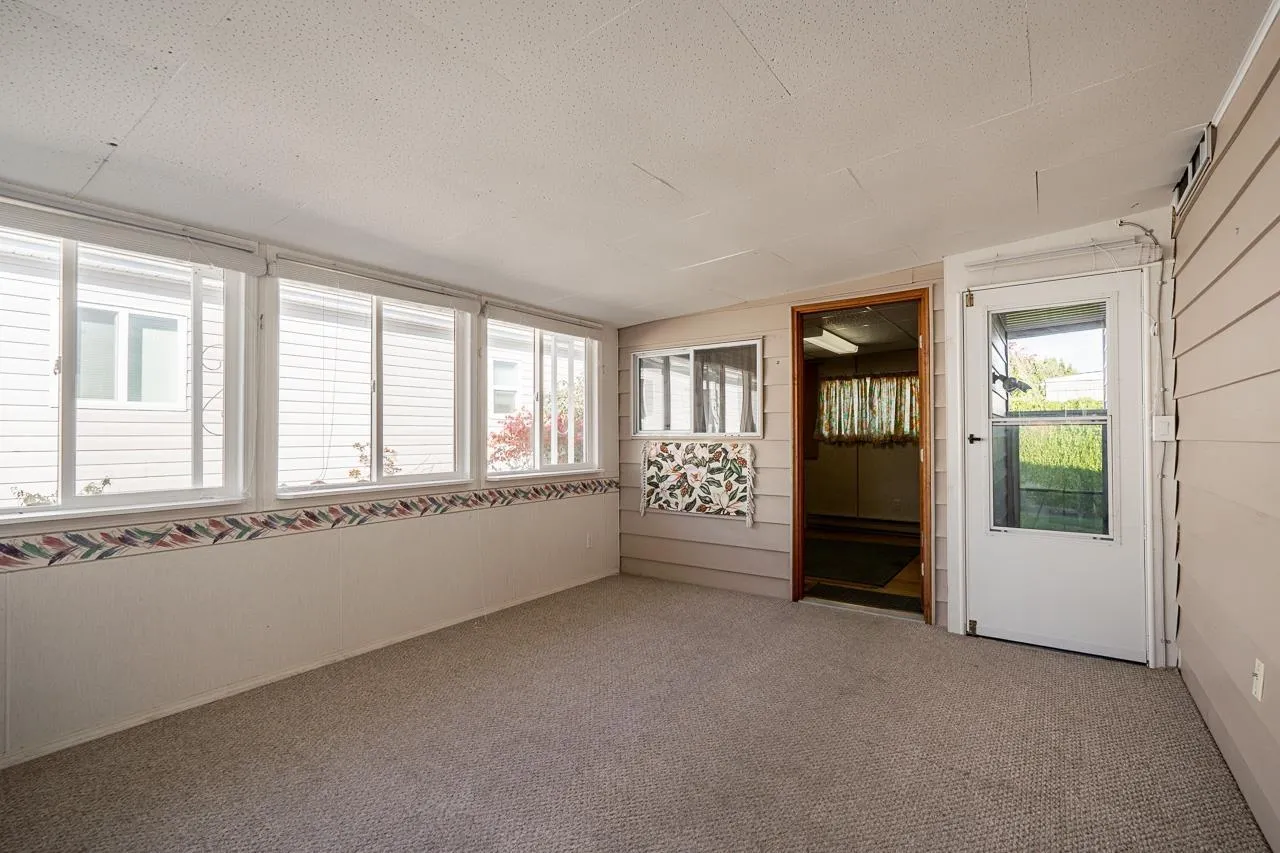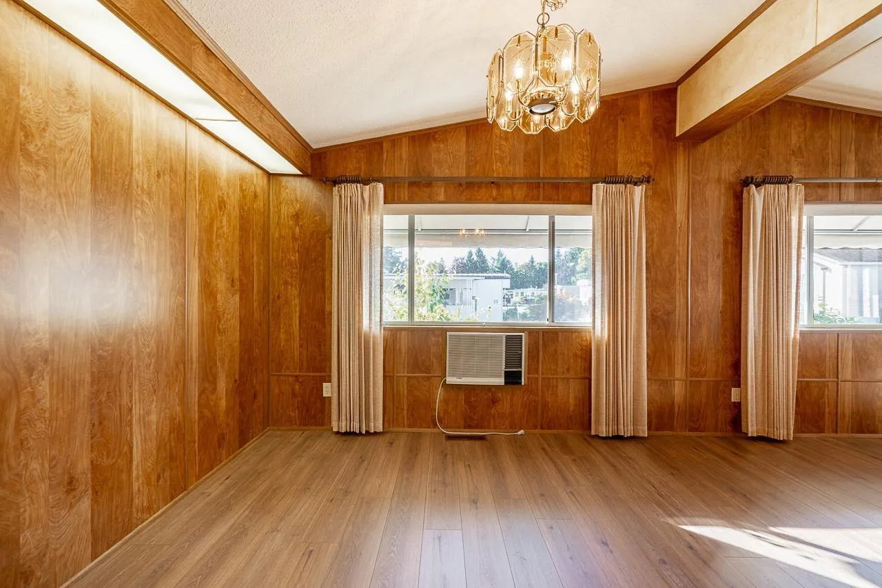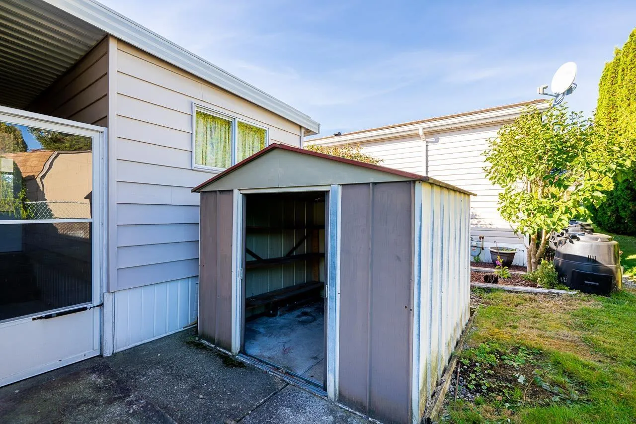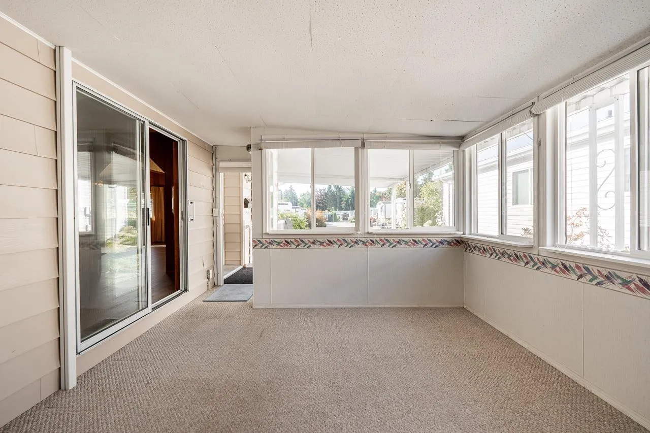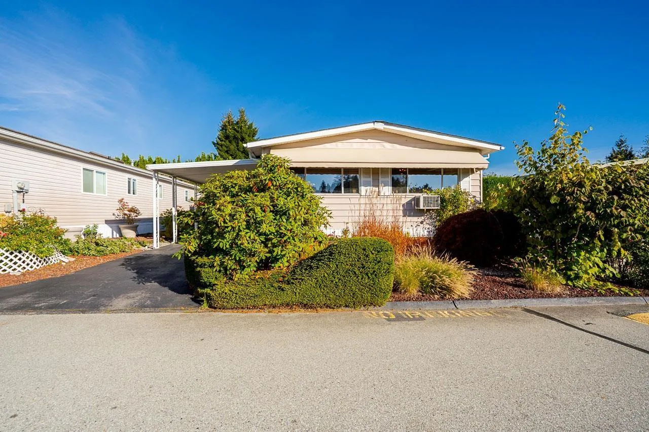 SEA RIDGE BAYS! Lovely double wide manufactured home on its own land. This home offers two bedrooms, two bathrooms and den/family room, plus addition of solarium and storage room. Large open plan living and dining room with vaulted ceilings and gas fire insert. Bright kitchen with skylights and greenhouse window, lots of cupboards, large counters, breakfast nook, pantry and storage. Primary bedroom with generous ensuite. Beautiful park setting. Age 55+. Council Approval Required Central location at King Georgie Corridor, close to shopping districts & White Rock Beach. (Please note some rooms have been virtually staged). (id:27476)
