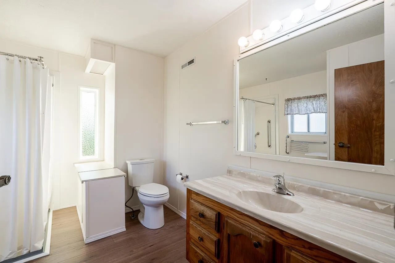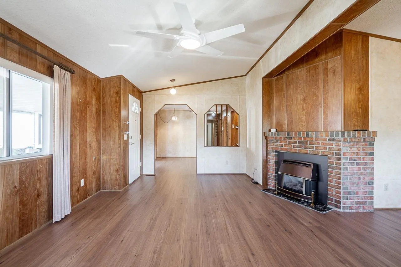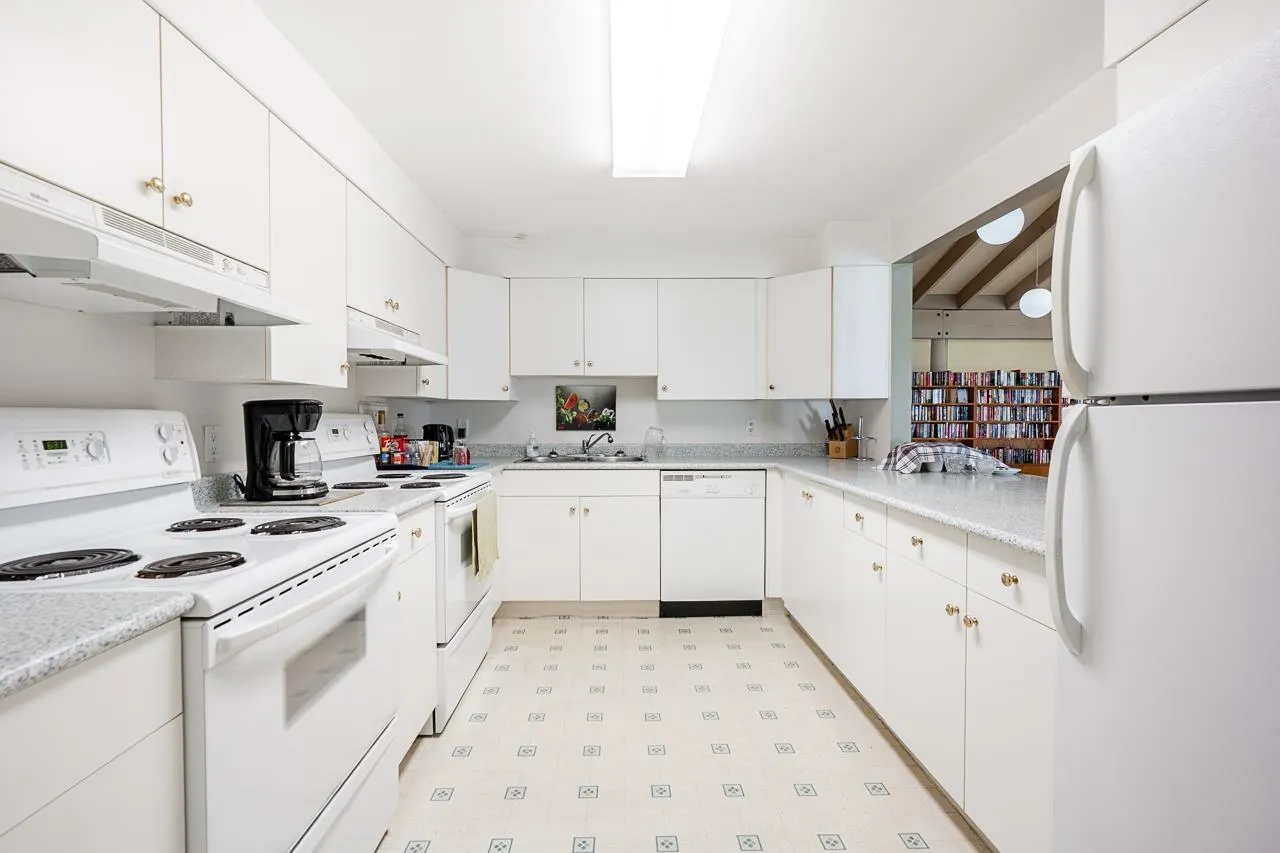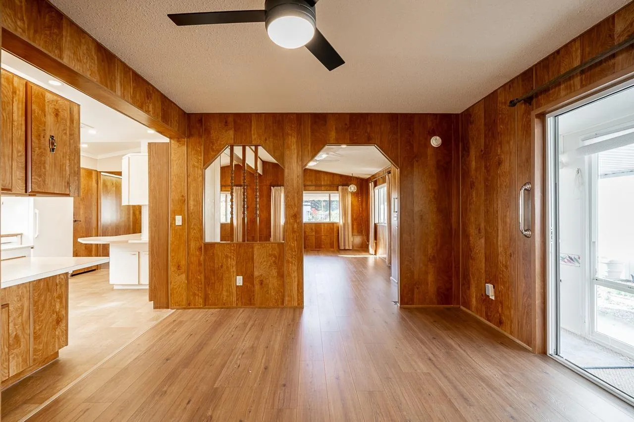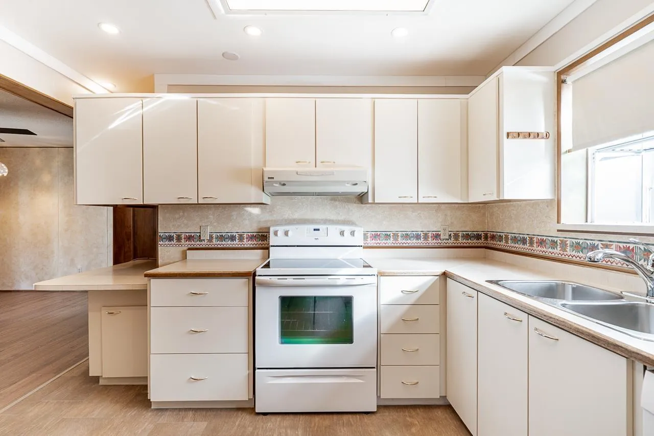 SEA RIDGE BAYS! Lovely double wide manufactured home on its own land. This home offers two bedrooms, two bathrooms and den/family room, plus addition of solarium and storage room. Large open plan living and dining room with vaulted ceilings and gas fire insert. Bright kitchen with skylights and greenhouse window, lots of cupboards, large counters, breakfast nook, pantry and storage. Primary bedroom with generous ensuite. Beautiful park setting. Age 55+. Council Approval Required Central location at King Georgie Corridor, close to shopping districts & White Rock Beach. (Please note some rooms have been virtually staged). (id:27476)
