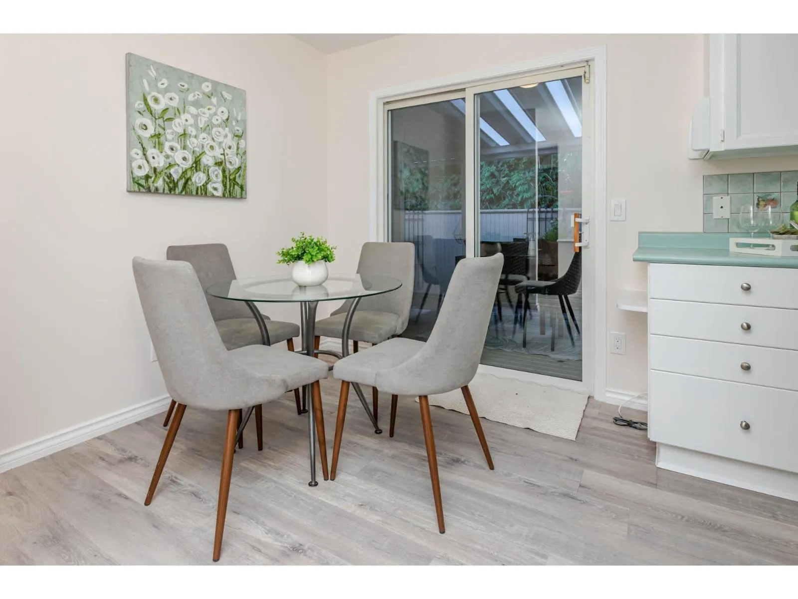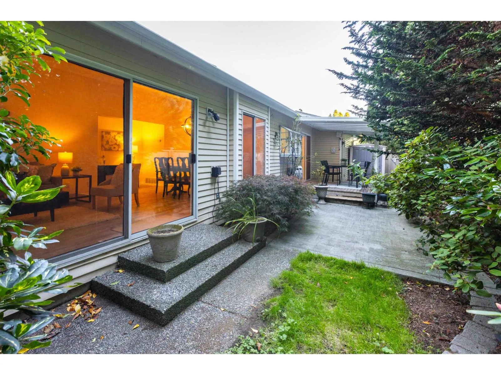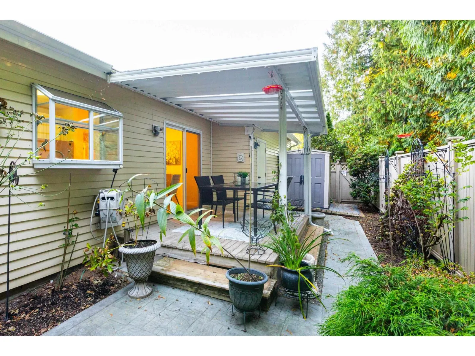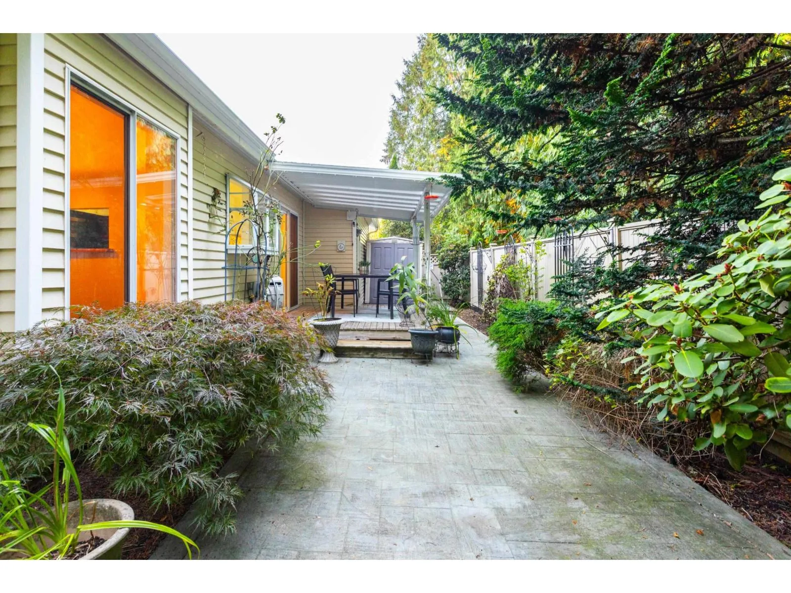 Gorgeous, detached rancher in desirable 55+ Gateway Gardens. Prime location backing & siding onto Carlson Creek greenbelt for ultimate privacy! Extensively updated, this 2 bedroom, 2 bath home boasts a large living room with wide plank vinyl flooring, gas fireplace, vaulted ceiling, glass sliding door access to side patio, and adjacent dining area. Kitchen with plenty of counter and storage space, eating area with access to covered deck, fenced yard with mature landscaping, & shed. Generous sized primary bedroom with double closets & 4 pc ensuite, 2nd bedroom, 3 pc main bath, & laundry. Garage & crawlspace storage! Great complex with clubhouse, guest suite, & plenty of visitor parking. Low strata fee of only $186.30/mth. One small pet allowed. (id:27476)