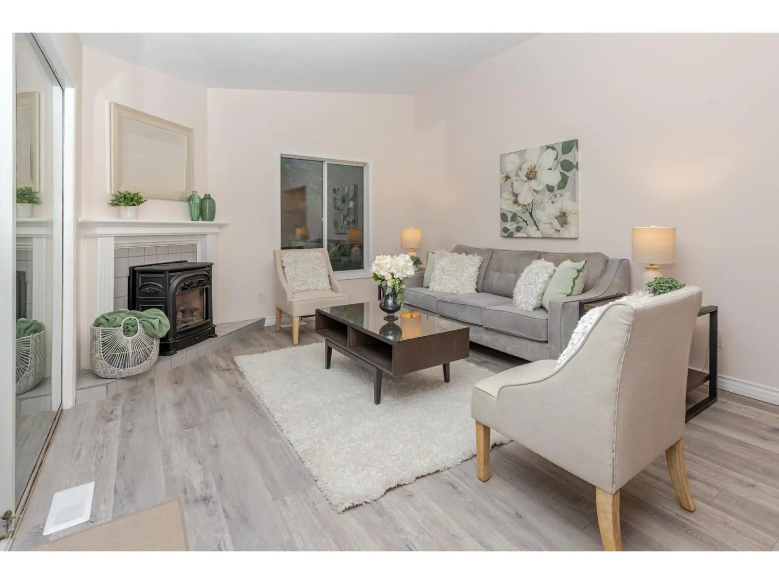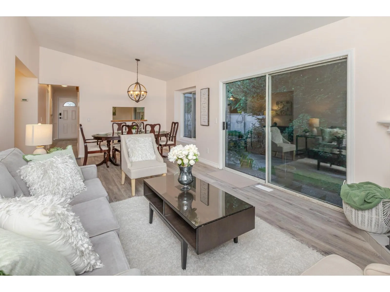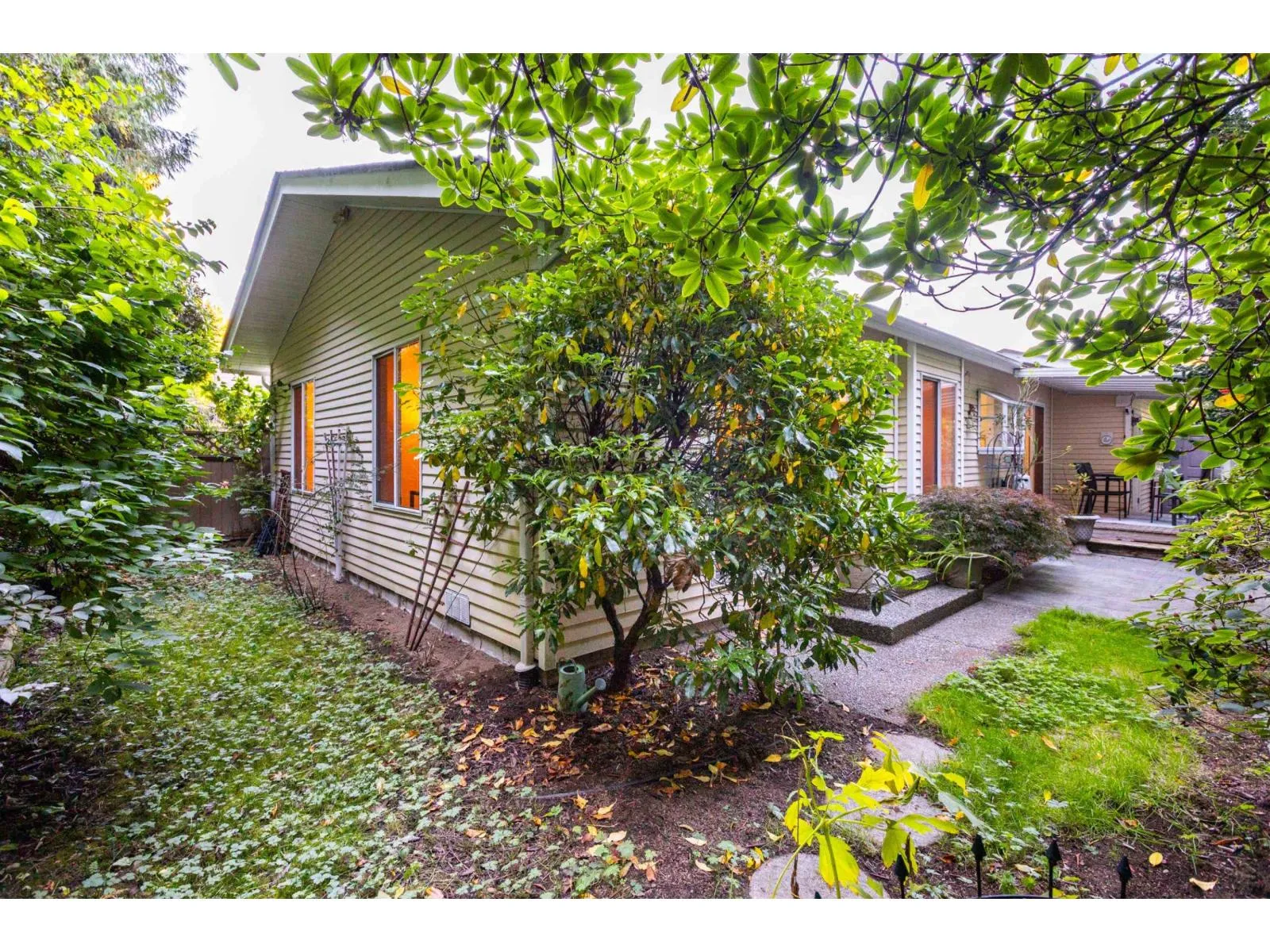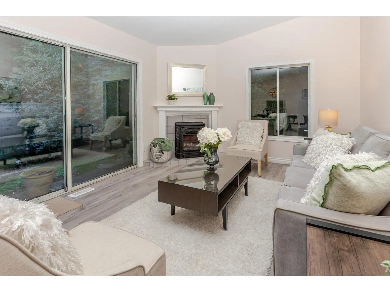 Gorgeous, detached rancher in desirable 55+ Gateway Gardens. Prime location backing & siding onto Carlson Creek greenbelt for ultimate privacy! Extensively updated, this 2 bedroom, 2 bath home boasts a large living room with wide plank vinyl flooring, gas fireplace, vaulted ceiling, glass sliding door access to side patio, and adjacent dining area. Kitchen with plenty of counter and storage space, eating area with access to covered deck, fenced yard with mature landscaping, & shed. Generous sized primary bedroom with double closets & 4 pc ensuite, 2nd bedroom, 3 pc main bath, & laundry. Garage & crawlspace storage! Great complex with clubhouse, guest suite, & plenty of visitor parking. Low strata fee of only $186.30/mth. One small pet allowed. (id:27476)