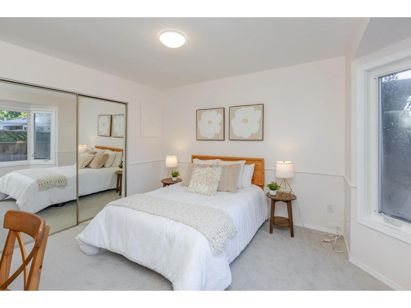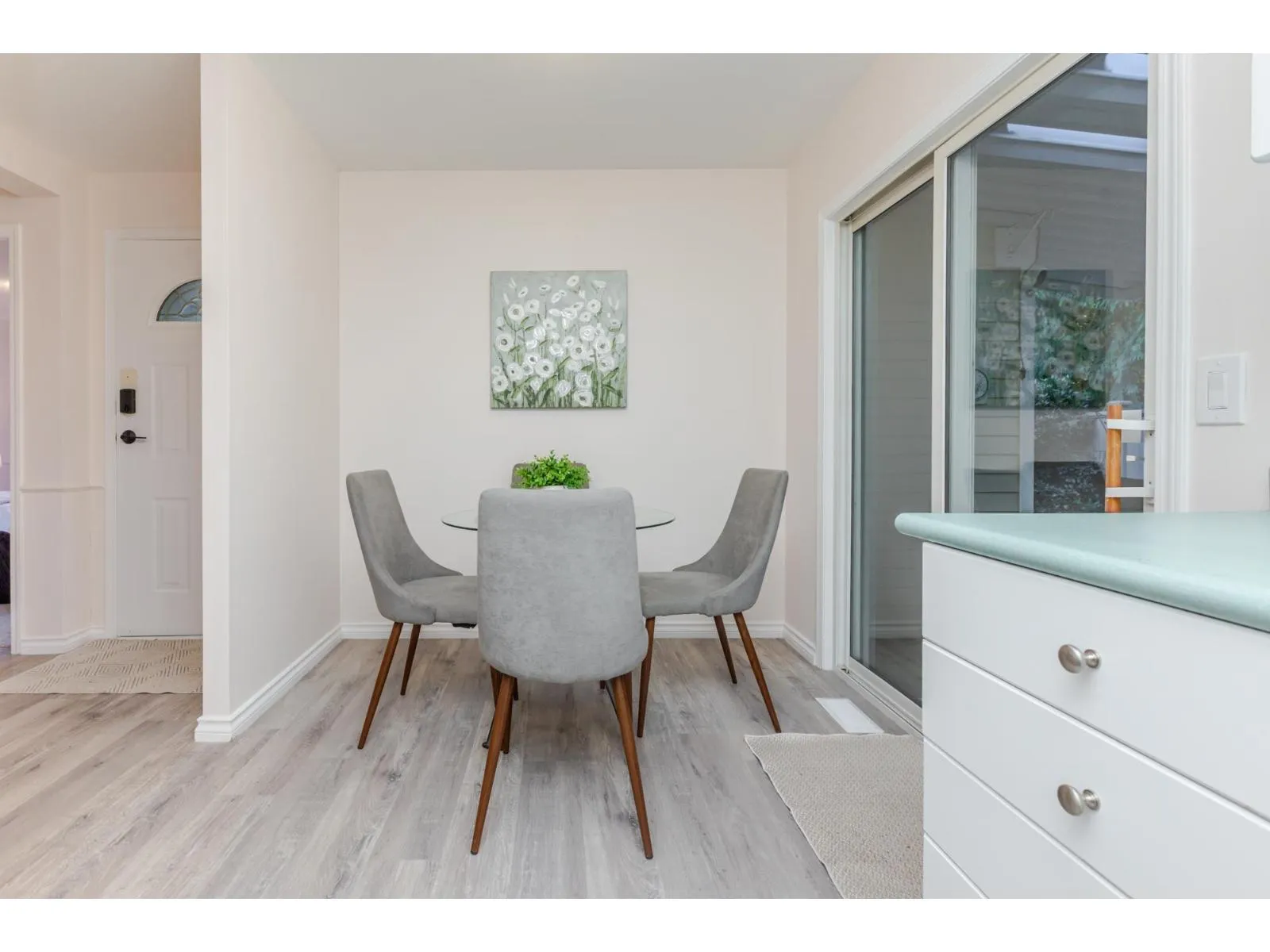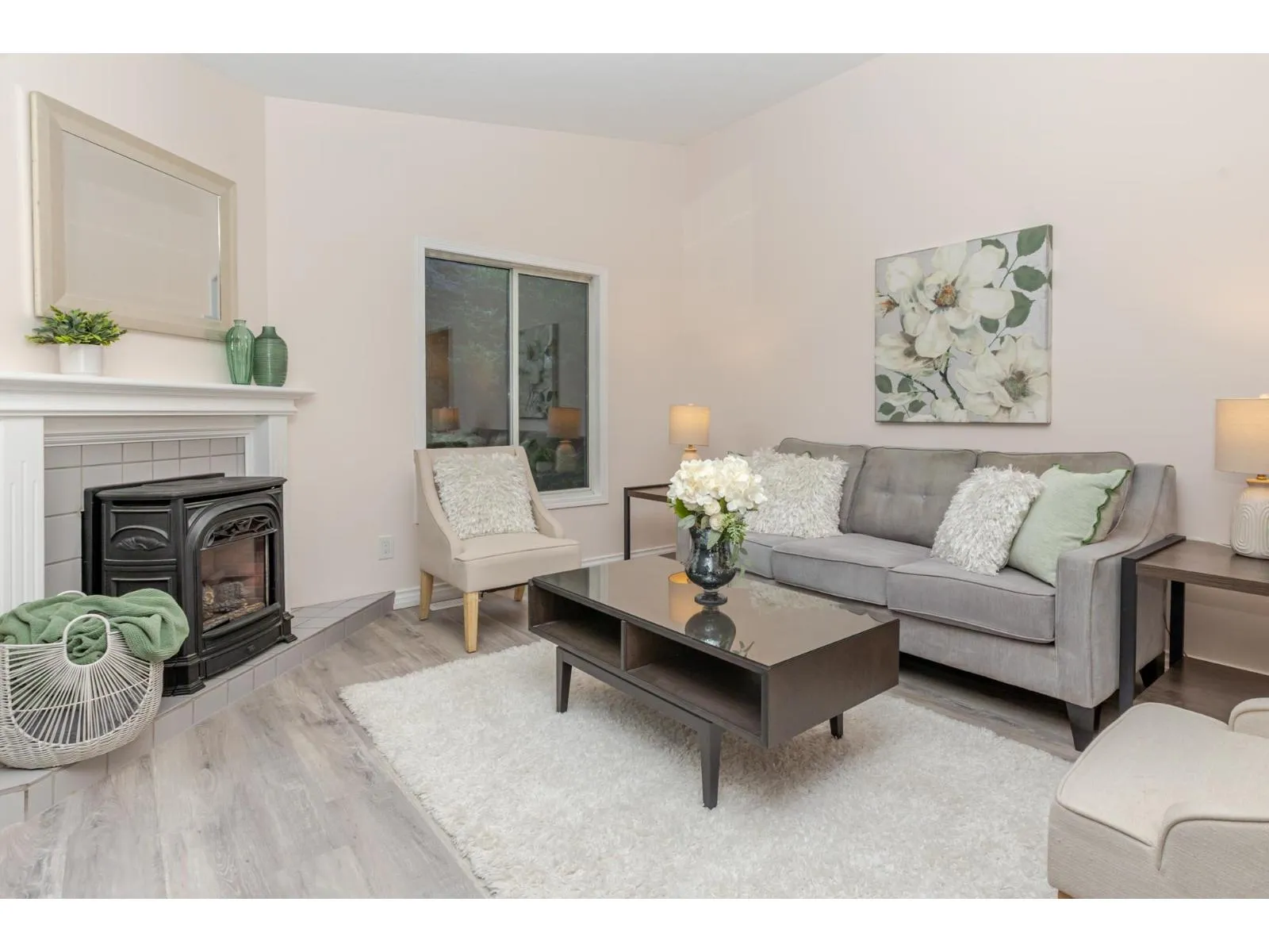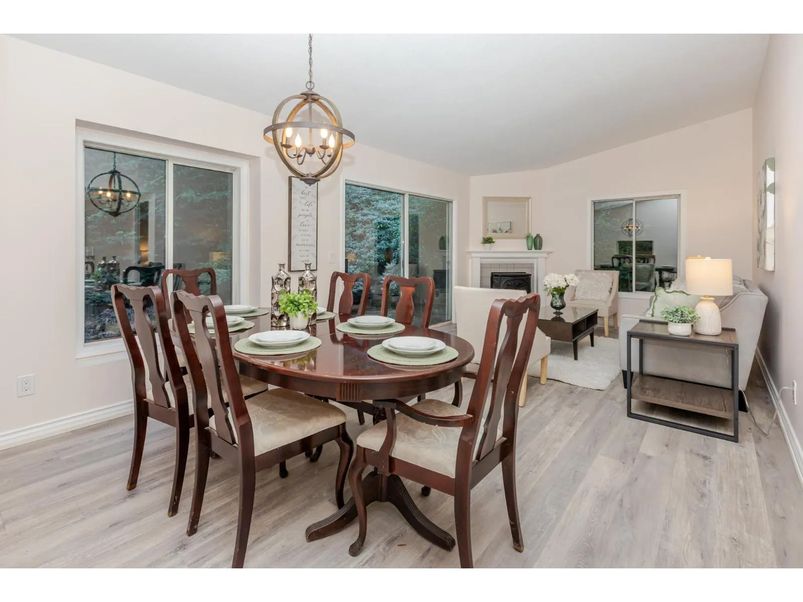 Gorgeous, detached rancher in desirable 55+ Gateway Gardens. Prime location backing & siding onto Carlson Creek greenbelt for ultimate privacy! Extensively updated, this 2 bedroom, 2 bath home boasts a large living room with wide plank vinyl flooring, gas fireplace, vaulted ceiling, glass sliding door access to side patio, and adjacent dining area. Kitchen with plenty of counter and storage space, eating area with access to covered deck, fenced yard with mature landscaping, & shed. Generous sized primary bedroom with double closets & 4 pc ensuite, 2nd bedroom, 3 pc main bath, & laundry. Garage & crawlspace storage! Great complex with clubhouse, guest suite, & plenty of visitor parking. Low strata fee of only $186.30/mth. One small pet allowed. (id:27476)