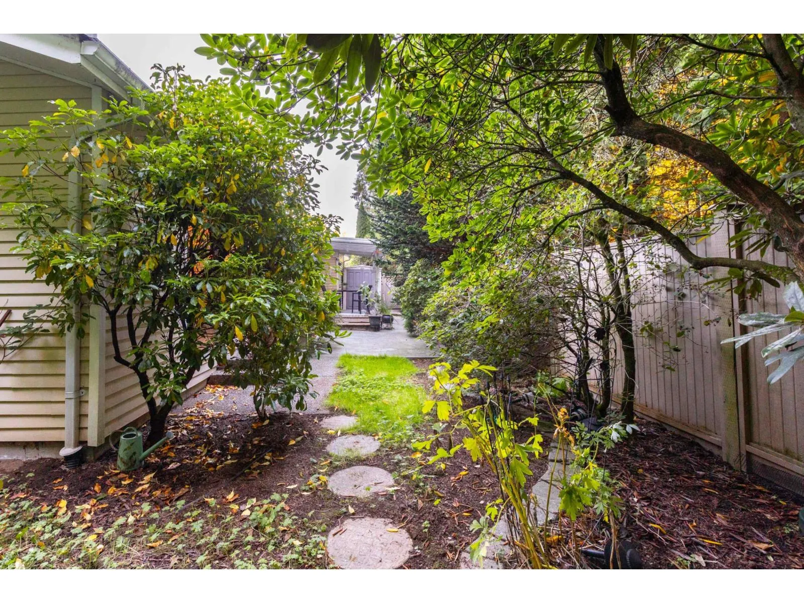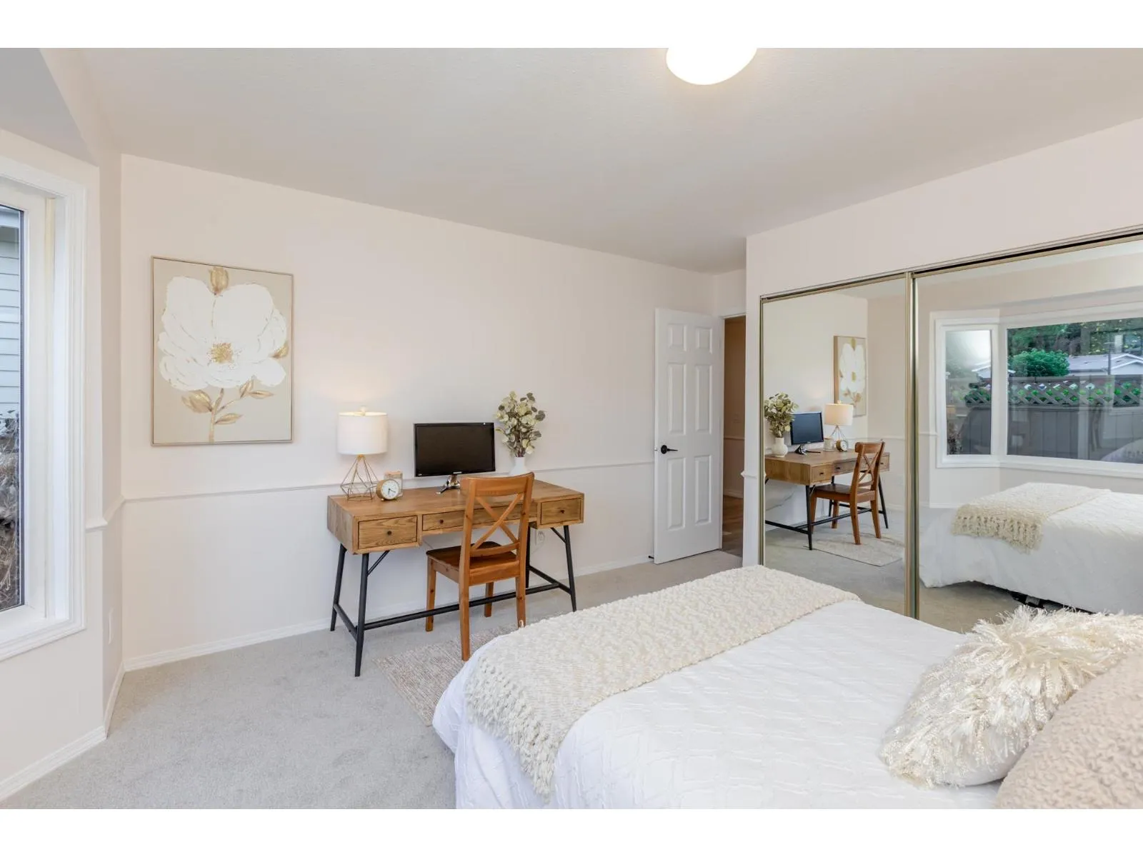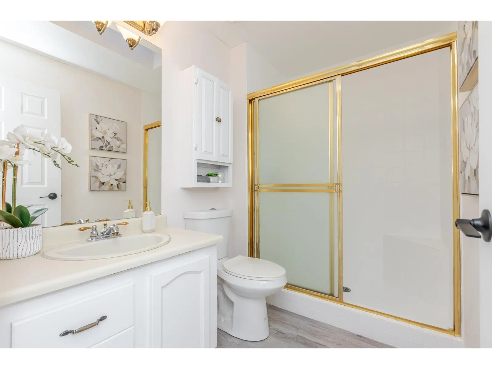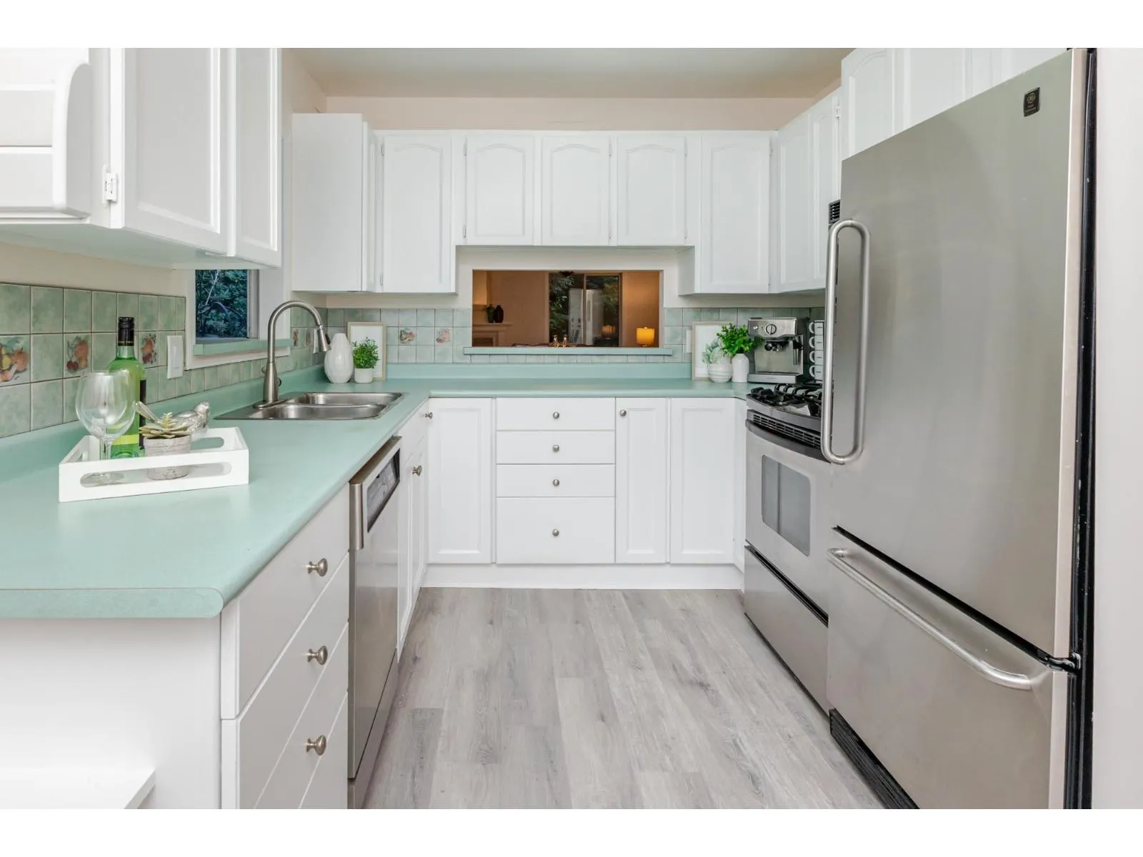 Gorgeous, detached rancher in desirable 55+ Gateway Gardens. Prime location backing & siding onto Carlson Creek greenbelt for ultimate privacy! Extensively updated, this 2 bedroom, 2 bath home boasts a large living room with wide plank vinyl flooring, gas fireplace, vaulted ceiling, glass sliding door access to side patio, and adjacent dining area. Kitchen with plenty of counter and storage space, eating area with access to covered deck, fenced yard with mature landscaping, & shed. Generous sized primary bedroom with double closets & 4 pc ensuite, 2nd bedroom, 3 pc main bath, & laundry. Garage & crawlspace storage! Great complex with clubhouse, guest suite, & plenty of visitor parking. Low strata fee of only $186.30/mth. One small pet allowed. (id:27476)