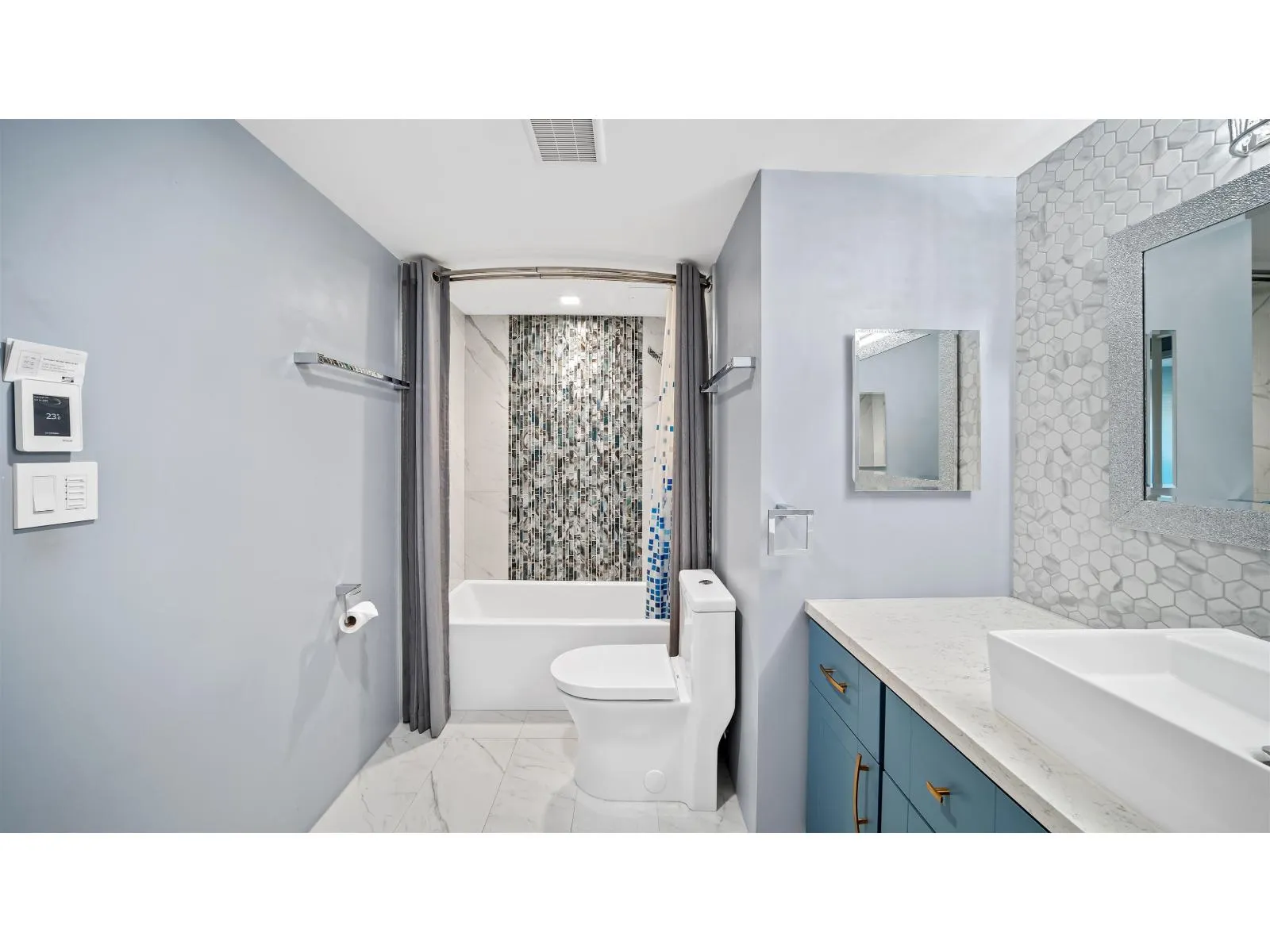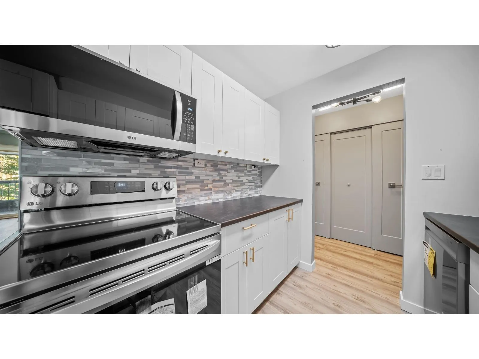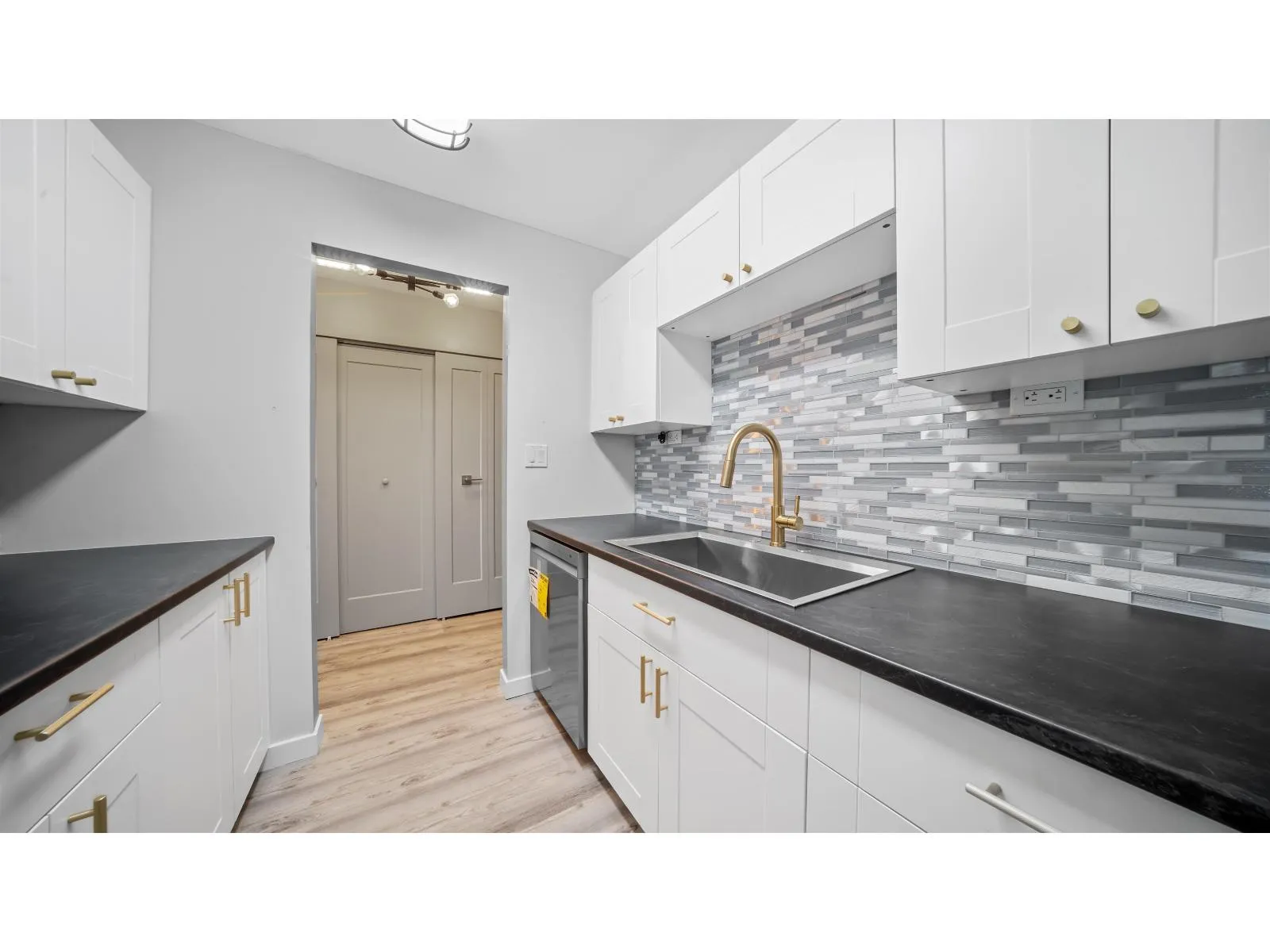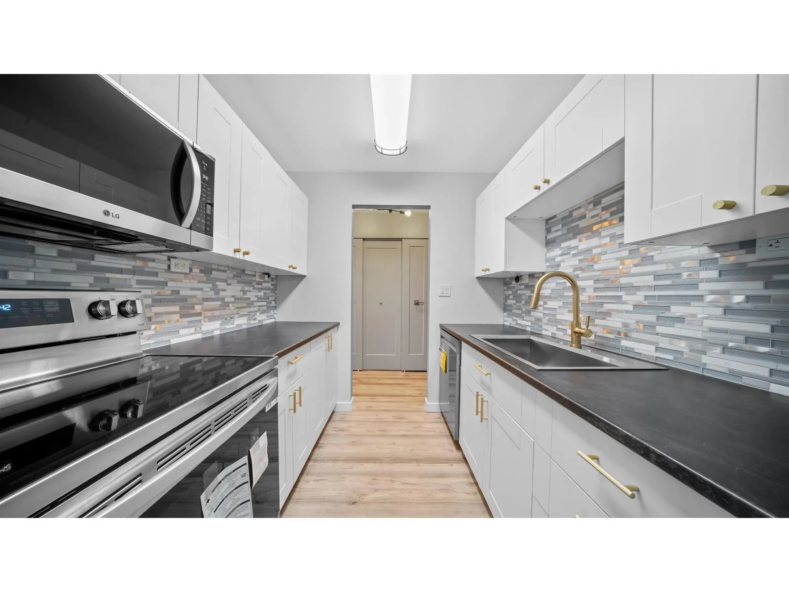 Welcome to this bright and modern northeast-facing home, perfectly situated just a short walk from Gateway SkyTrain Station and local shops. This 2-bedroom, 1-bathroom residence has been thoughtfully updated with sleek tile work, contemporary fixtures, that add style and functionality and new appliances (with a transferable warranty). Enjoy a spacious fully renovated bathroom featuring heated flooring, a fresh modern vanity, elegant backsplash, and a brand-new tub & toilet- all designed with sophistication and the feel of a hotel spa. This well-maintained building has also seen significant upgrades, including plumbing improvements, a new roof (2017), and new boilers (2023) - offering peace of mind and long-term value. This home checks all the boxes for comfort, style, and convenience! (id:27476)