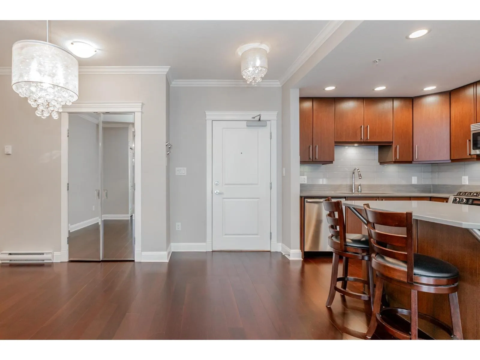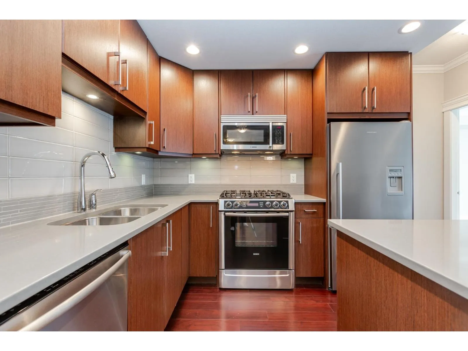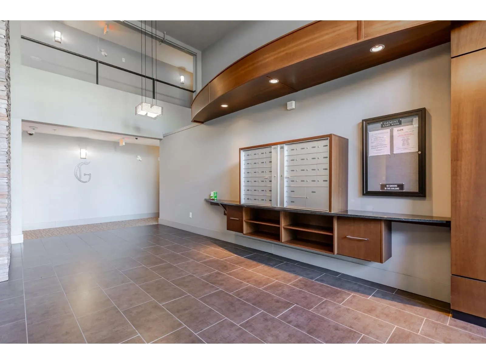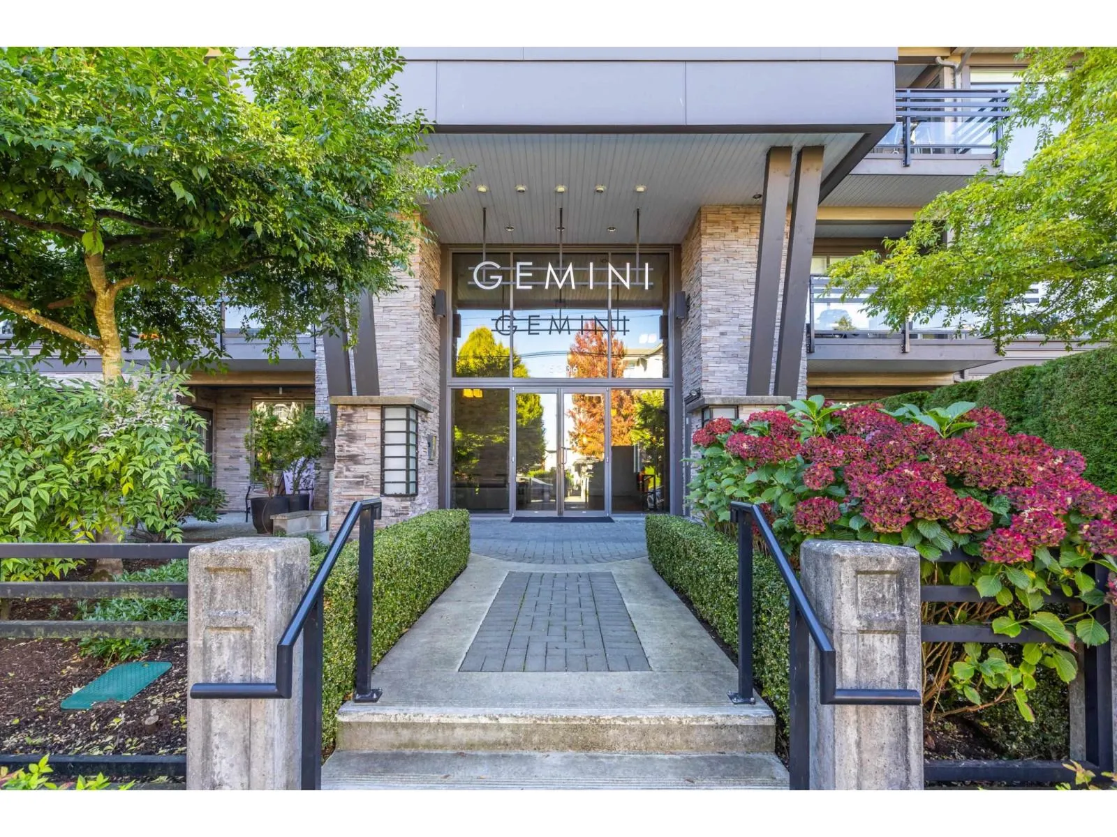 GEMINI - Ground floor, quiet, south facing 2 bedroom/2 bathroom 1,000+ sqft unit with 9' ceilings that shows like new. This single owner suite features a spectacular layout with large living and dining areas, spacious kitchen and master bedroom with walkthrough closet to the ensuite. The many upgrades include: elegant crown molding, aesthetically pleasing additional in-suite storage, workspace area for an in-home office, high quality appliances and 2 side-by-side conveniently located parking stalls. Excellent amenities include: a well equipped fitness centre, a guest suite and games/event room with kitchenette. Come and see this centrally located building with a one block walk to shopping and every community convenience. (id:27476)