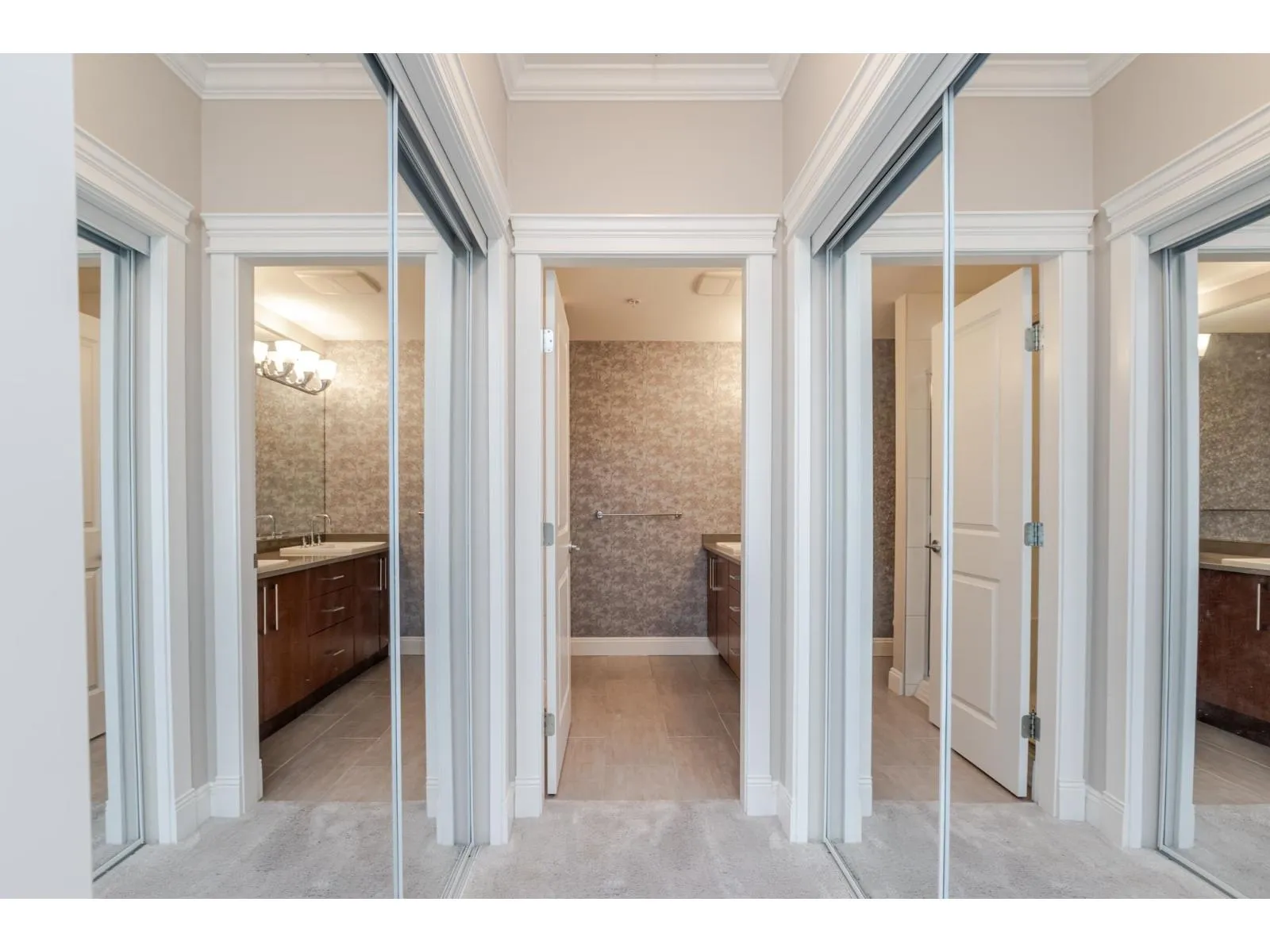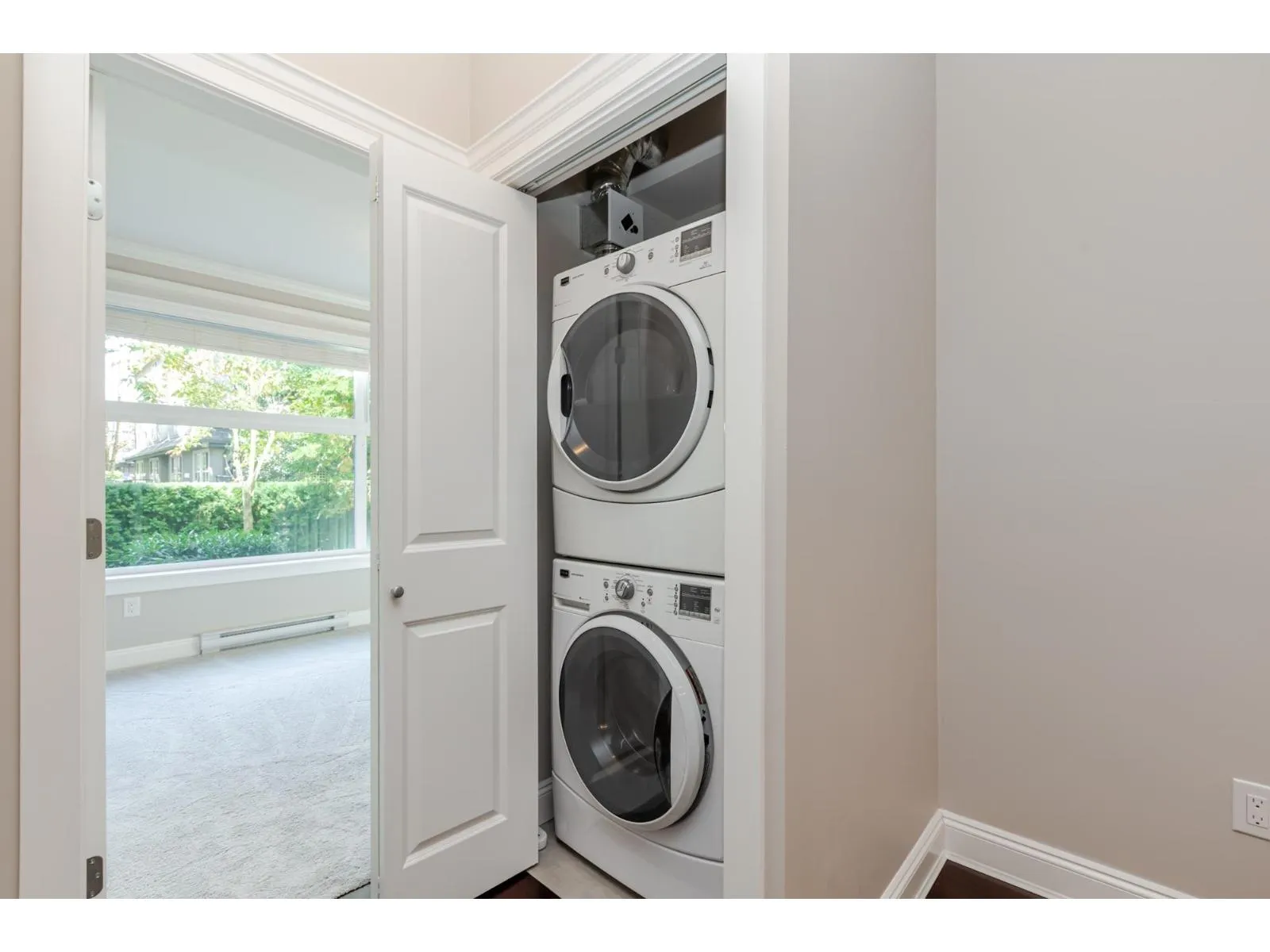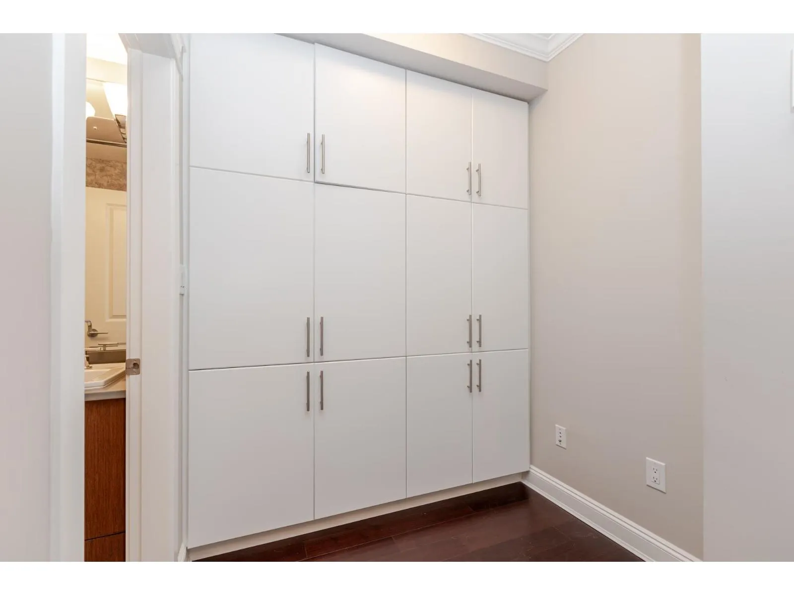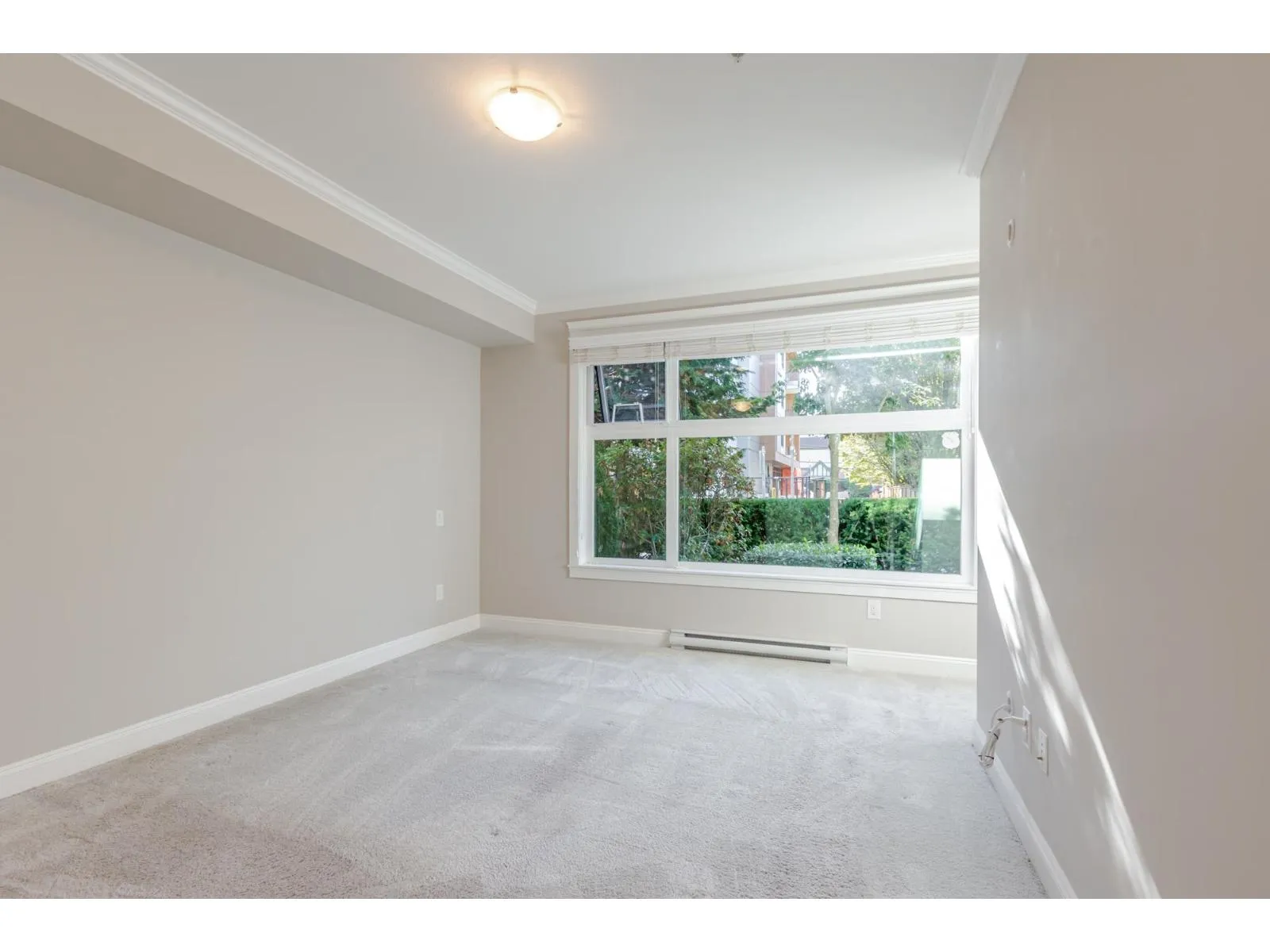 GEMINI - Ground floor, quiet, south facing 2 bedroom/2 bathroom 1,000+ sqft unit with 9' ceilings that shows like new. This single owner suite features a spectacular layout with large living and dining areas, spacious kitchen and master bedroom with walkthrough closet to the ensuite. The many upgrades include: elegant crown molding, aesthetically pleasing additional in-suite storage, workspace area for an in-home office, high quality appliances and 2 side-by-side conveniently located parking stalls. Excellent amenities include: a well equipped fitness centre, a guest suite and games/event room with kitchenette. Come and see this centrally located building with a one block walk to shopping and every community convenience. (id:27476)