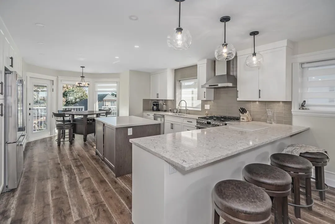 RENOVATED RANCHER! Watch the new EXTENDED VIRTUAL VIDEO TOUR! Perched on a hilltop lot in a desirable east Cloverdale area. LEVEL DRIVEWAY, manicured (and LOW-MAINT.) gardens and lots of architectural appeal. Enter the large foyer WITH NO STAIRS to find an OPEN-CONCEPT DESIGN, skylights and east-facing GOURMET KITCHEN with valley/ mount. views . Eng. oak hardwood and gorgeous millwork throughout. Living room w/ 11-foot vaulted ceiling and new gas fireplace. Both full baths reno'd to a high standard. Stunning ensuite w/ oversize shower and tub. Beautiful terraced backyard has NEW ENGINEERED RETAINING WALL & new landscaping incl. 15 evergreen hedge plants . Bonus! EXTRA PARKING SPACE from LANE. Too much to list! RENO INFO LIST avail. from your Realtor or at viewings. (id:27476)